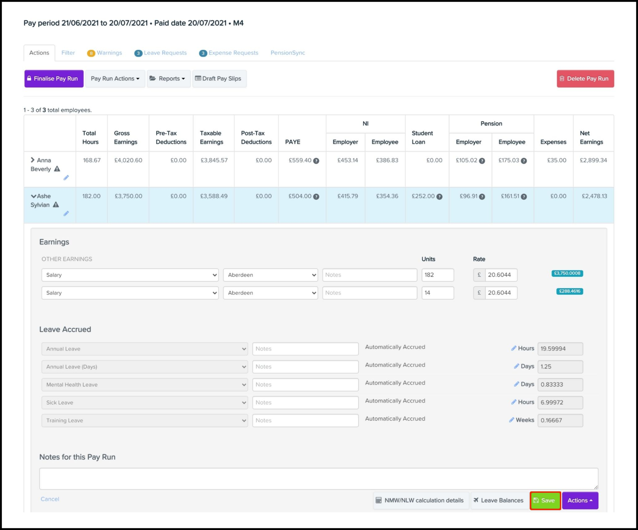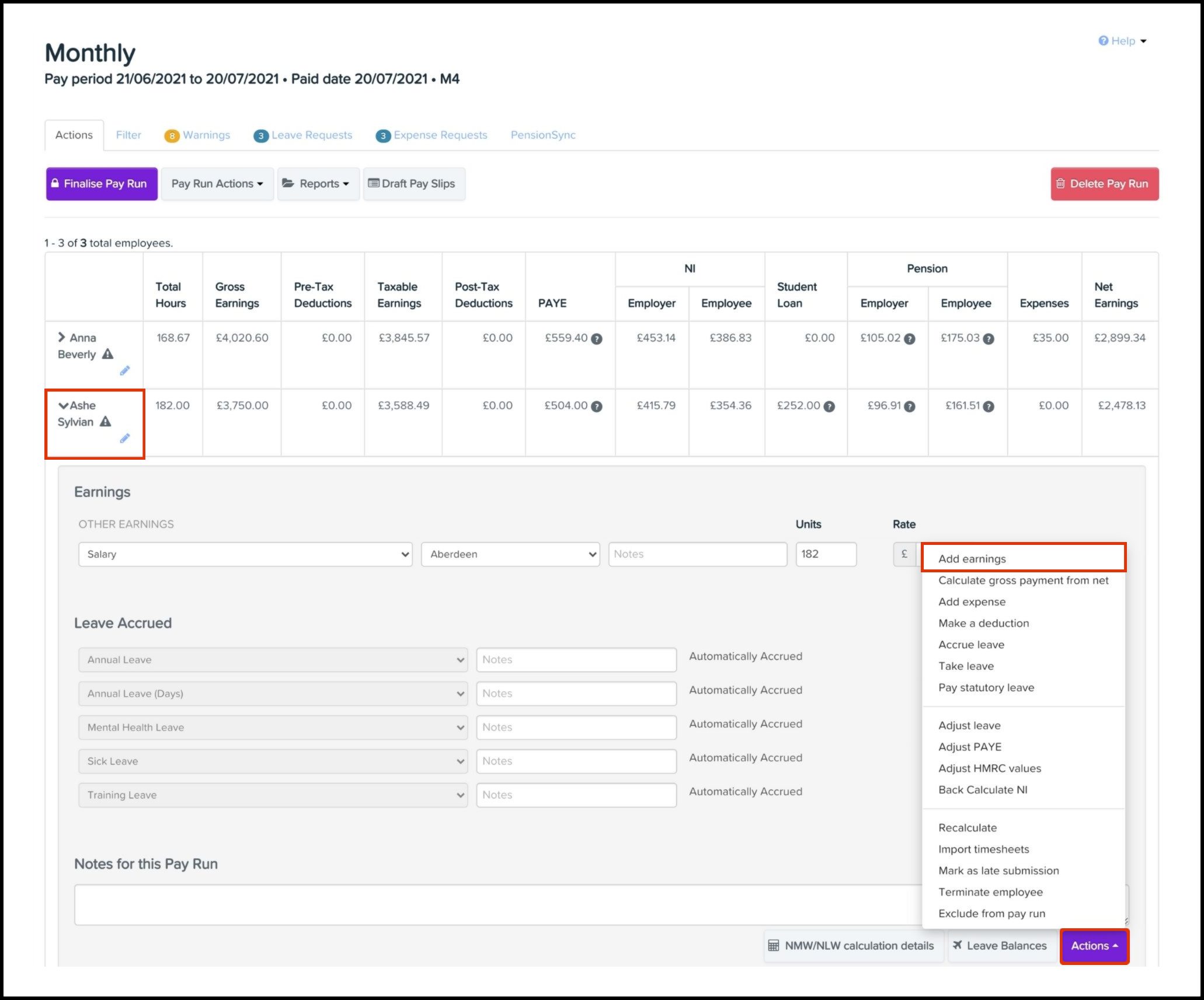 The Pay Run Earnings Line feature allows you to add additional earnings lines for an employee during the pay run. You can specify details such as the pay category and rate. You can also use this feature to delete employee earning lines. A pay run needs creating first, before you add an employee earning line. To read further information on how to create a pay run, refer to the following article.