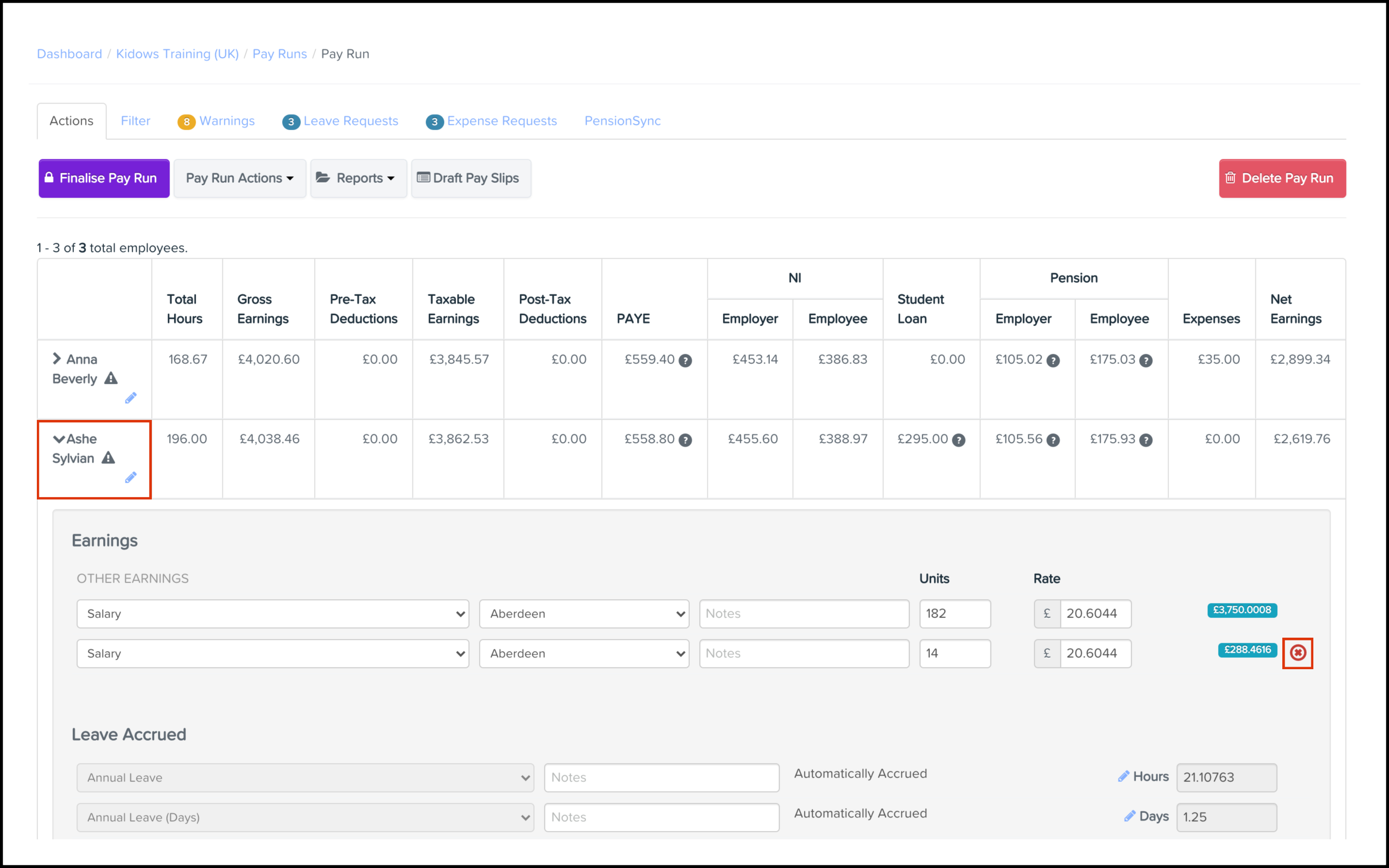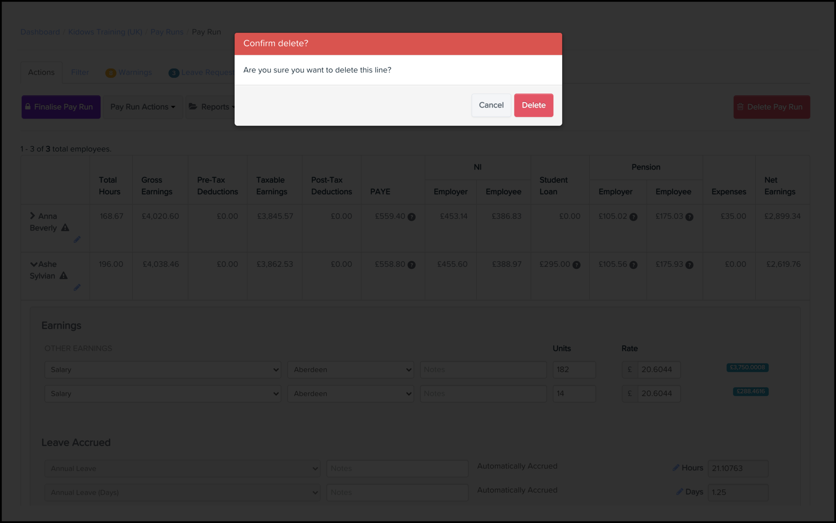 The below premise will walk you through how to delete an earnings line within a pay run.