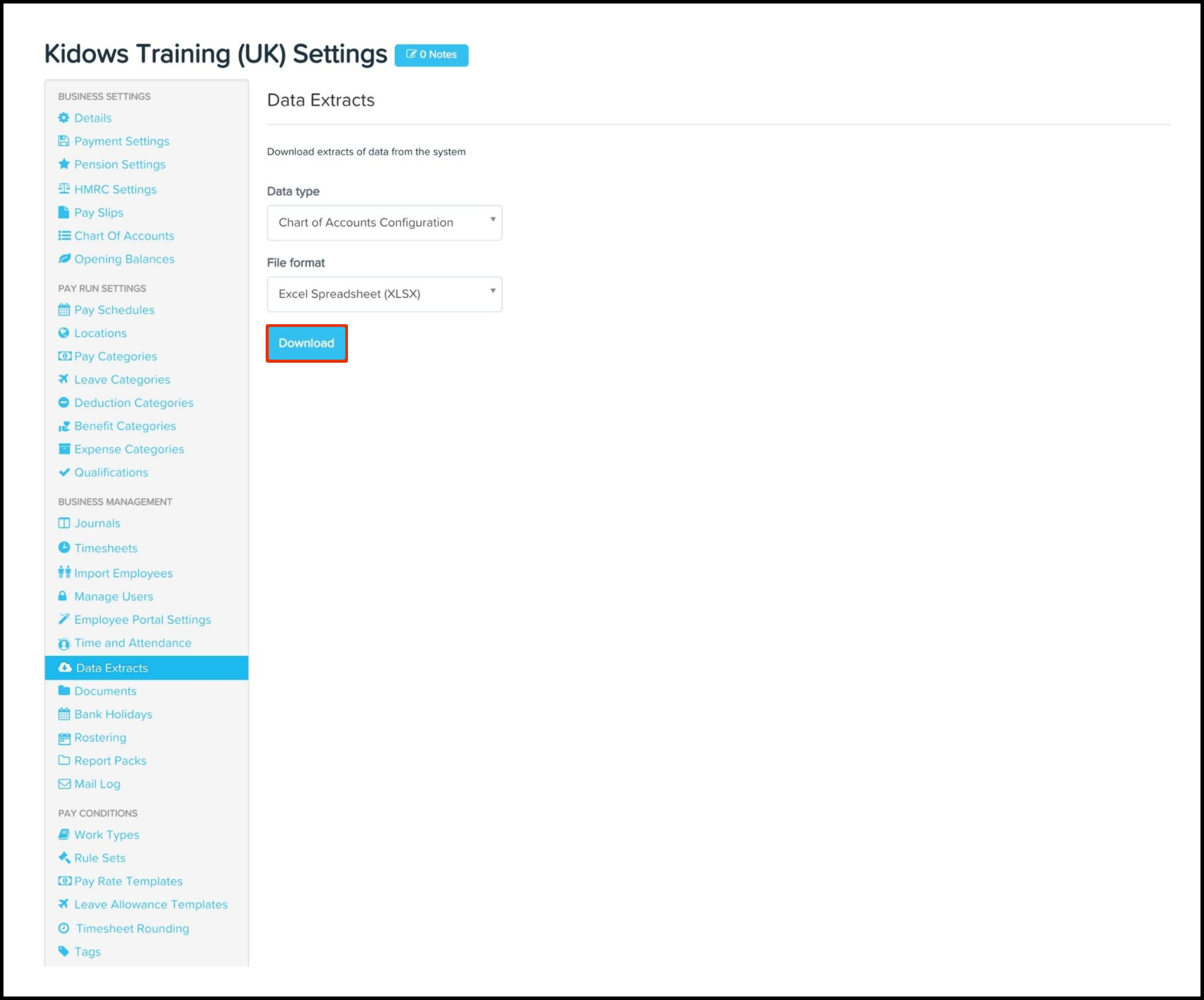 The Data Extract feature enables you to download your chart of account configuration data stored within your Payroll classic platform as either a XLSX or CSV file.