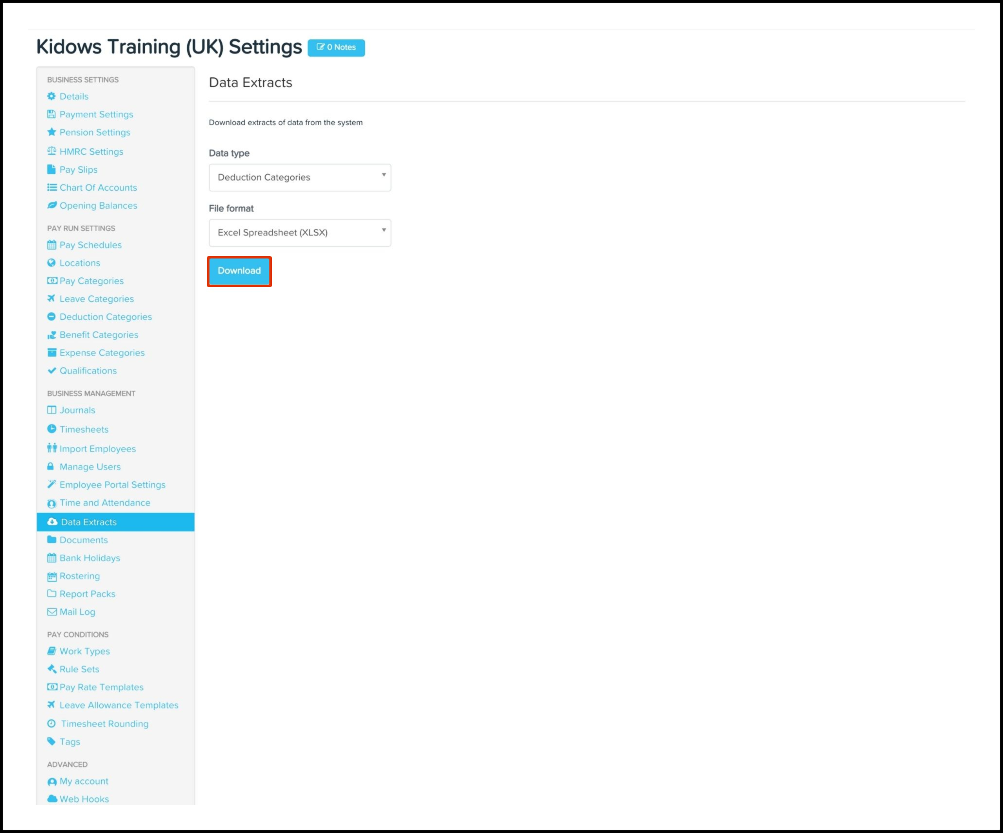 The Data Extract feature enables you to download your deduction categories stored within your Payroll classic platform as either an XLSX or CSV file.