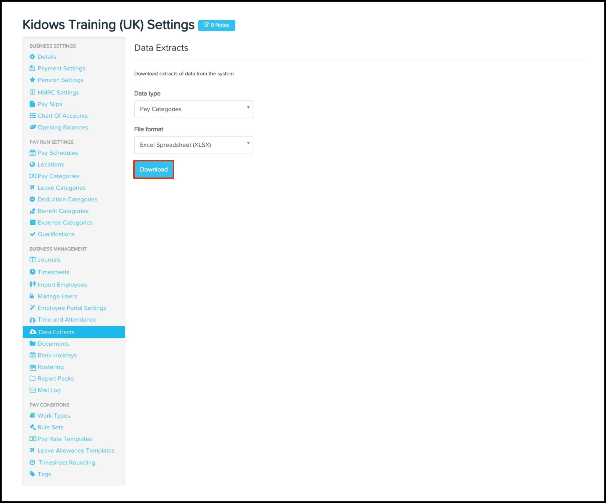 The Data Extract feature enables you to download your pay category data stored within your Payroll classic platform as either a XLSX or CSV file.