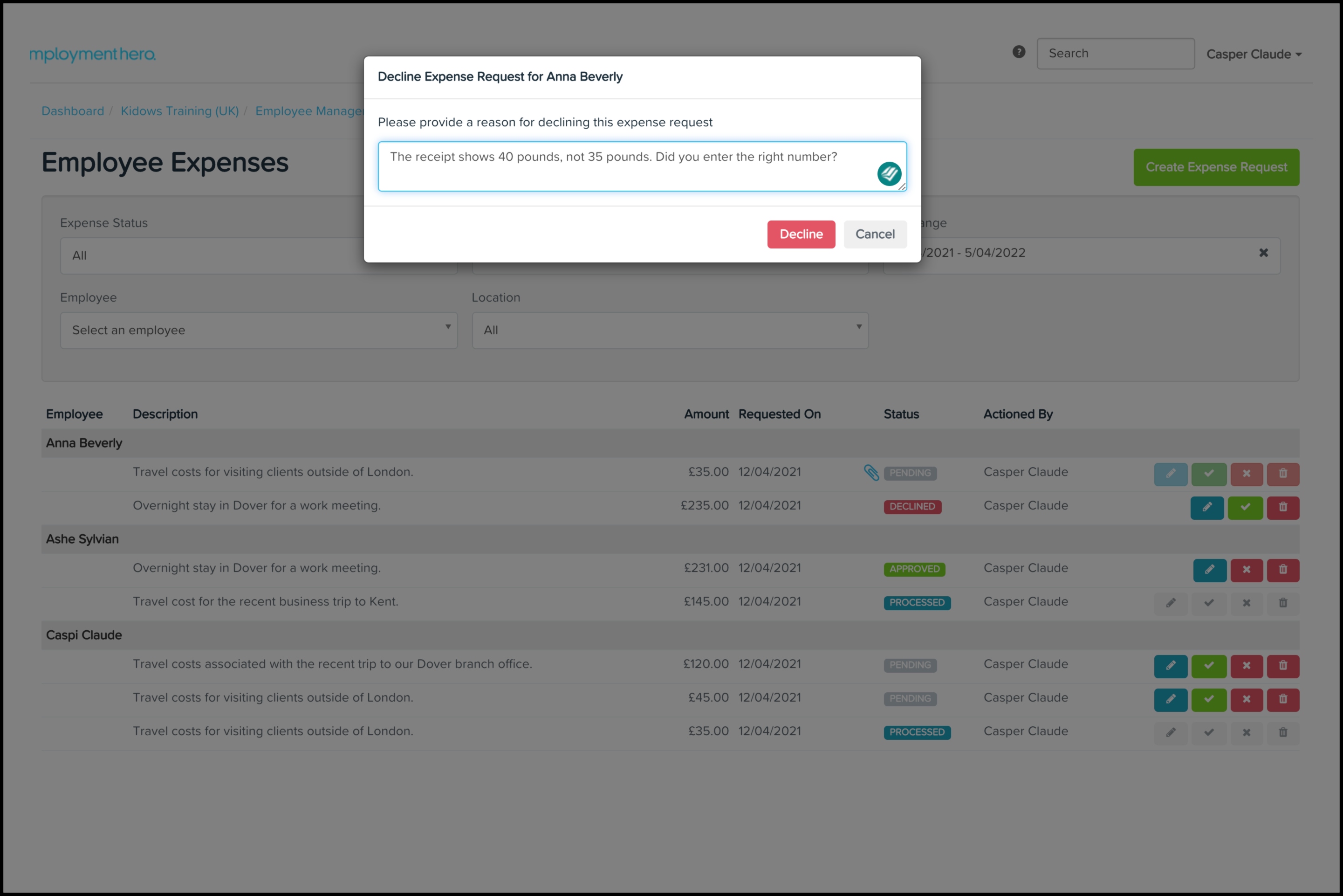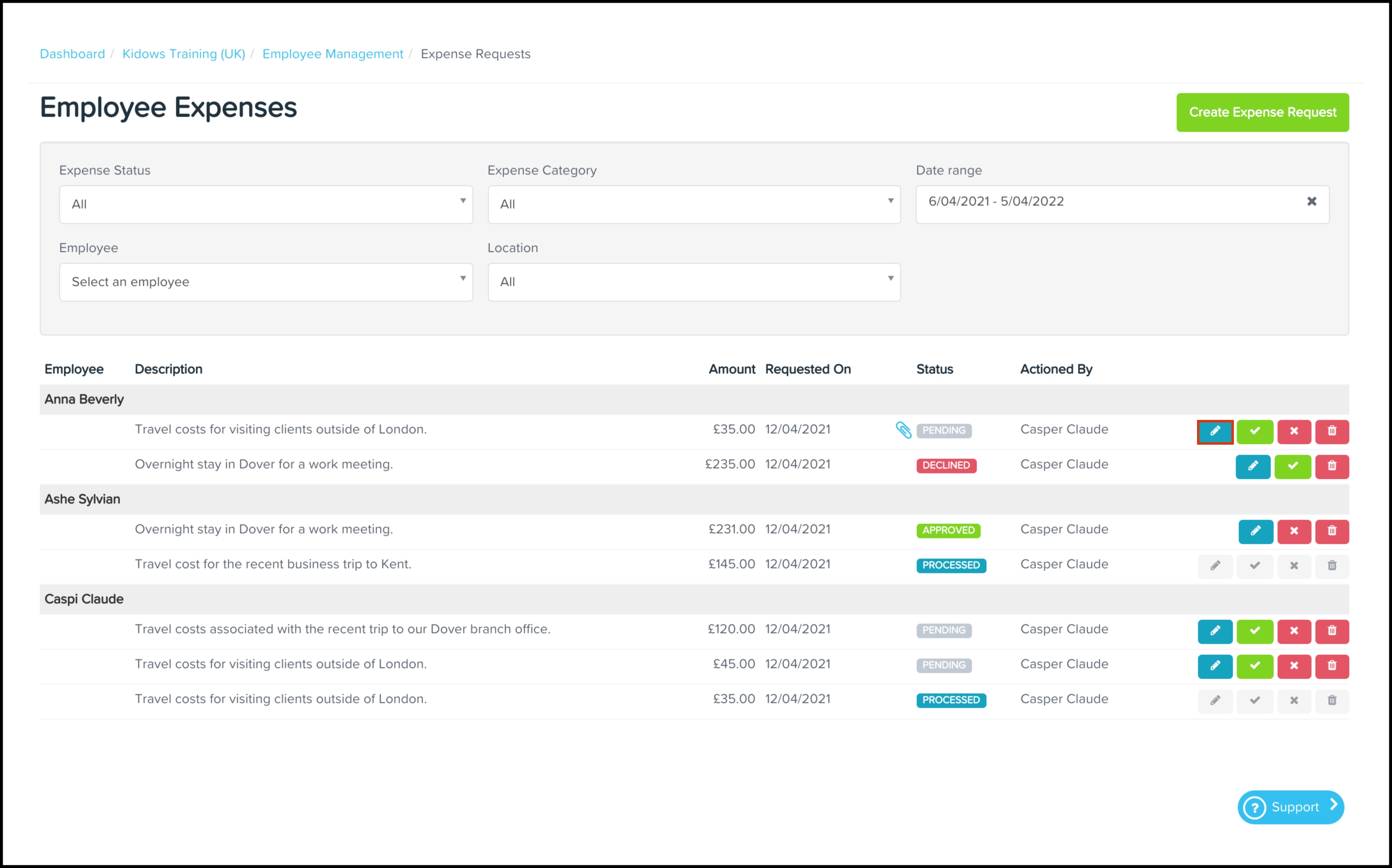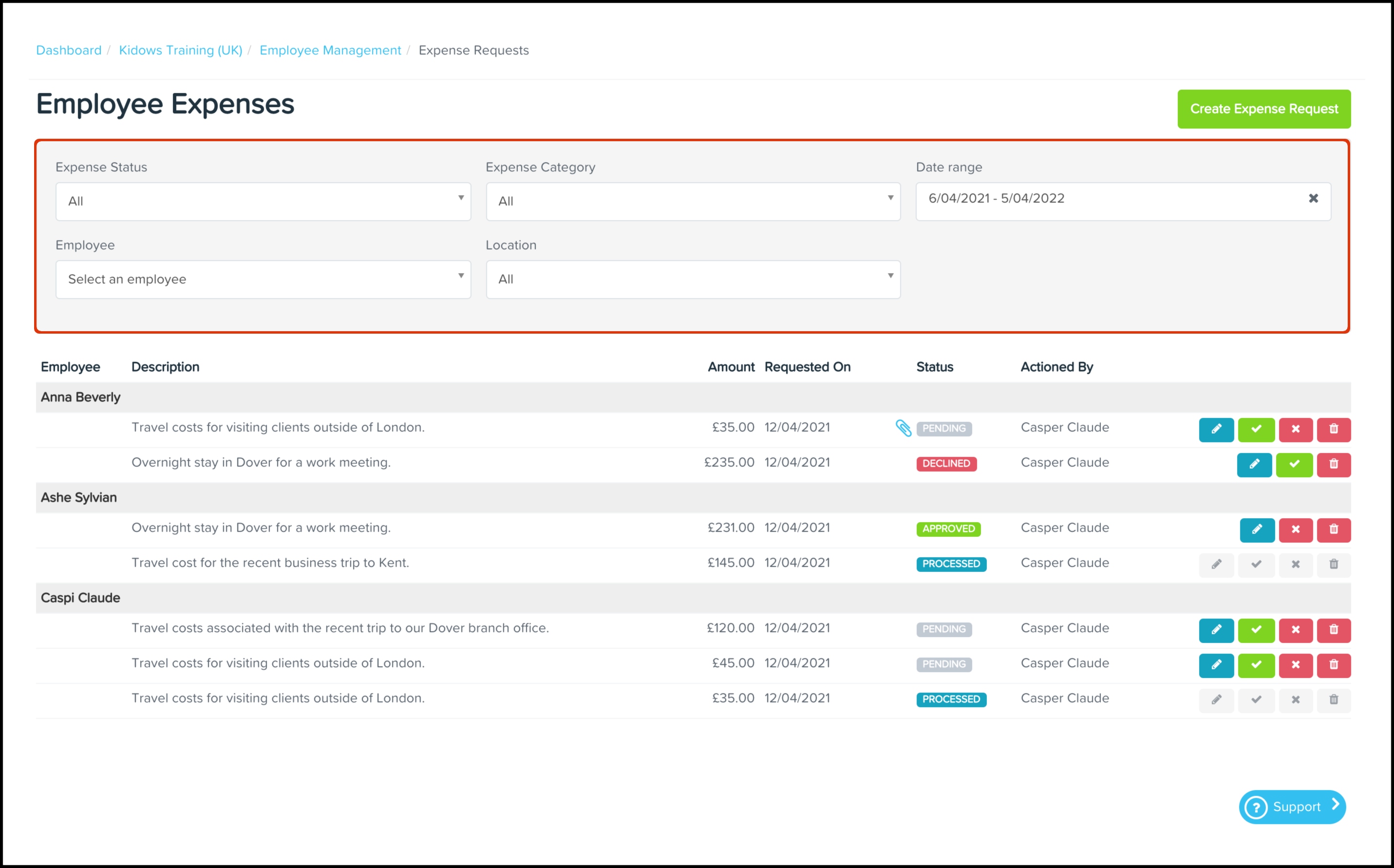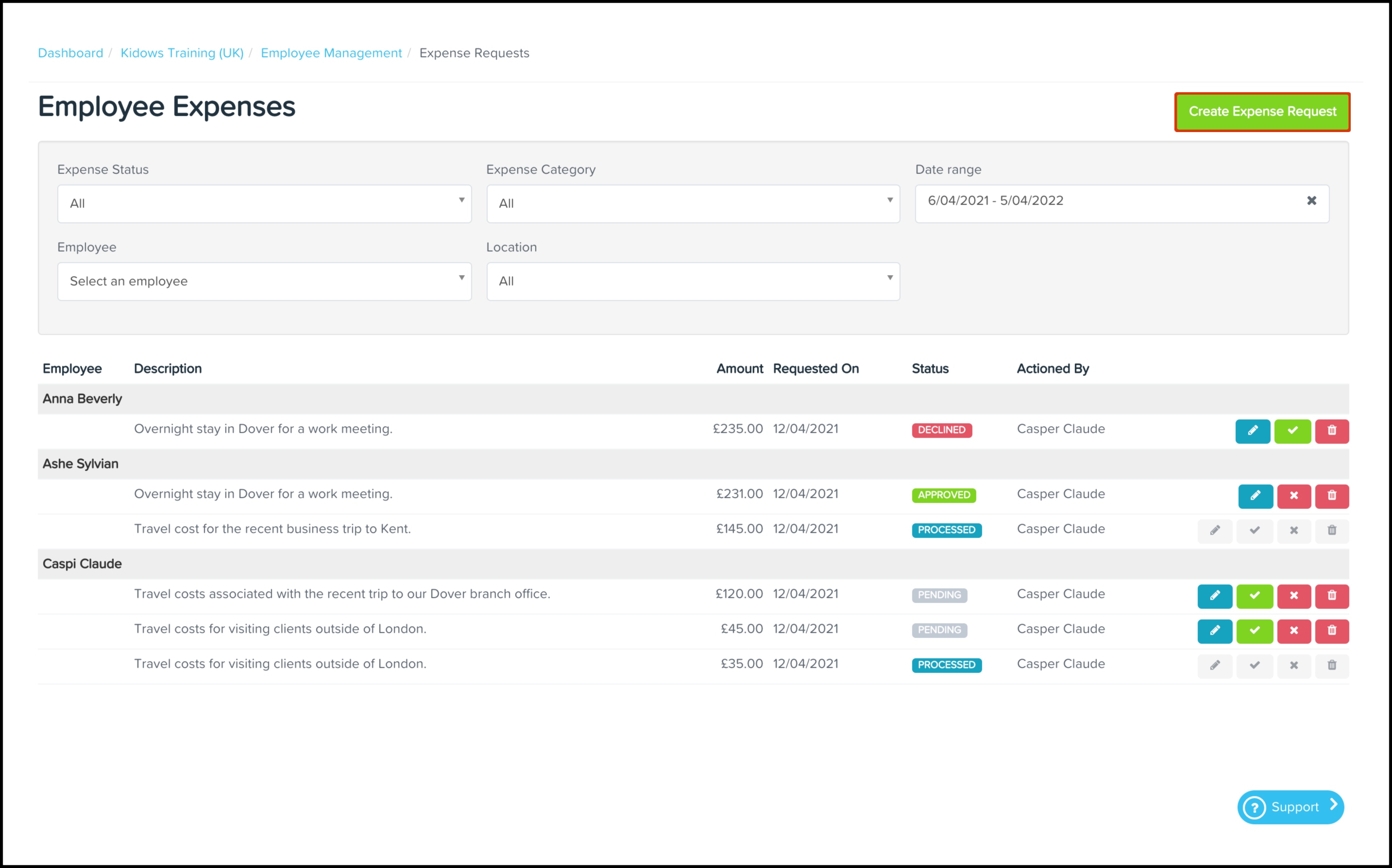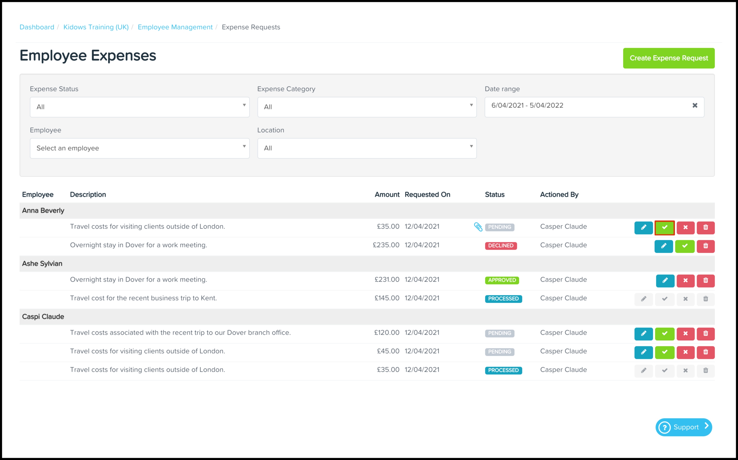 This article shows you how you can use the Expense Management feature to approve or decline employee-submitted expense claims or submit one for an employee. You can also use this feature to edit an expense claim, filter the displayed results, and delete a record that is no longer required.