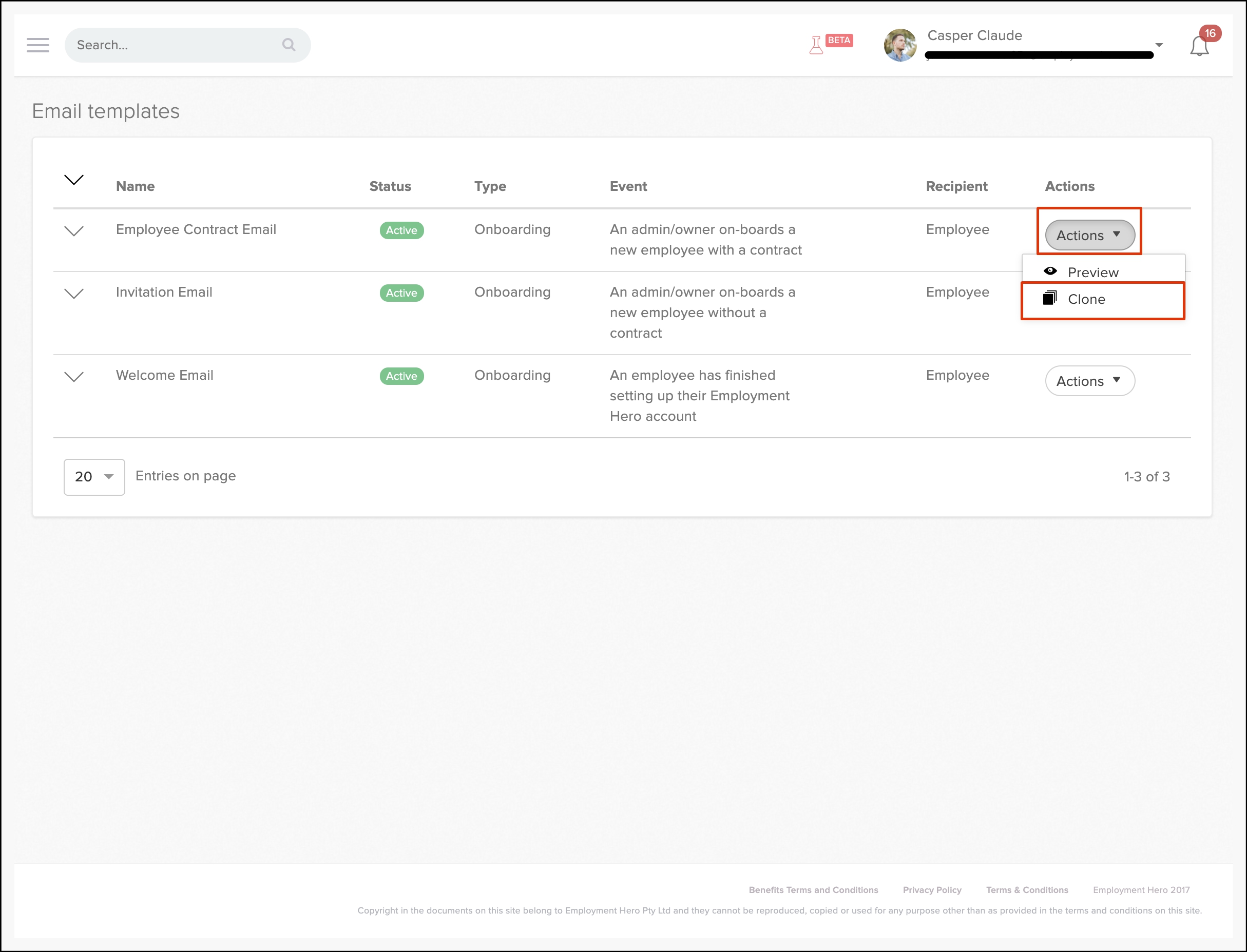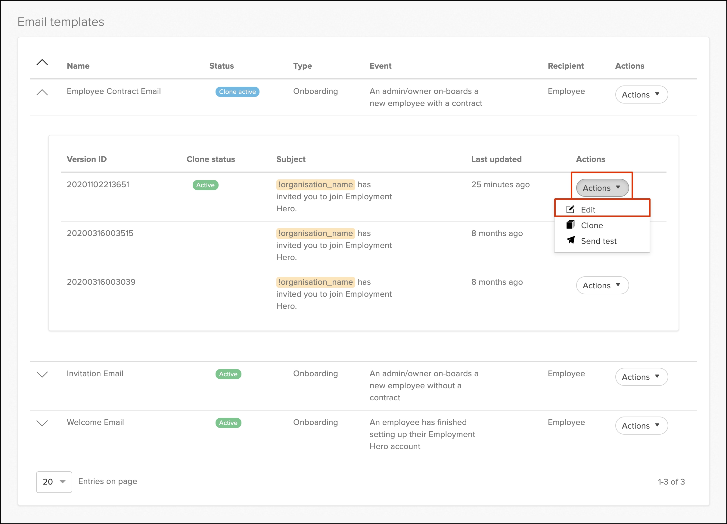 | Variables | A list of data points that you can use to pull information from your Employment Hero platform, such as an employee's first and last name or your business name |