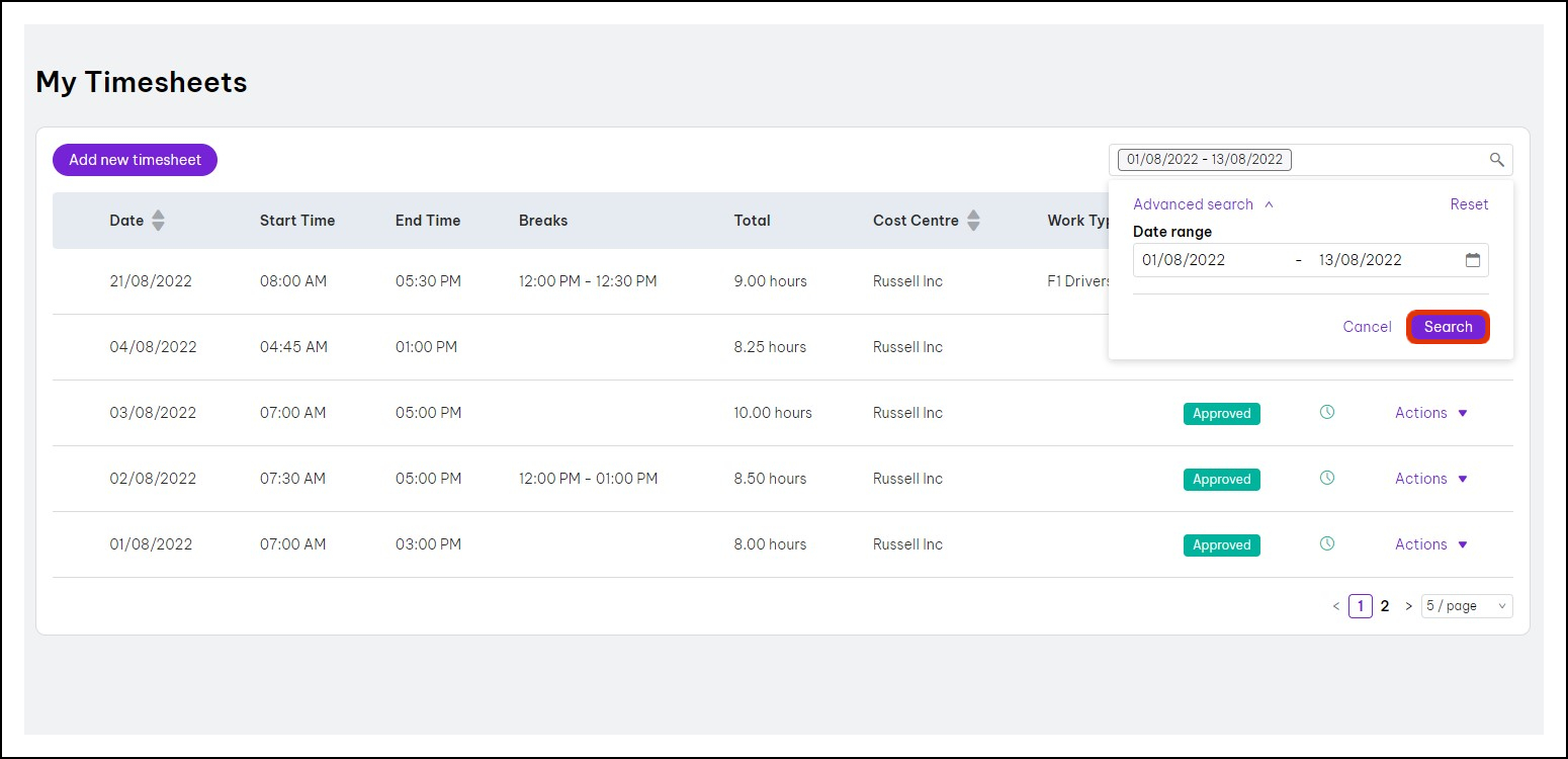 | Red clock | Used for approved timesheets that has not synchronised with Employment Hero Payroll classic. | |