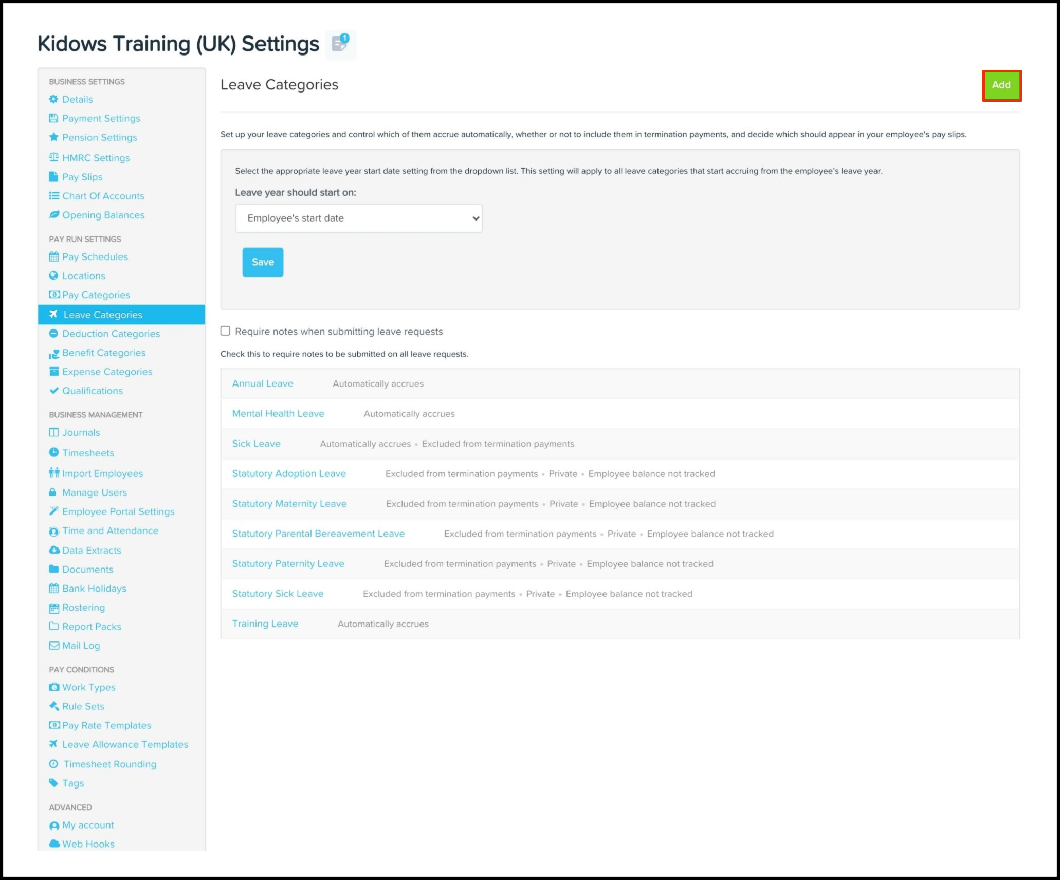 To begin with, you will need to create the leave categories you want your employees to take instead of hours. There is no limit to the amount of categories that you can create; this is because the platform allows you to assign categories per employee. These new categories can be in days or weeks. The steps on how to undertake this are: