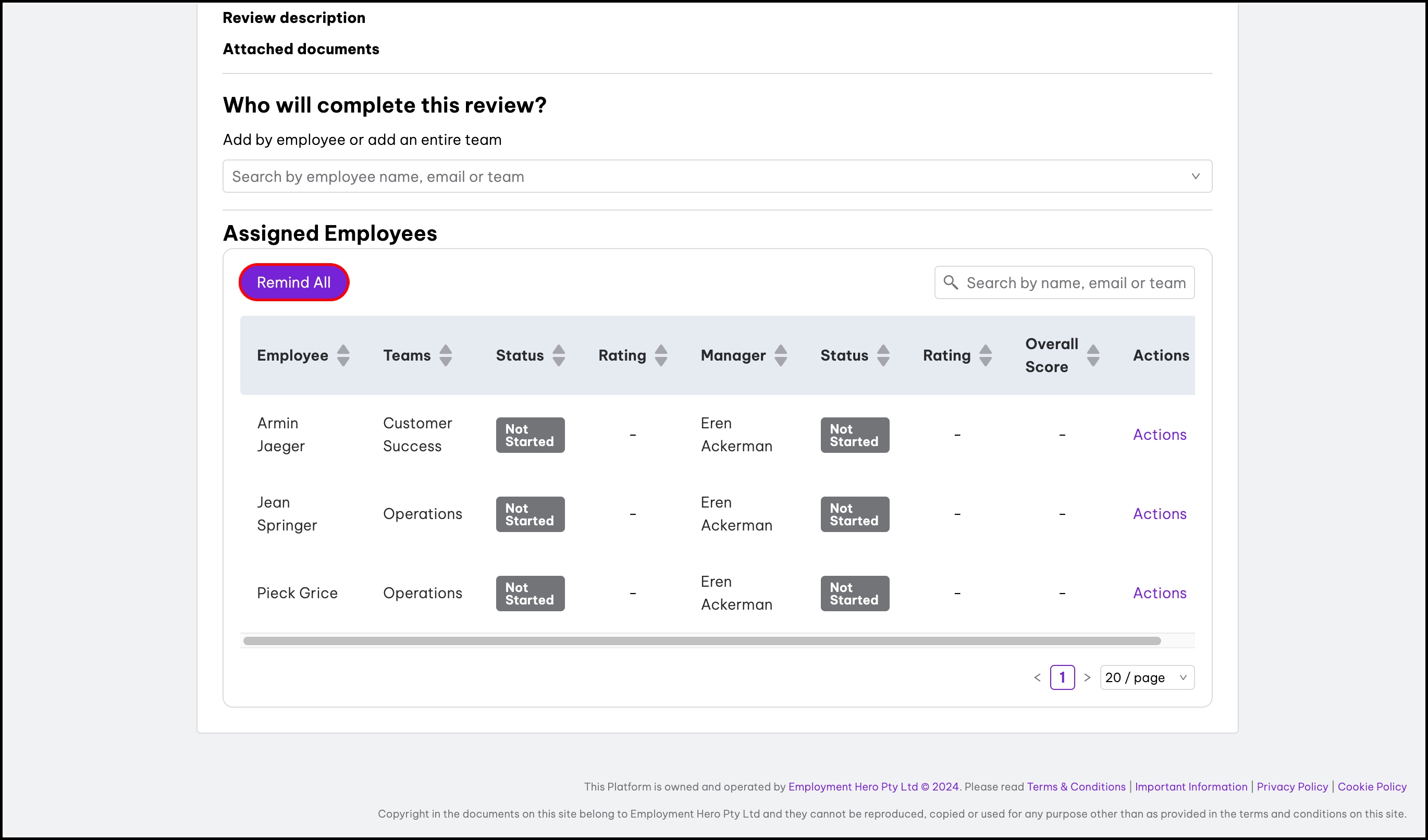 - For all employees to complete the review, click the Add all employees button.