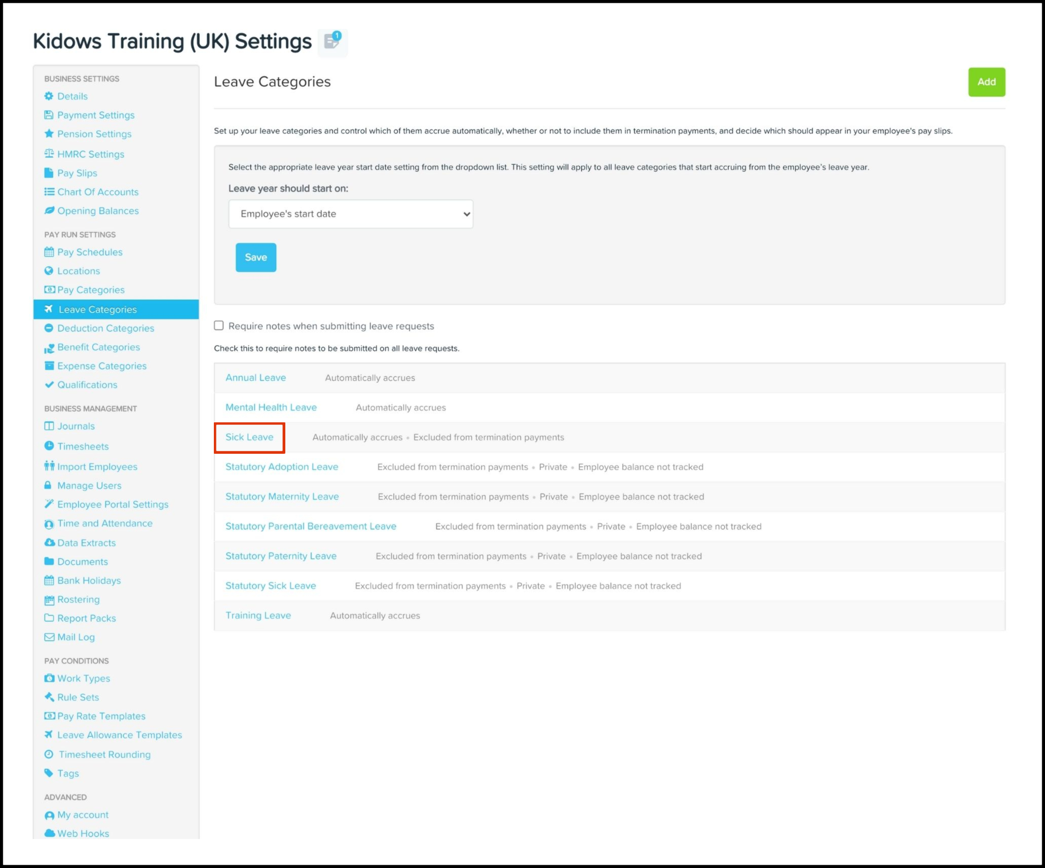 - Click the Leave Categories submenu.
