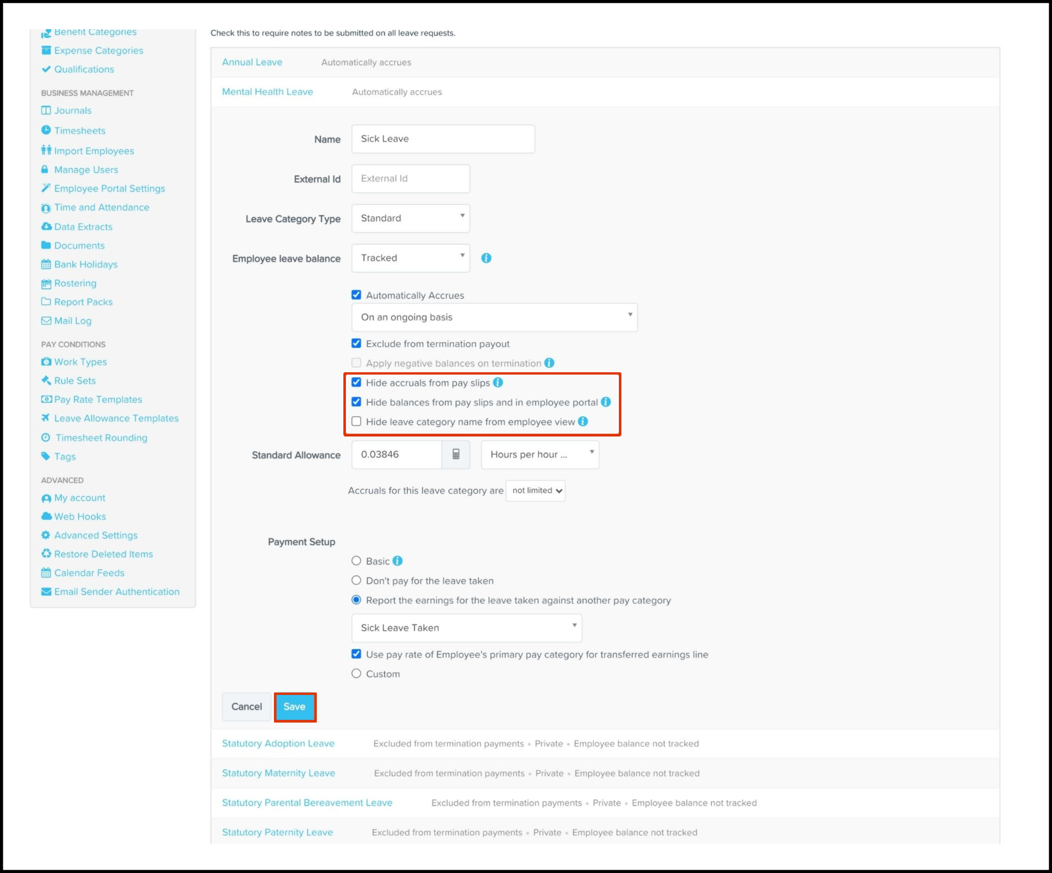 To begin with, you will need to edit your leave categories and select what visibility your employees will have regarding the accrued leave balance. The steps on how to undertake this are: