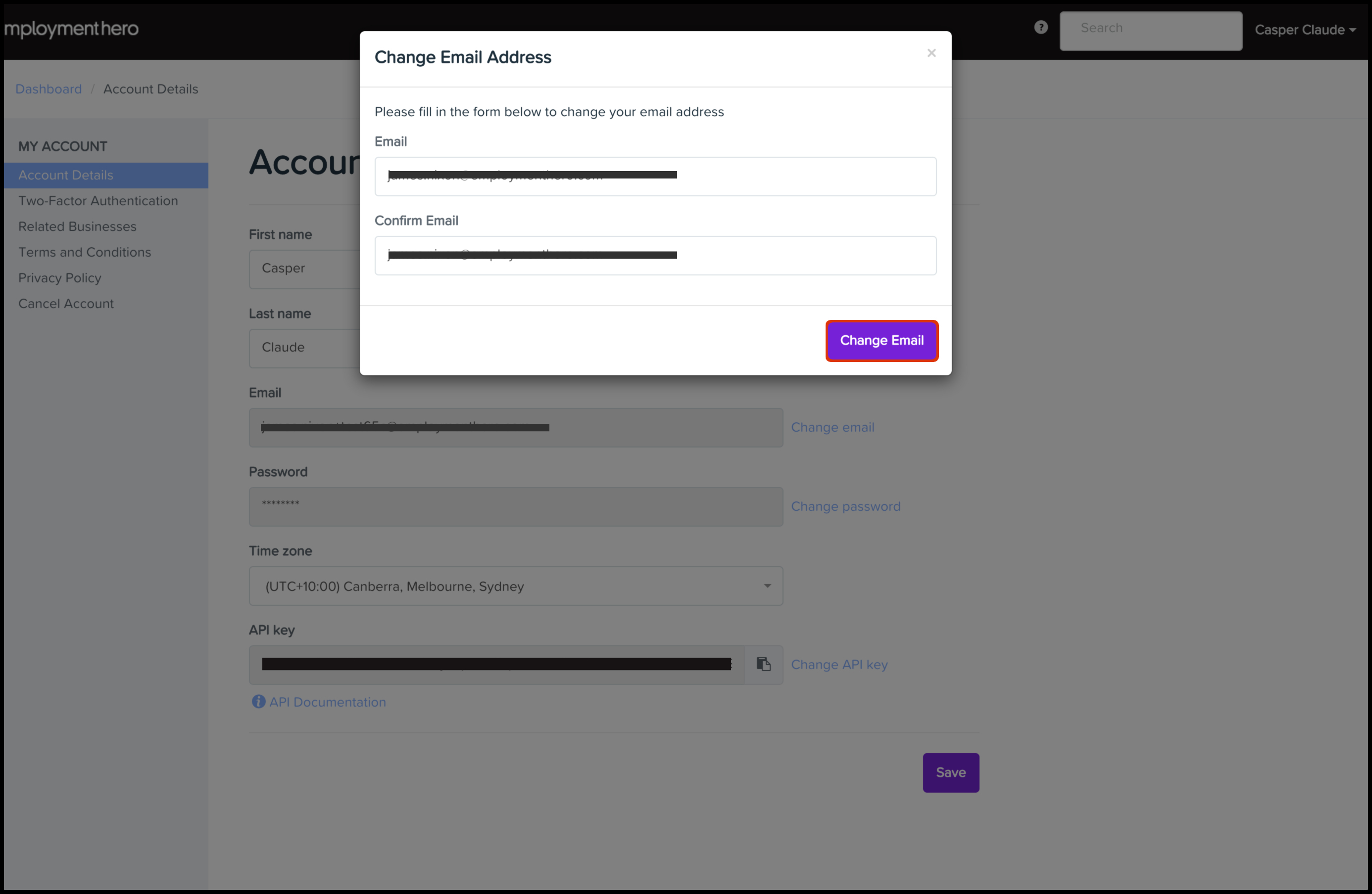 5. Click the Change Email button.
