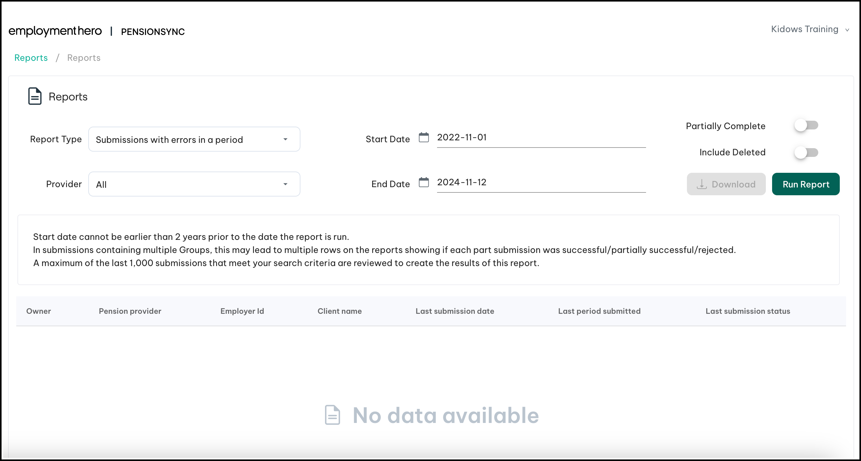 Step 2: Run a report within the PensionSync dashboard