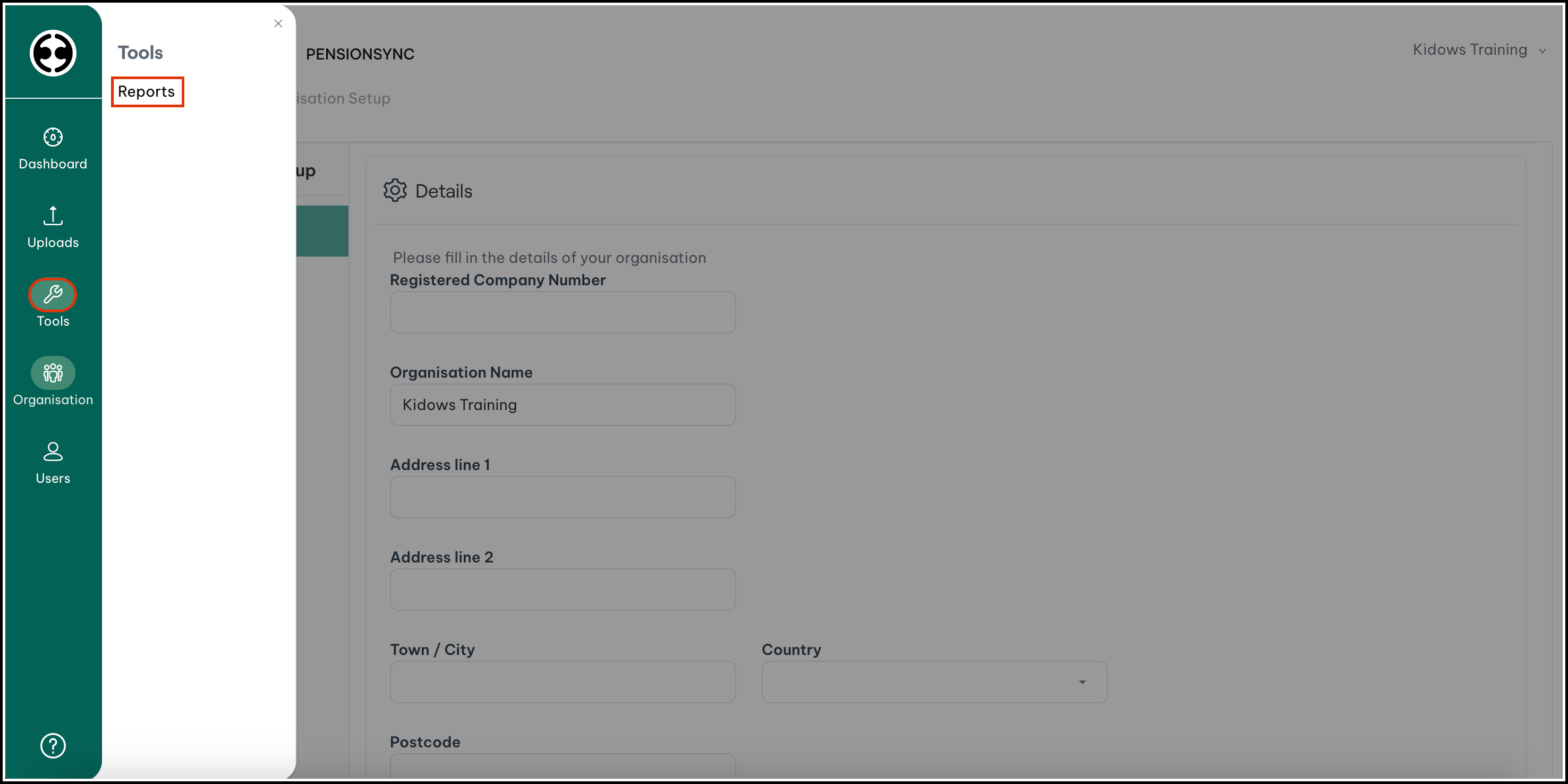1. From within your PensionSync dashboard, click Tools.