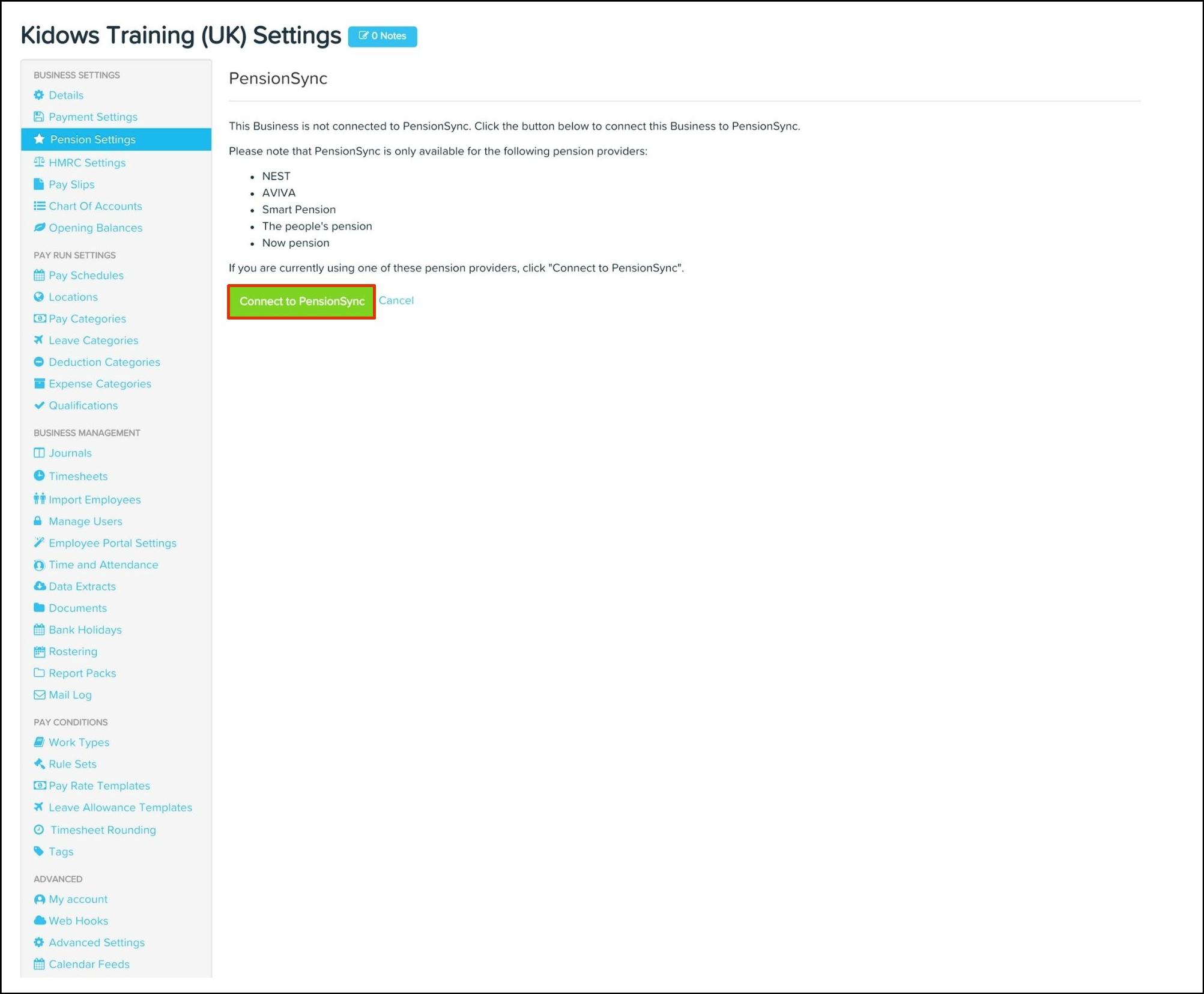 5. Click the Connect to PensionSync button.