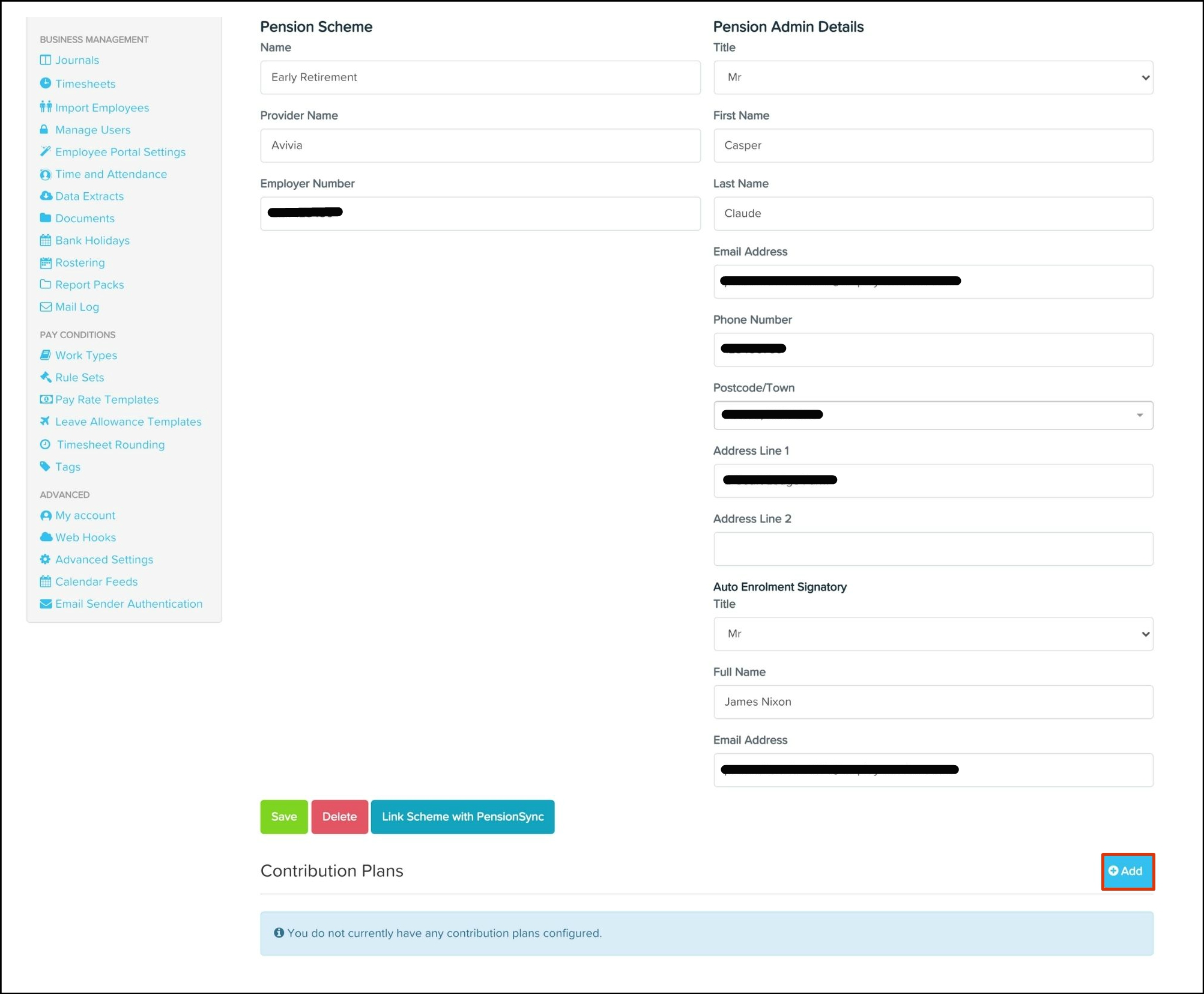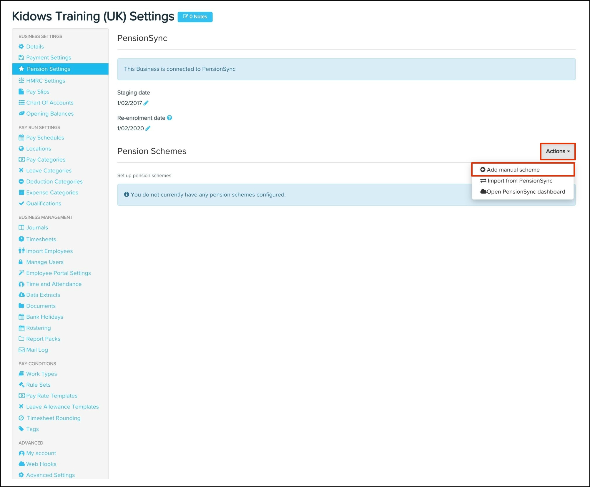 4. Click the Add Pension Scheme via PensionSync button.Pension_1.jpg