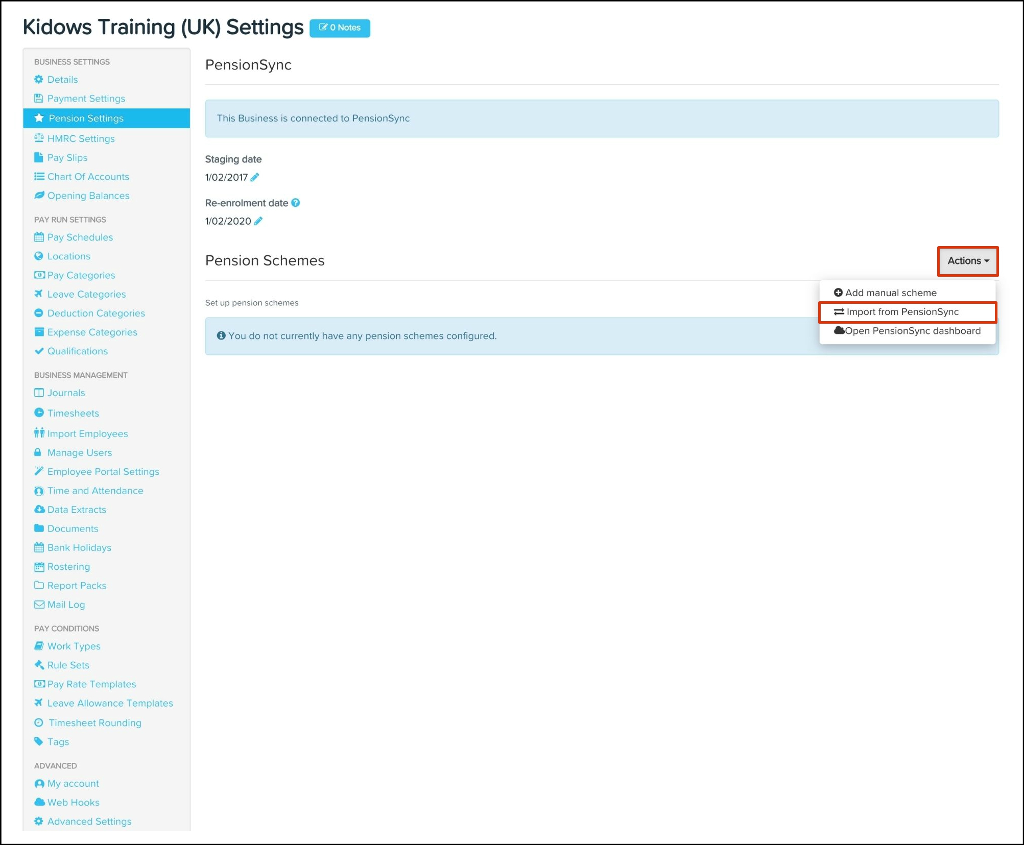 5. Click the Import from PensionSync button.