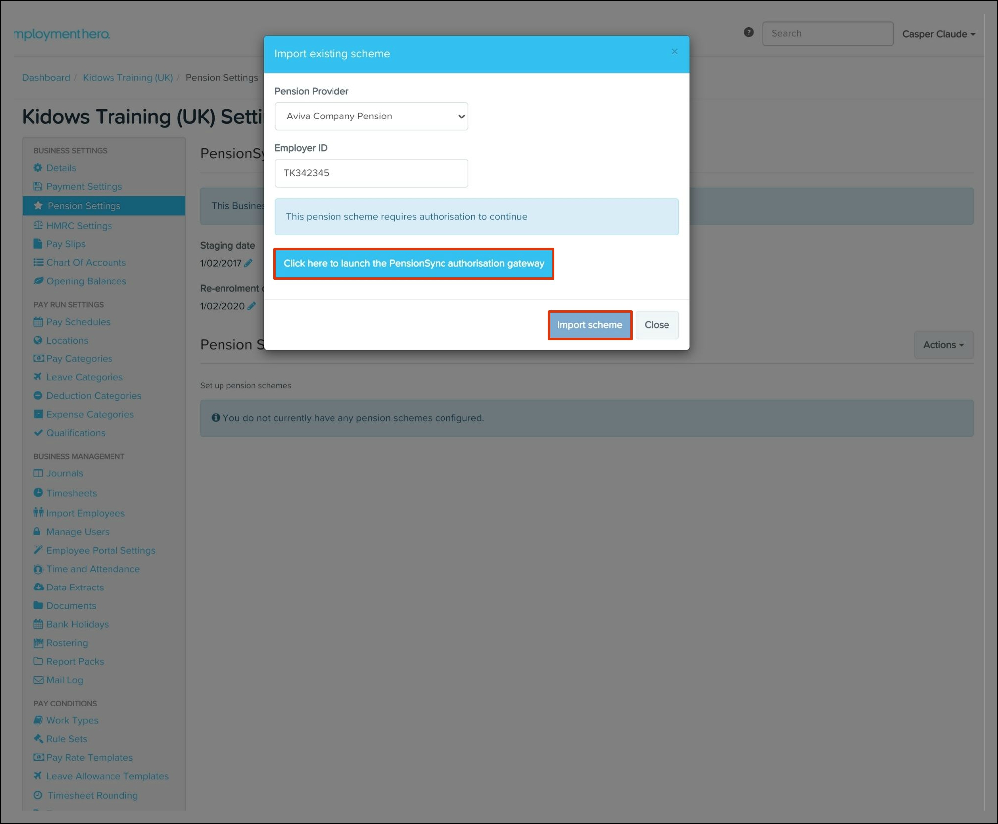 Employment Hero uses PensionSync to let you connect your payroll classic account and employee details to your preferred pension scheme.