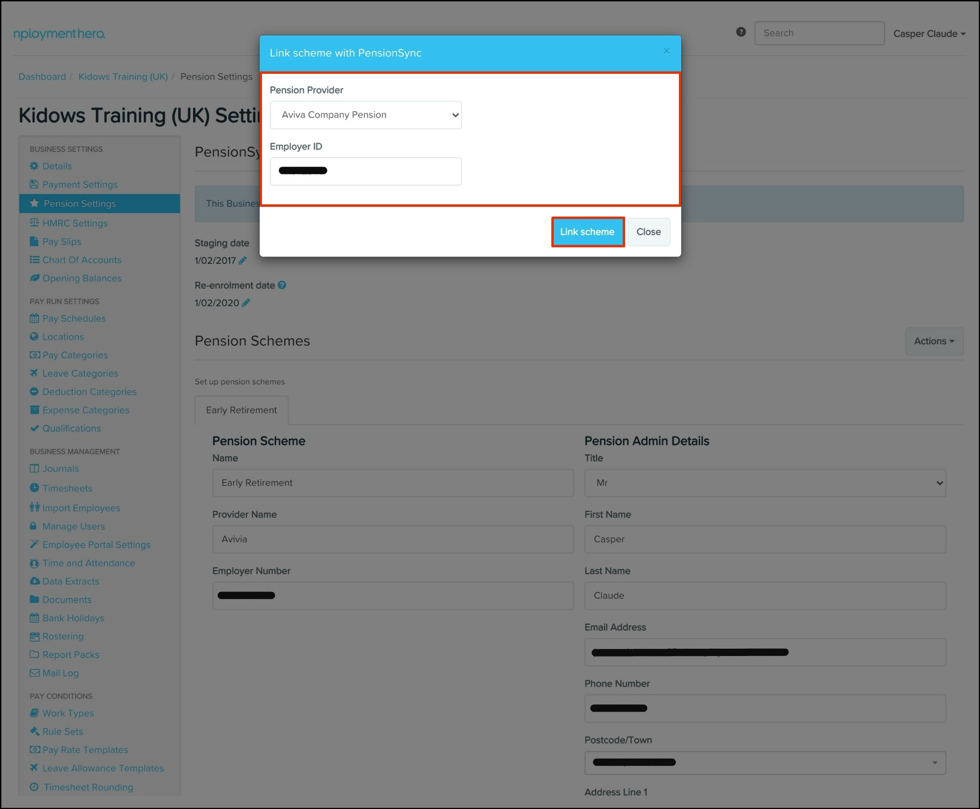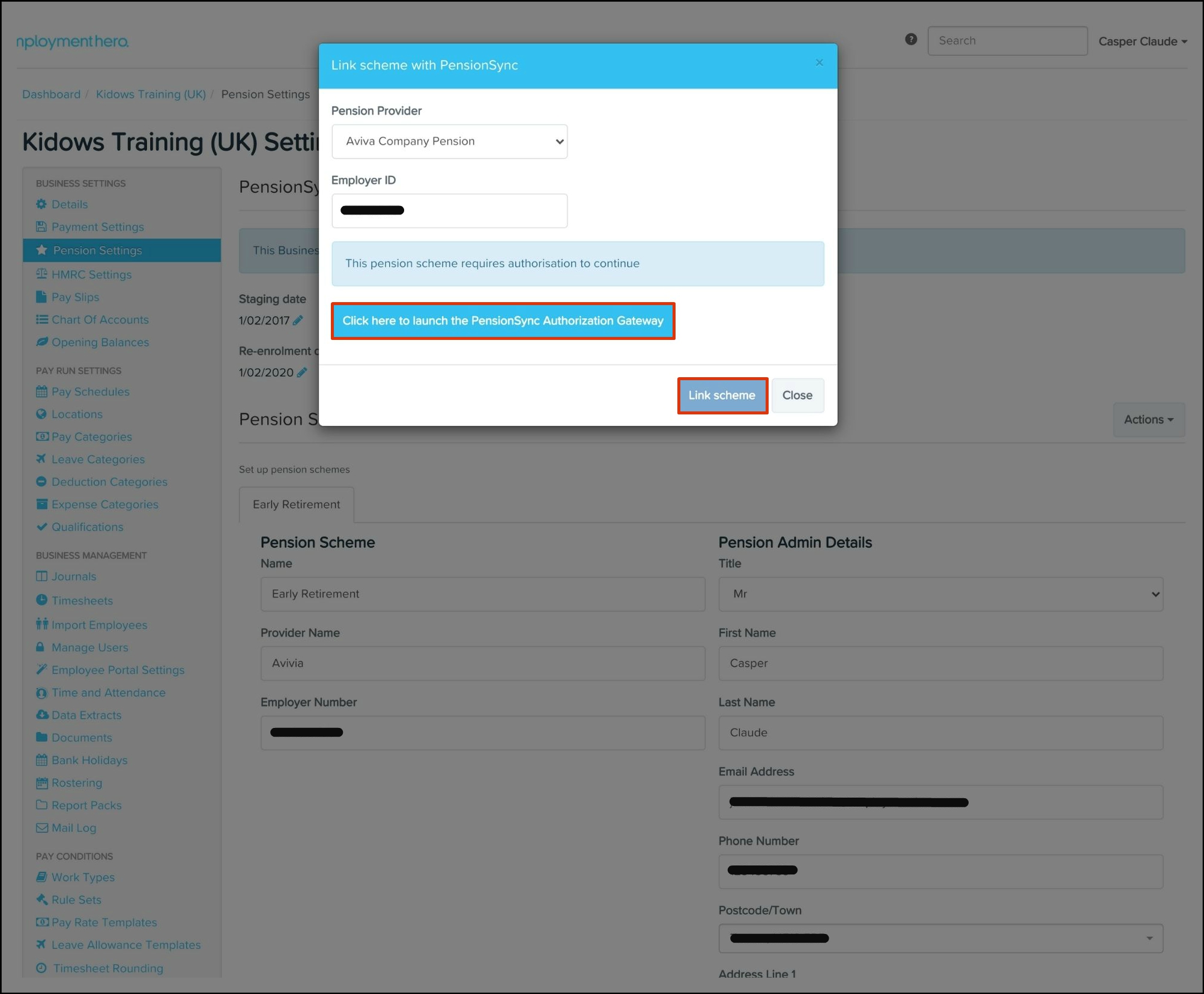 Setting up PensionSync