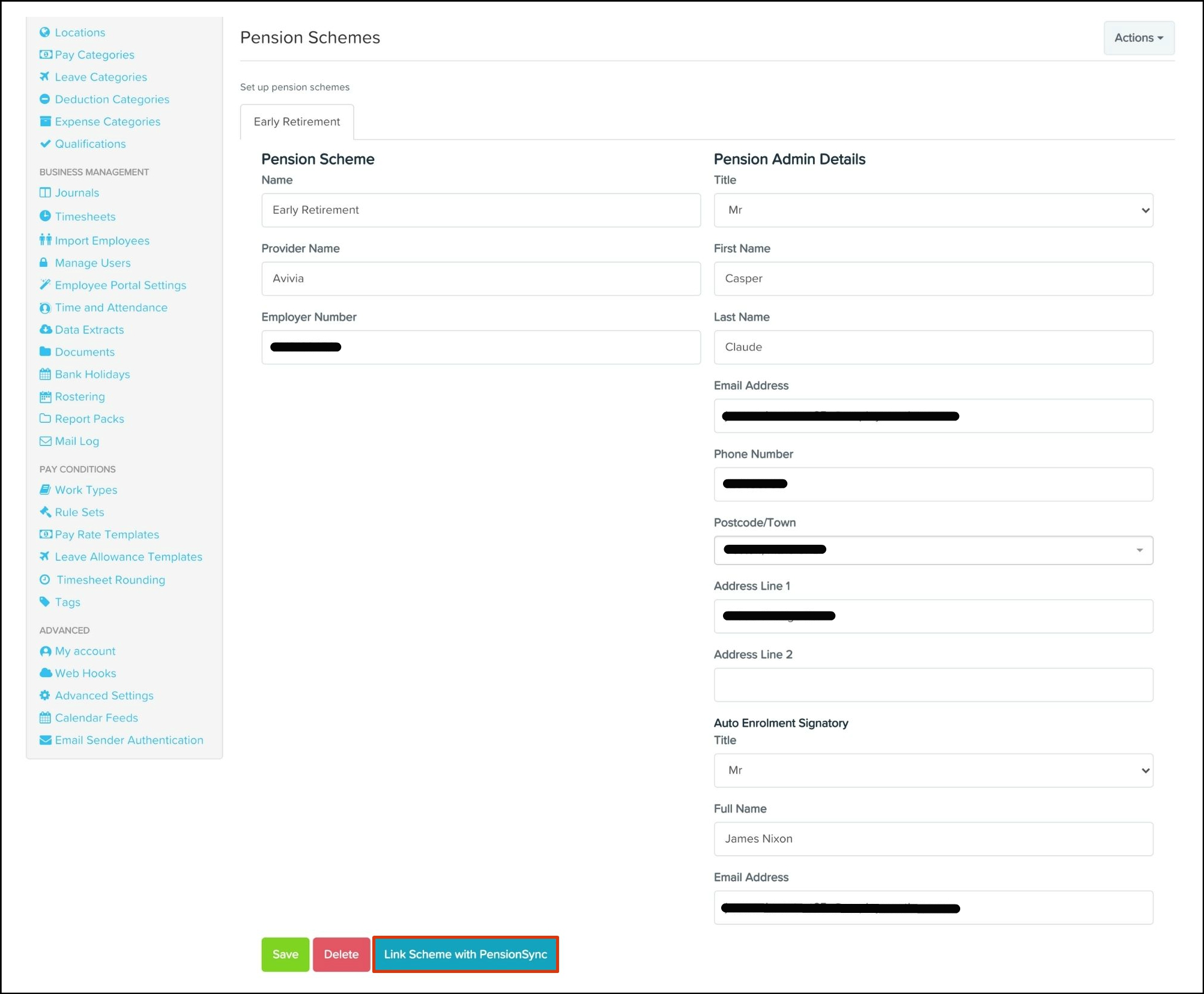 Managing pension schemes via PensionSync