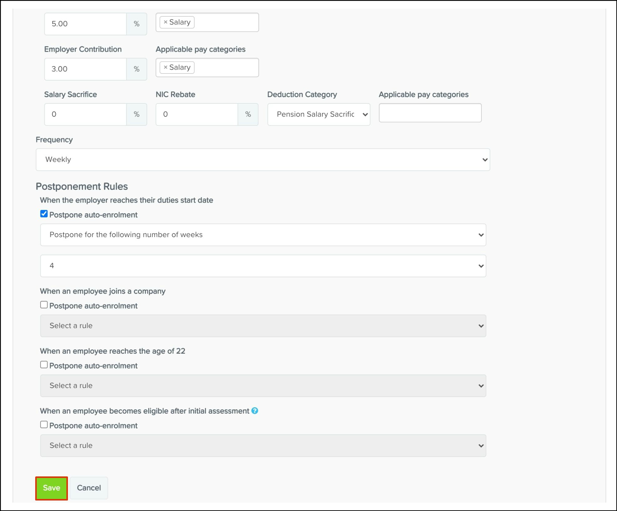5. Enter the required contribution plan details and click the Save button.
