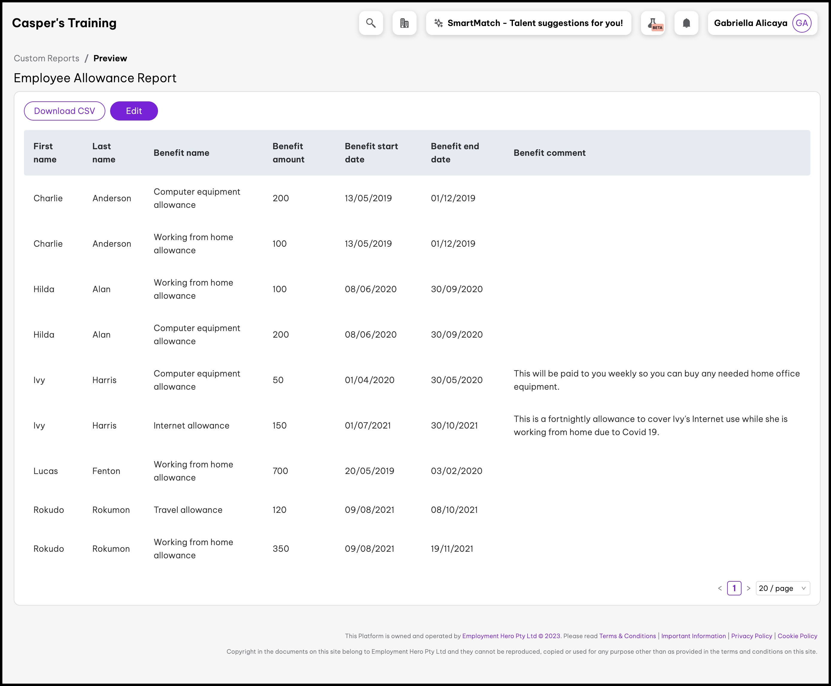 You will now see your allowances report on your screen. To read more information on how to edit, download, and delete a custom report, refer to the following article.