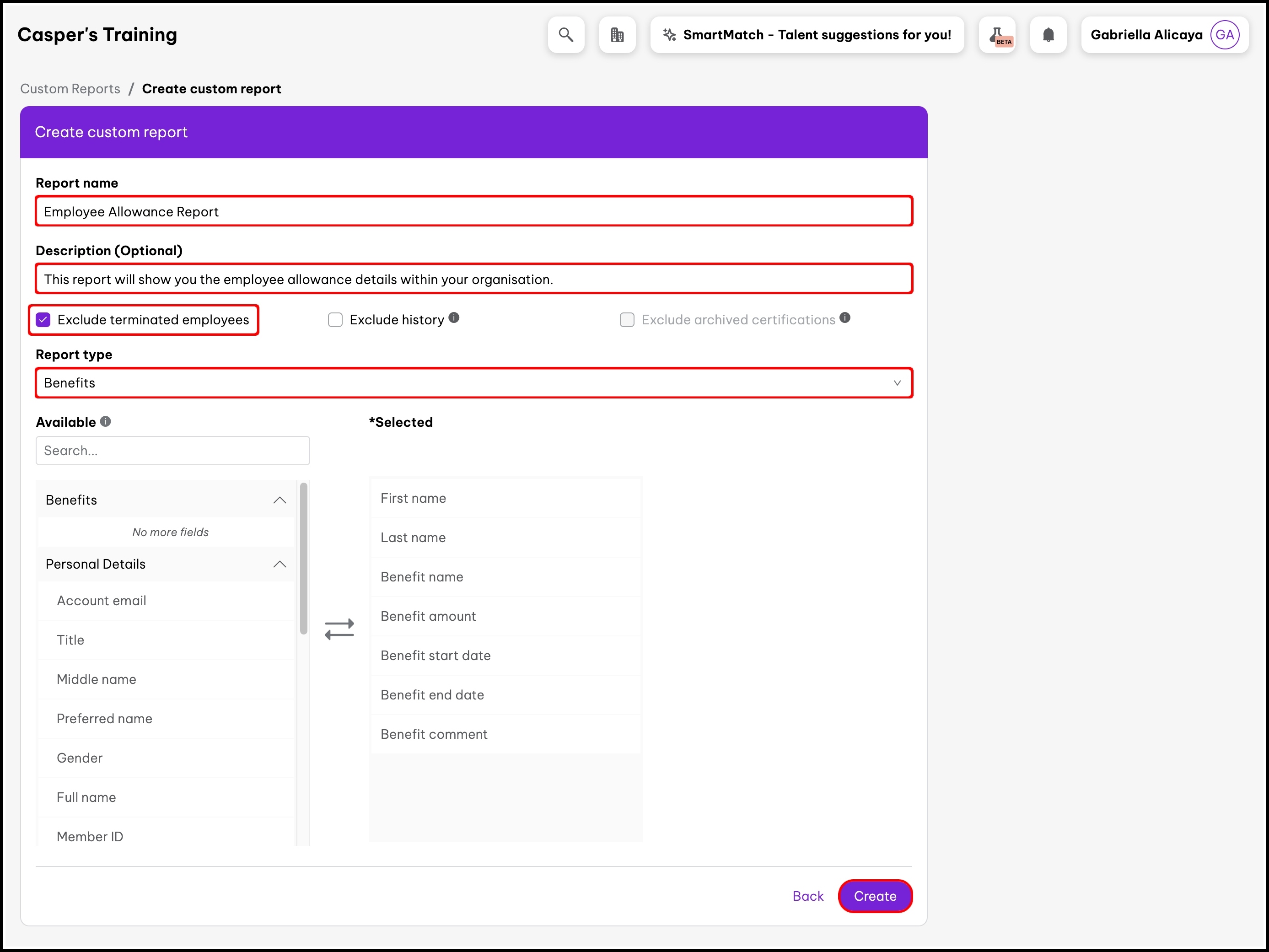 You can use the Custom Report feature to construct a report covering the allowances allocated to your employees via their employee file, including the monetary amount, any comments made, and the expiry date.