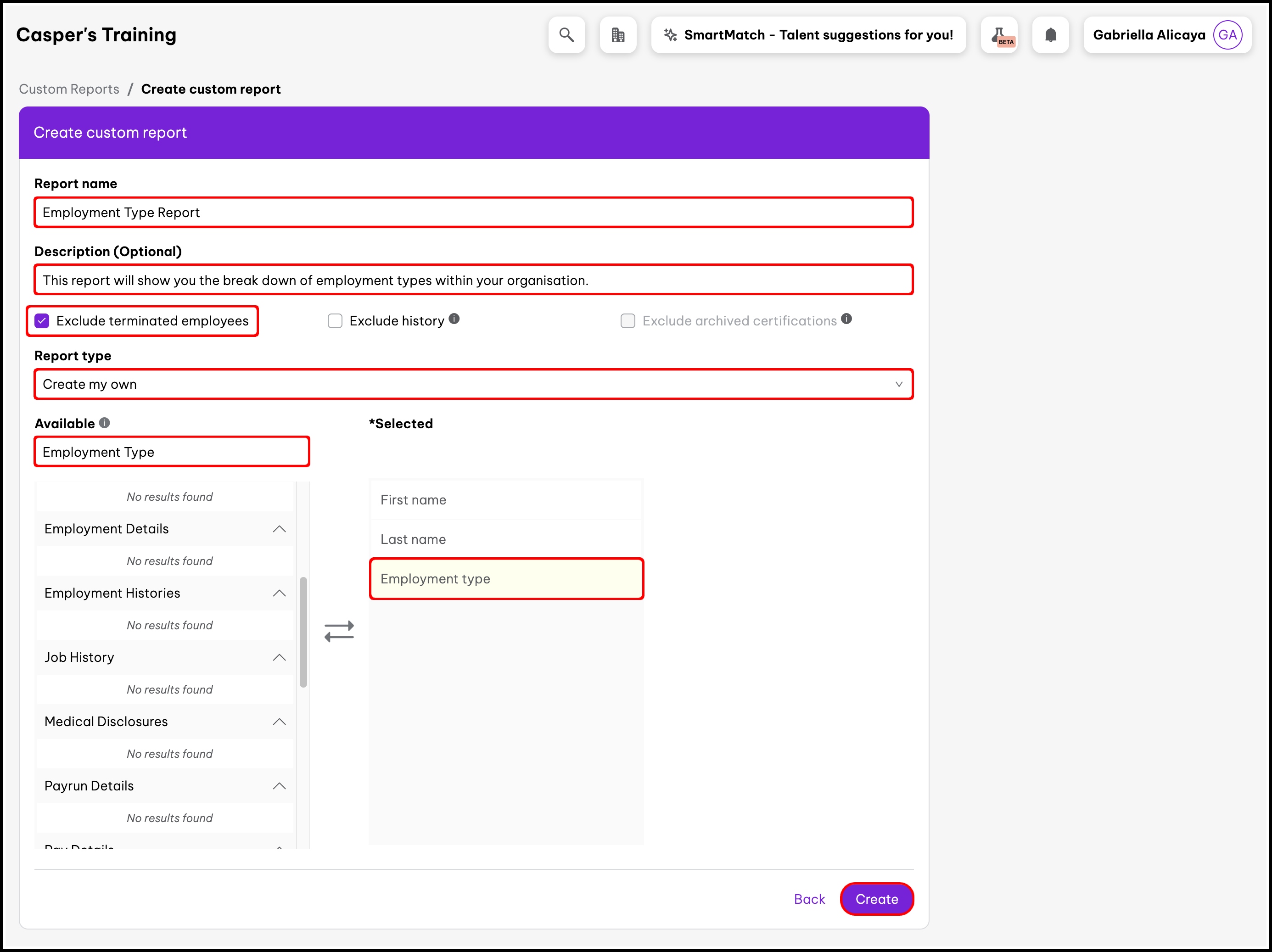 - Enter “Employment Type Report” in the Report name field.