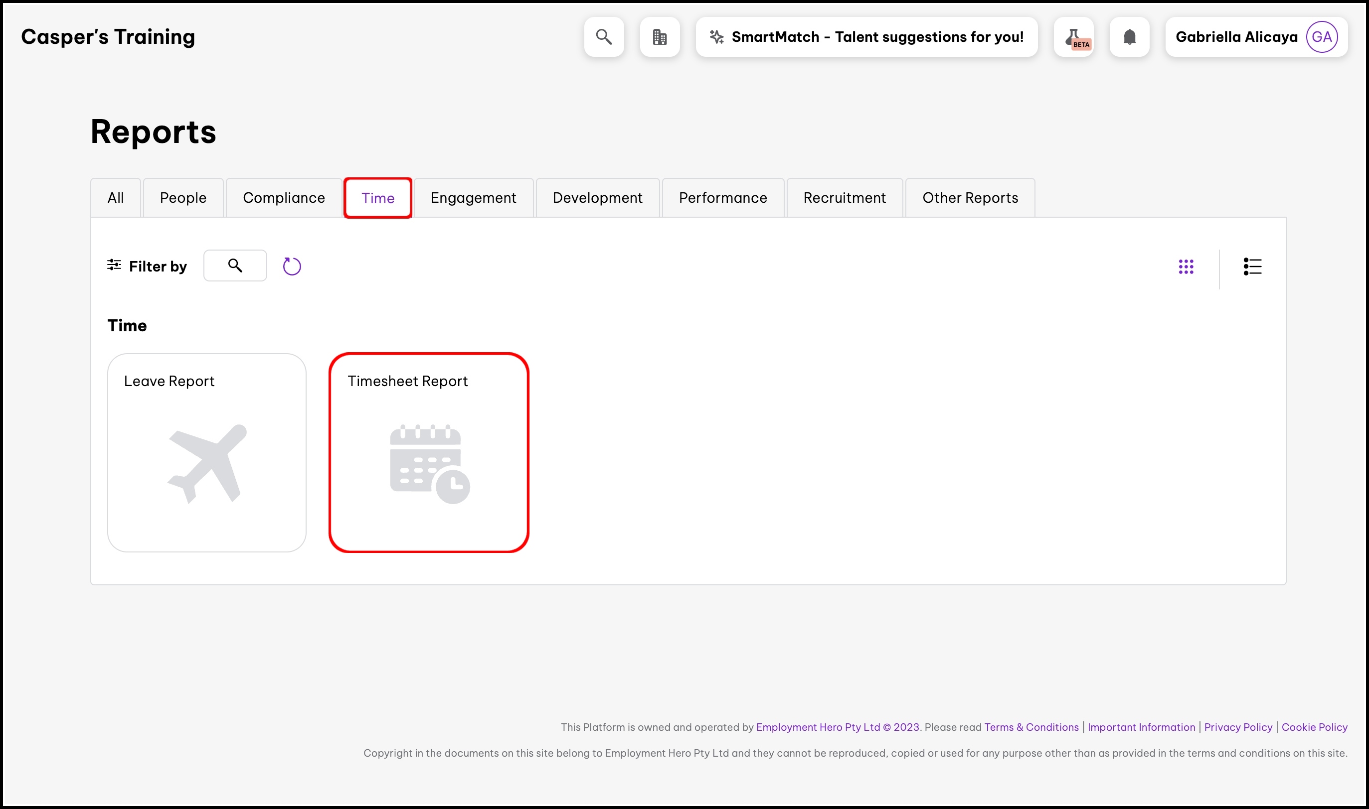 The Timesheet Reporting feature allows you to create a report on your organisation's timesheet submission. You can see details such as the current approval stage and the allocated work type. You can also use this feature to download a CSV file of the data. Enabling you to load the report into a CSV-supported program like Microsoft Excel.