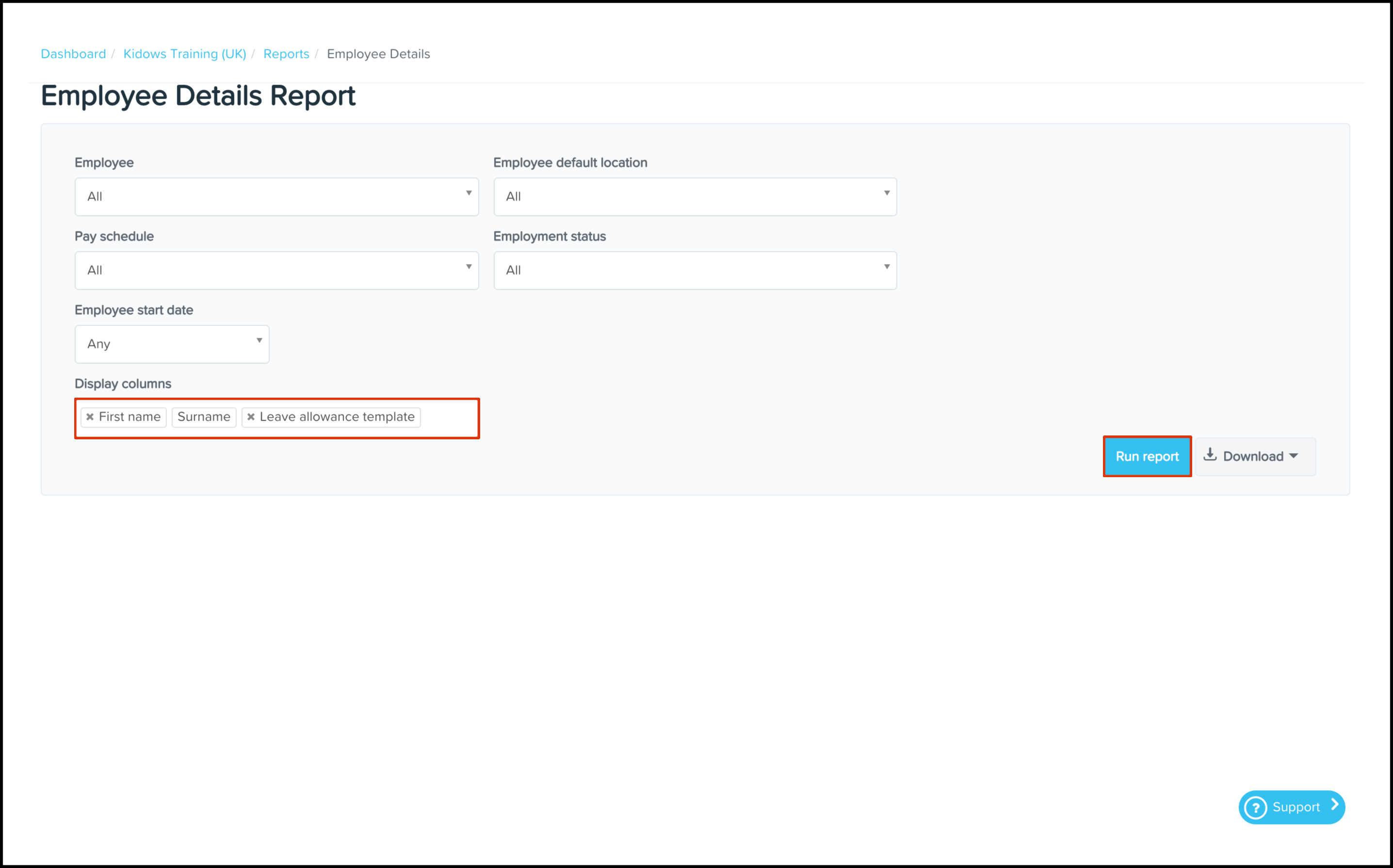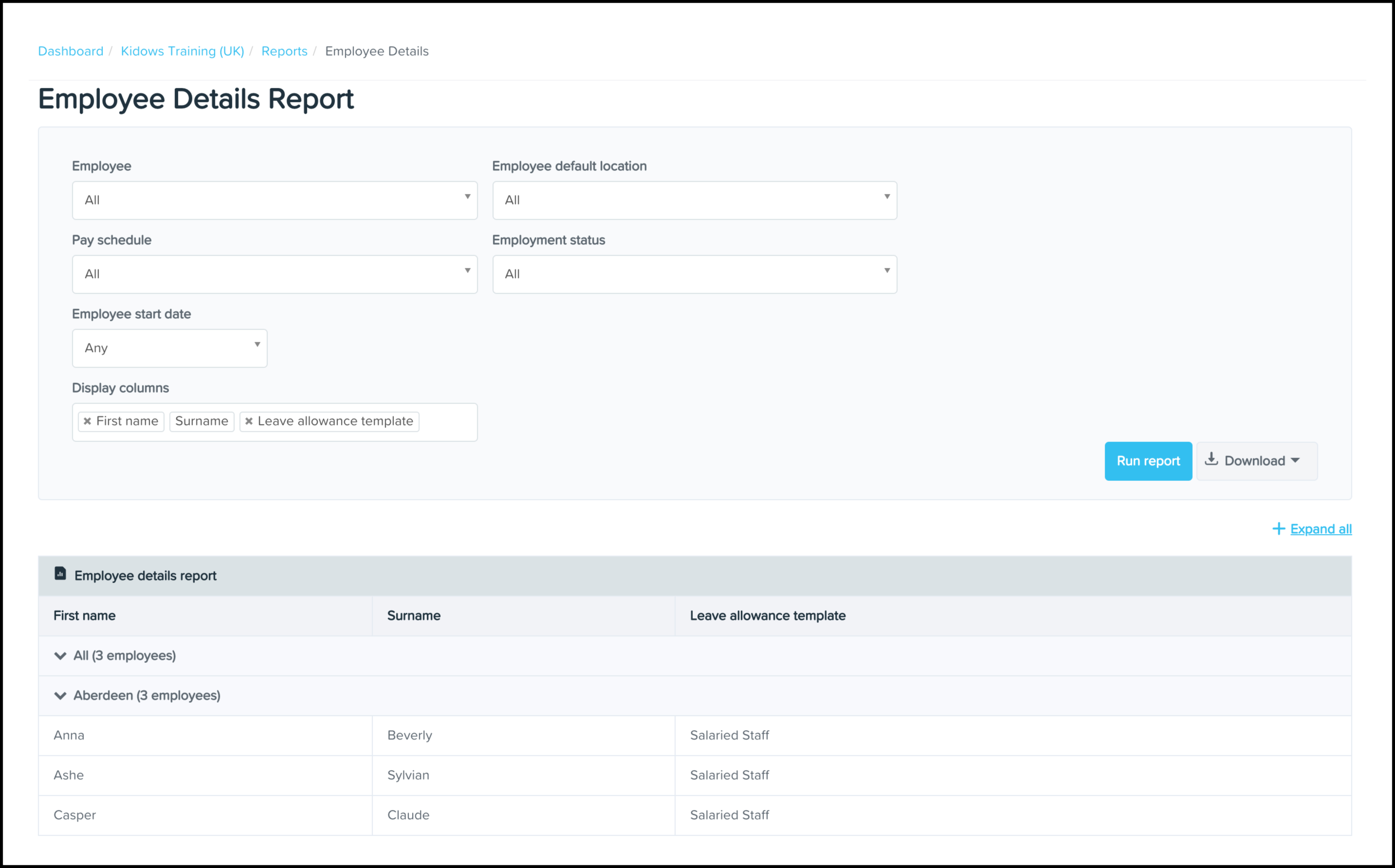 This article covers how to use the Employee Details Reporting feature, which lets you construct a report on the leave allowance templates assigned to your employees in your Payroll classic platform.