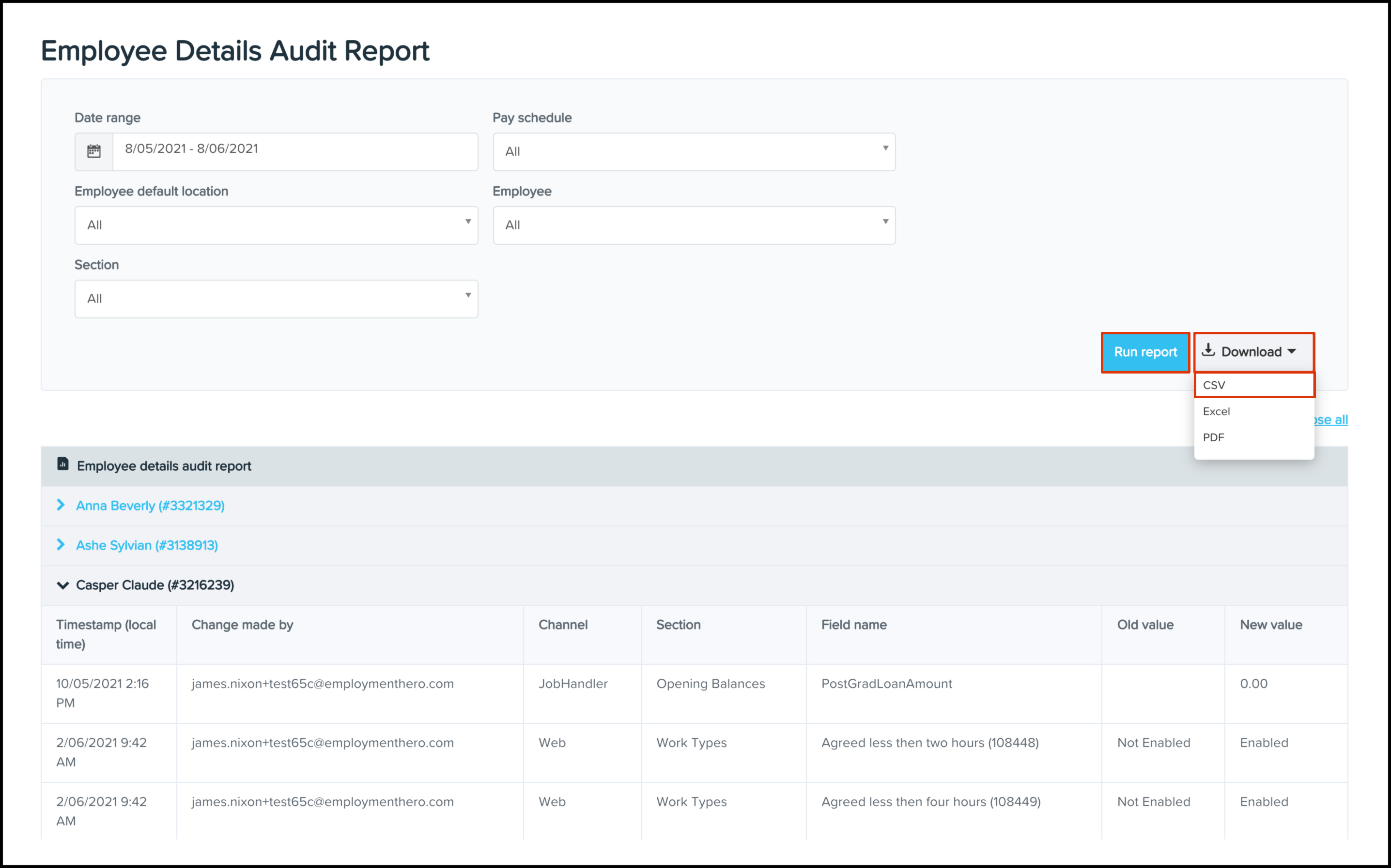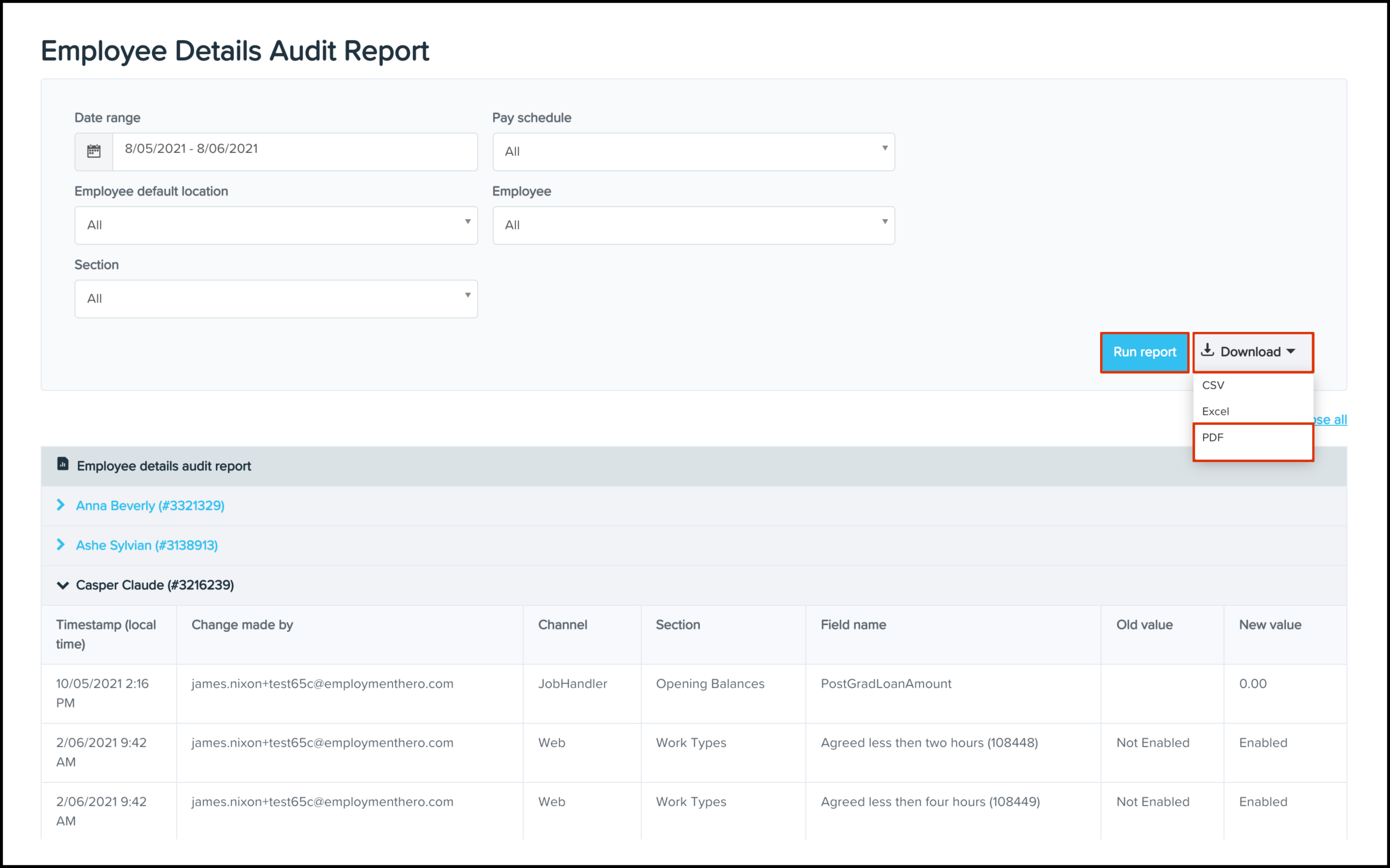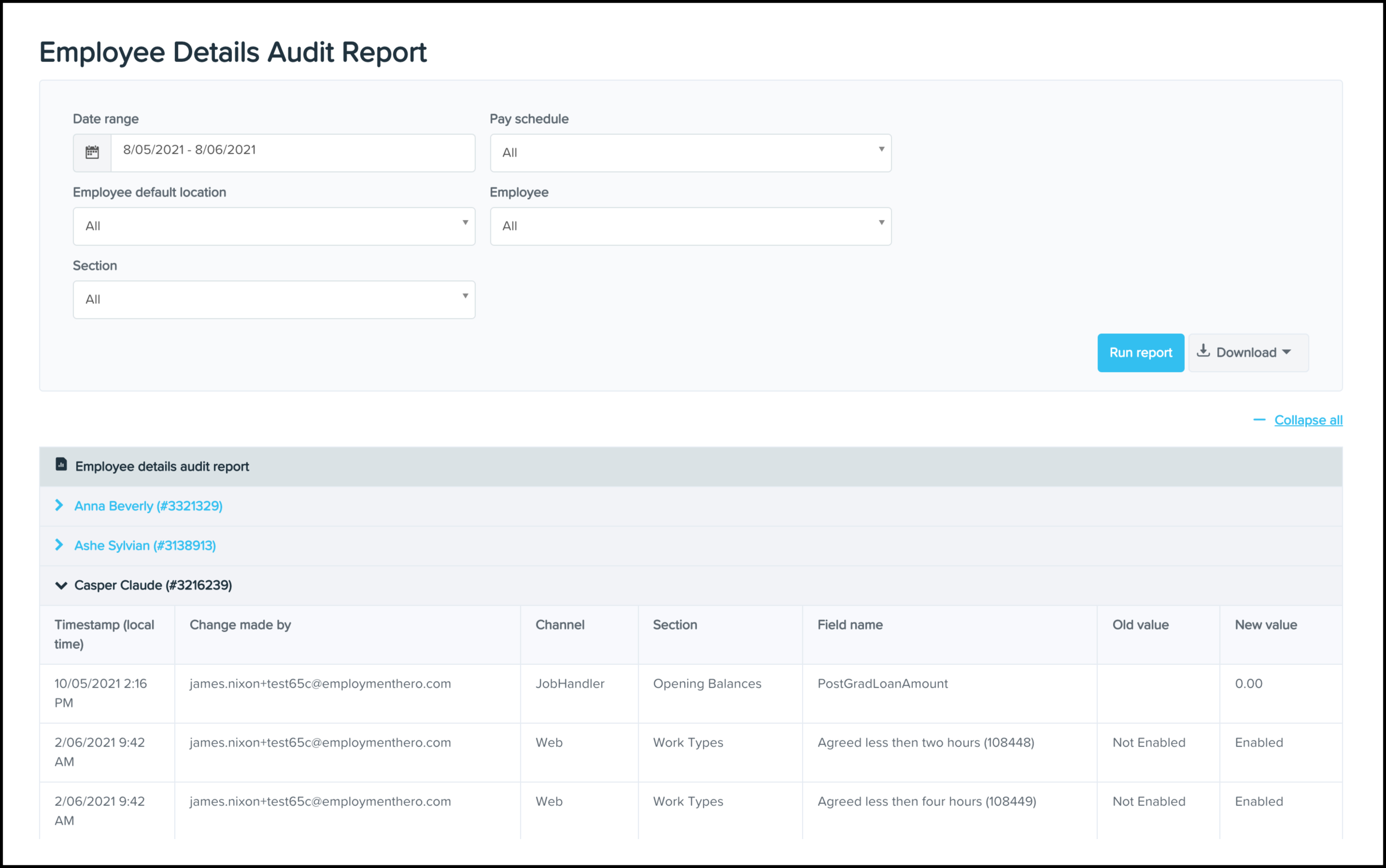 In these cases, being able to generate an audit trail will allow you to look up these change details without having to track down the given employee's manager and other admins in your organisation and ask them if they changed any payroll platform records.