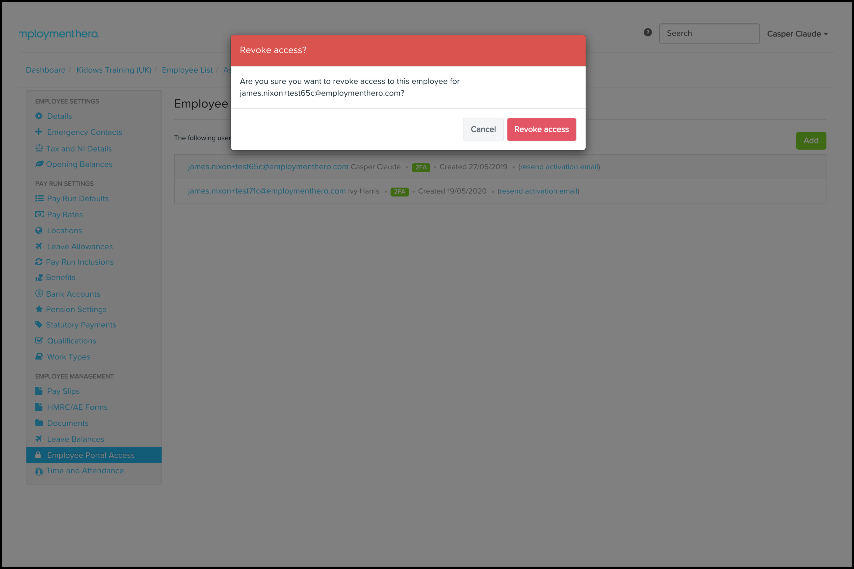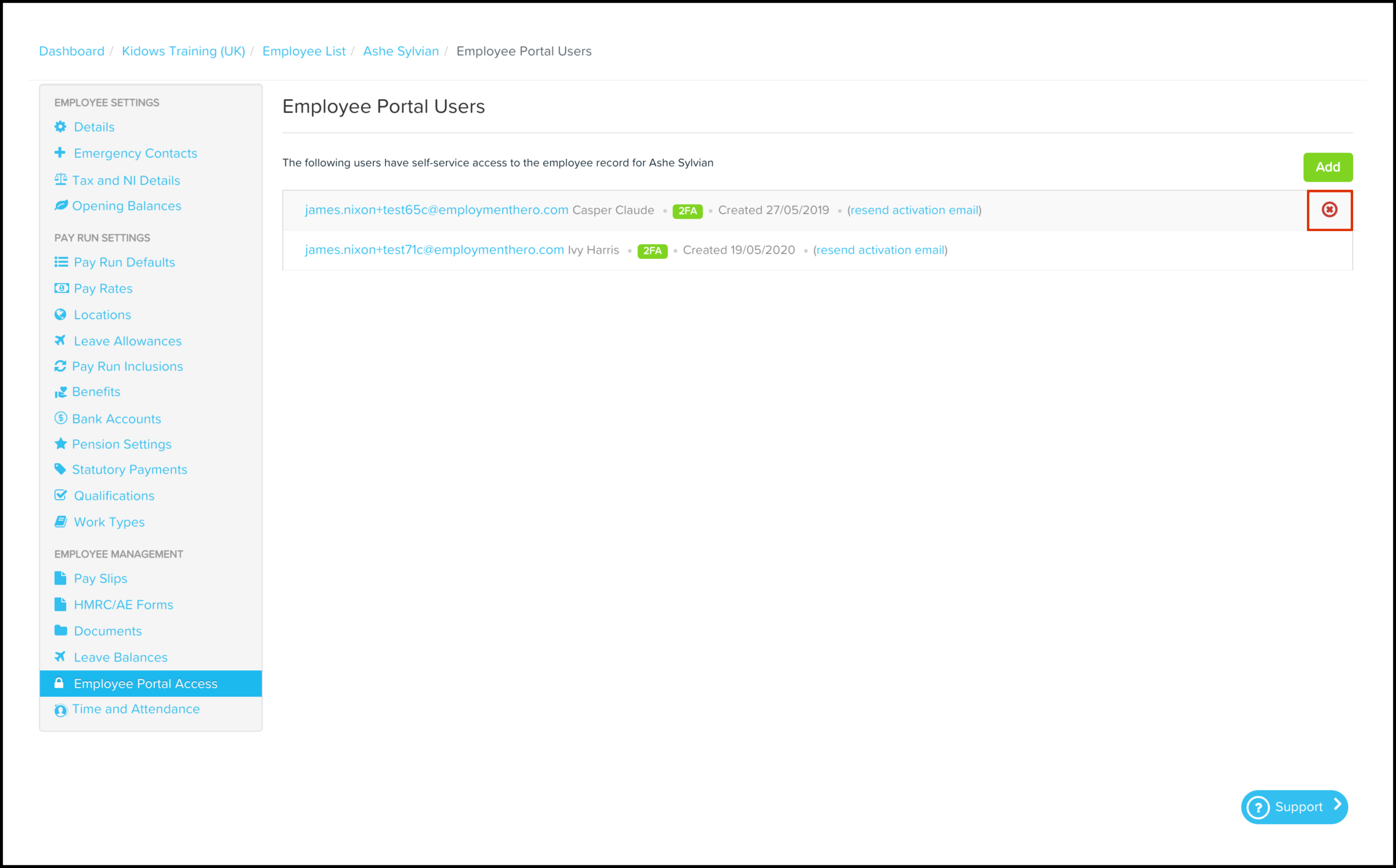 The Employee Portal Access feature allows you to grant access to employees who need to view an employee file in your organisation. You can also use this feature to resend the relevant access invitation as well as delete an employee's access if it is no longer required.