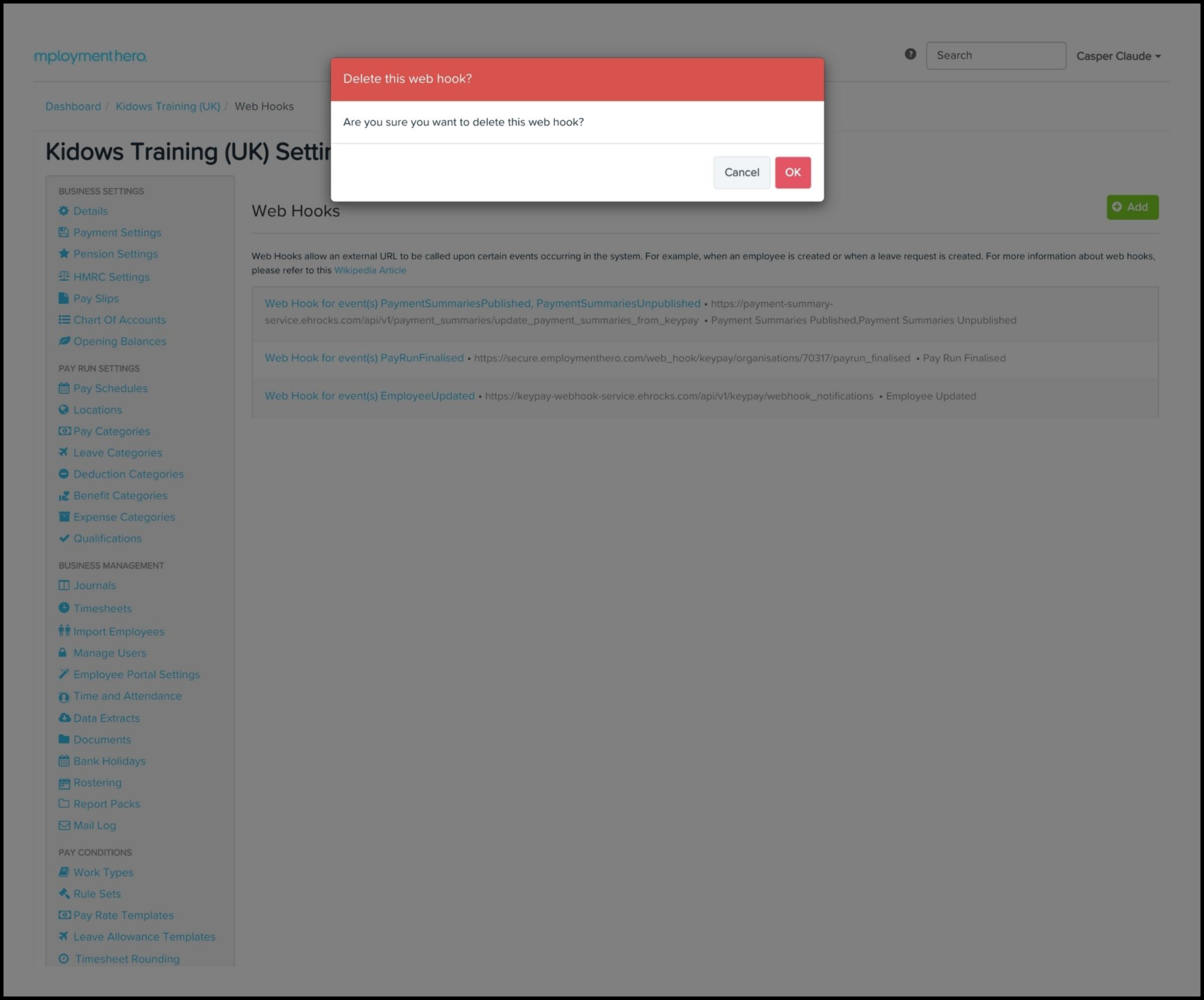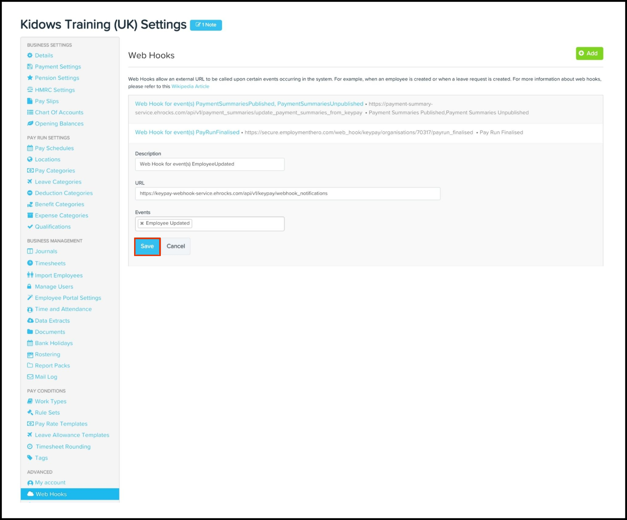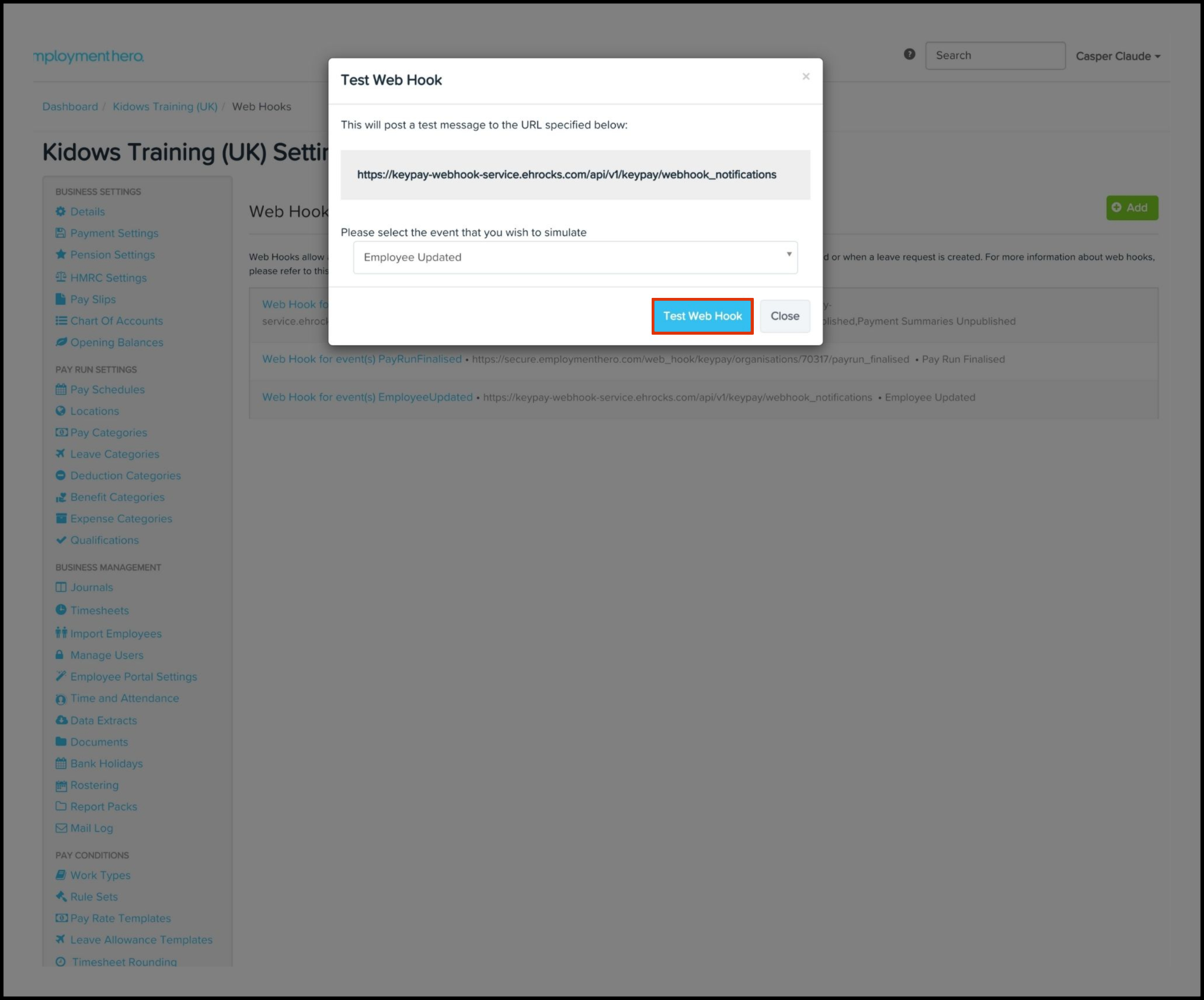 You can use the Payroll Web Hooks feature to add a new Web Hook to your organisation's payroll platform and then test out this data source to make sure it works as intended. You can also use this feature to edit any information if it changes and delete a record if it is no longer required.