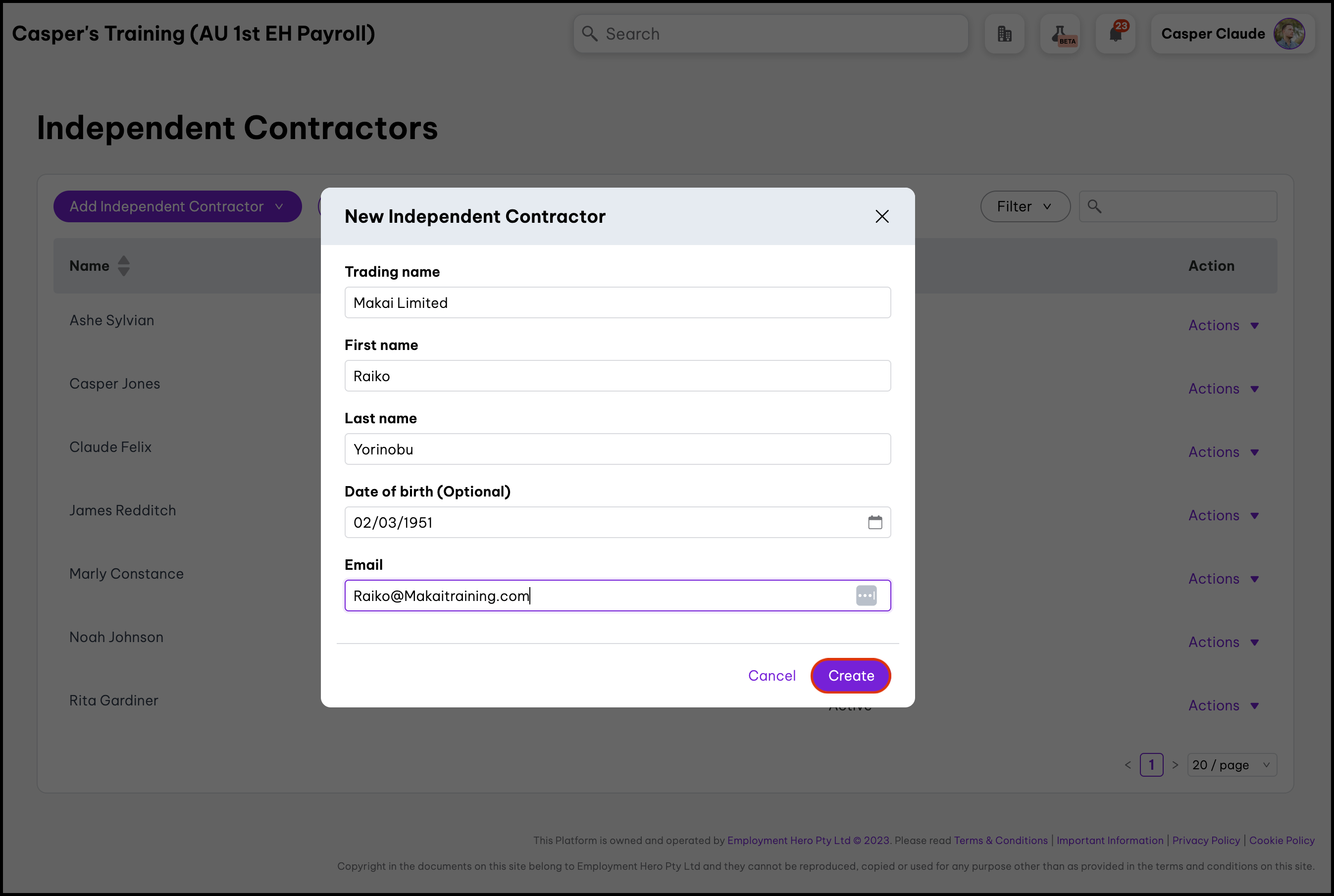 The Quick Add feature allows you to quickly add a new contractor to your Employment Hero Platform.