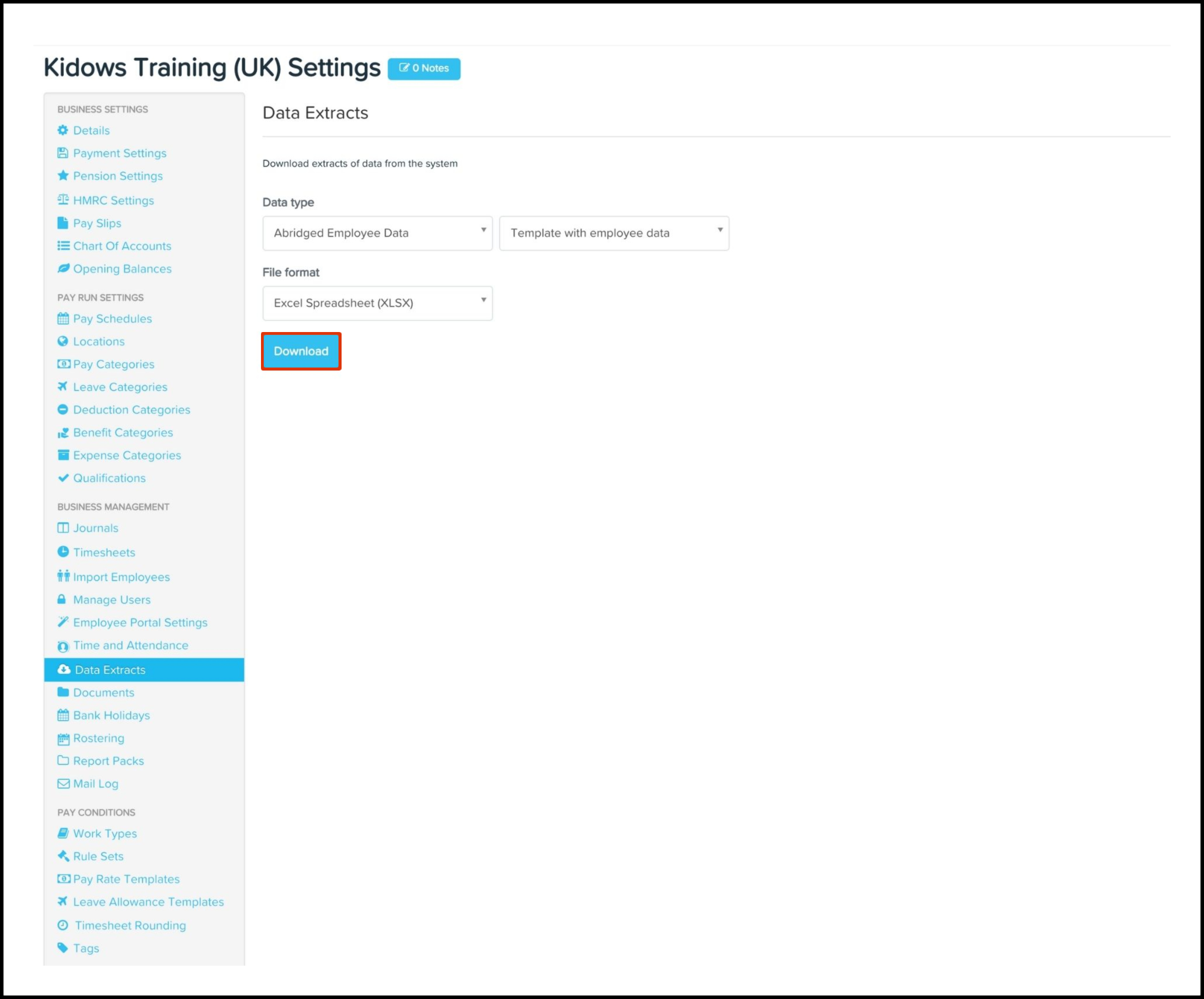 The Data Extract feature enables you to download your abridged employee data stored within your Payroll classic platform as either a XLSX or CSV file.