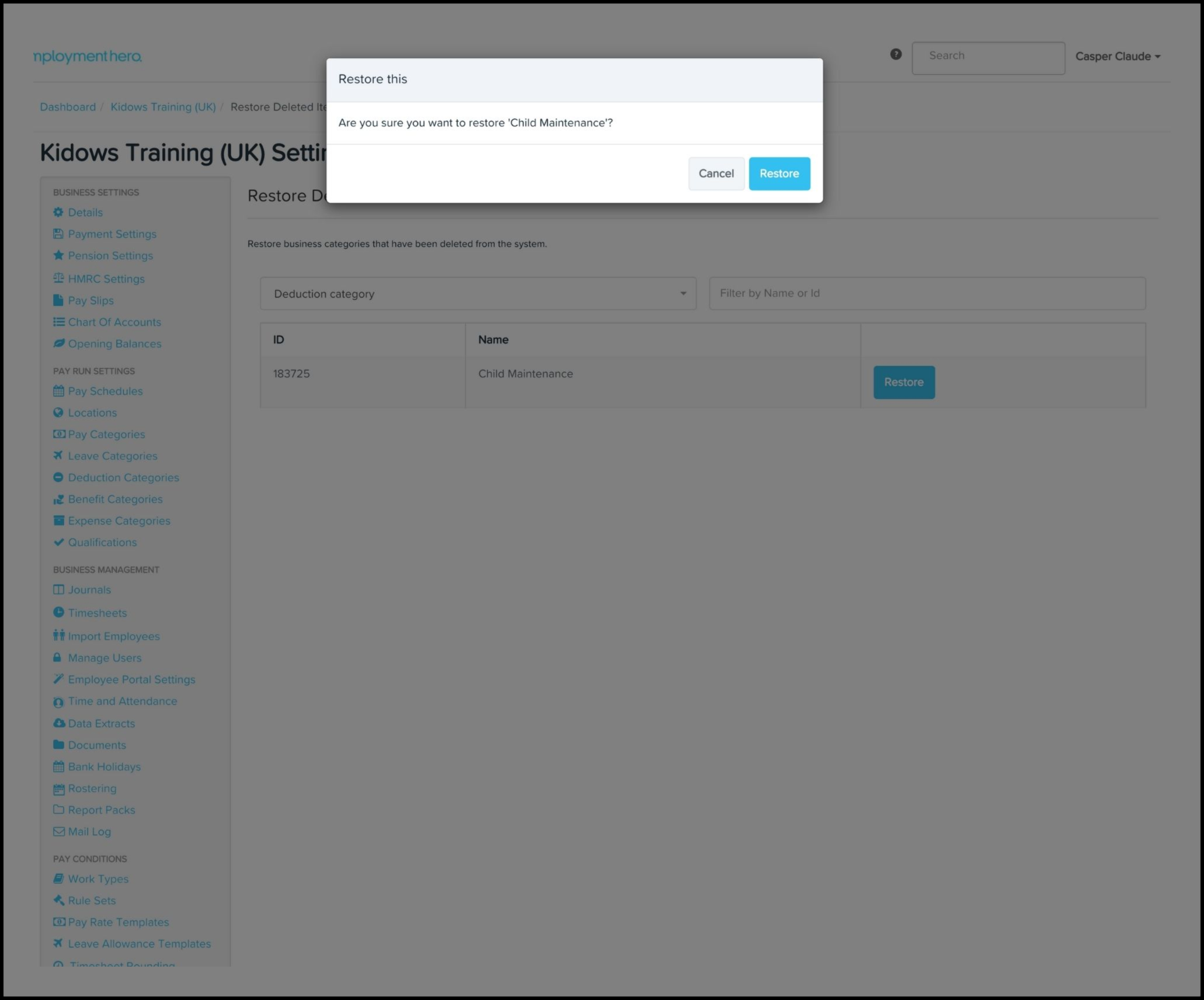 Inadvertently deleting certain business settings can have huge unintended consequences. If this happens within your payroll classic platform, you can restore a range of these settings via the Restore Deleted Items feature.