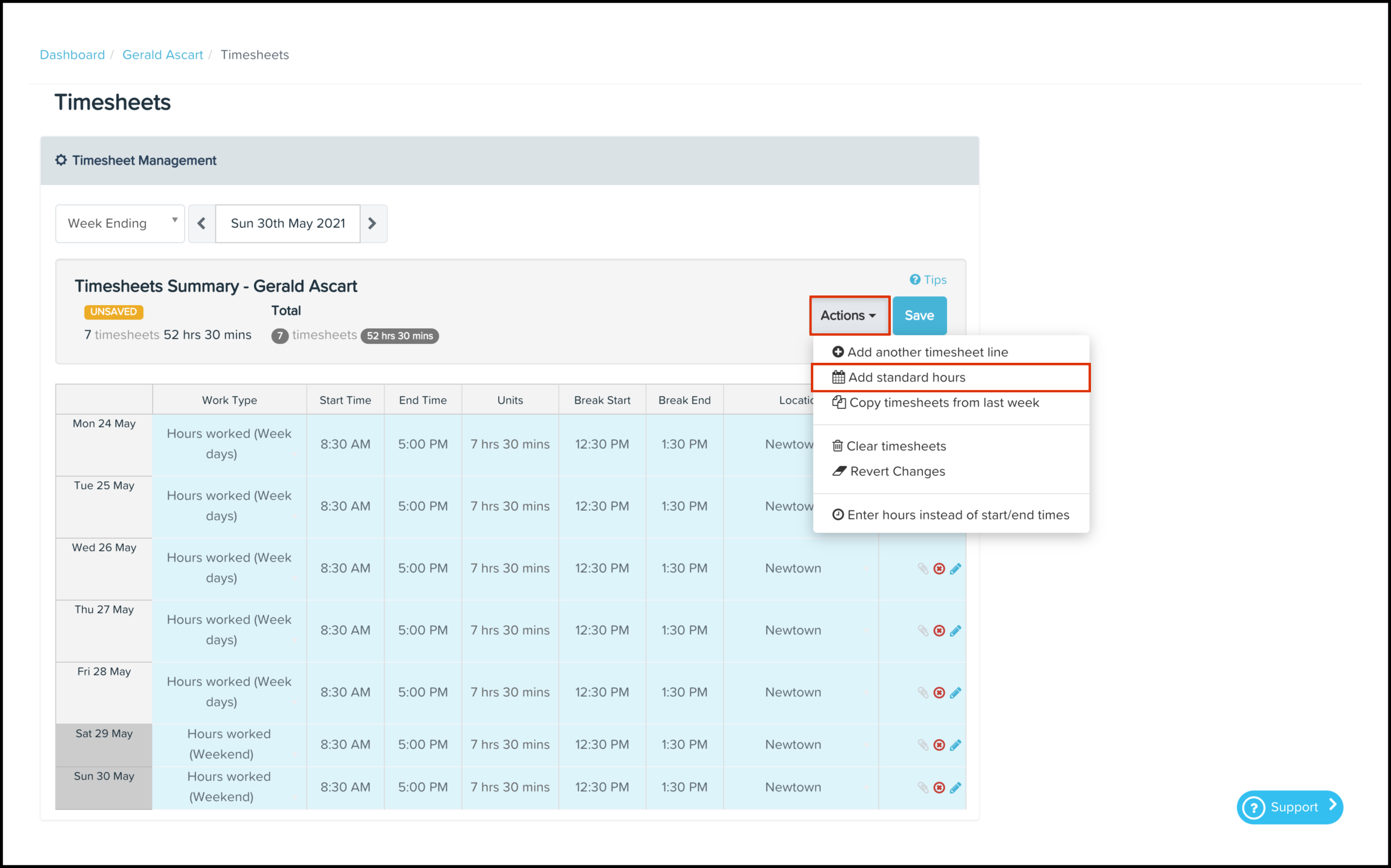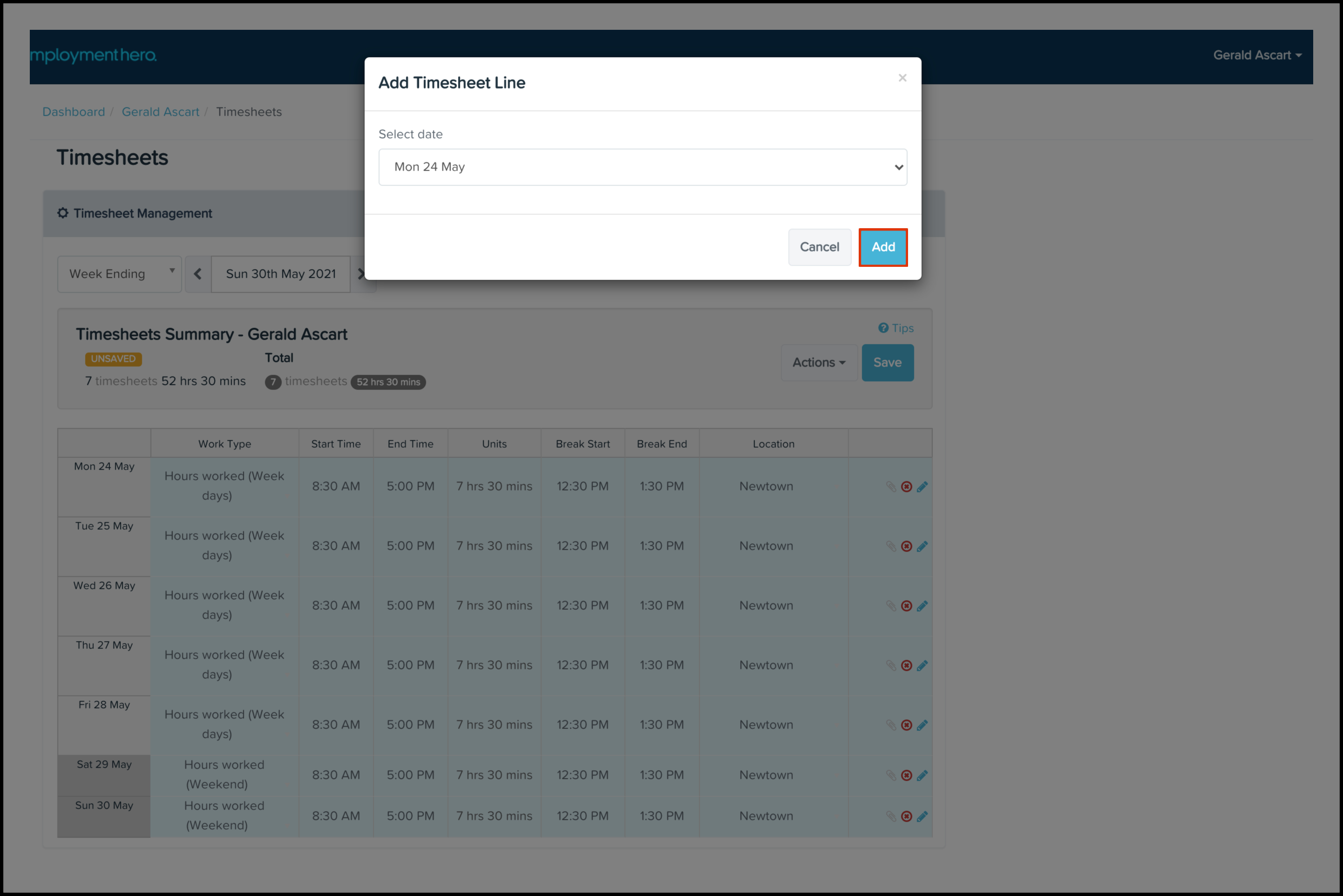 Adding to timesheets