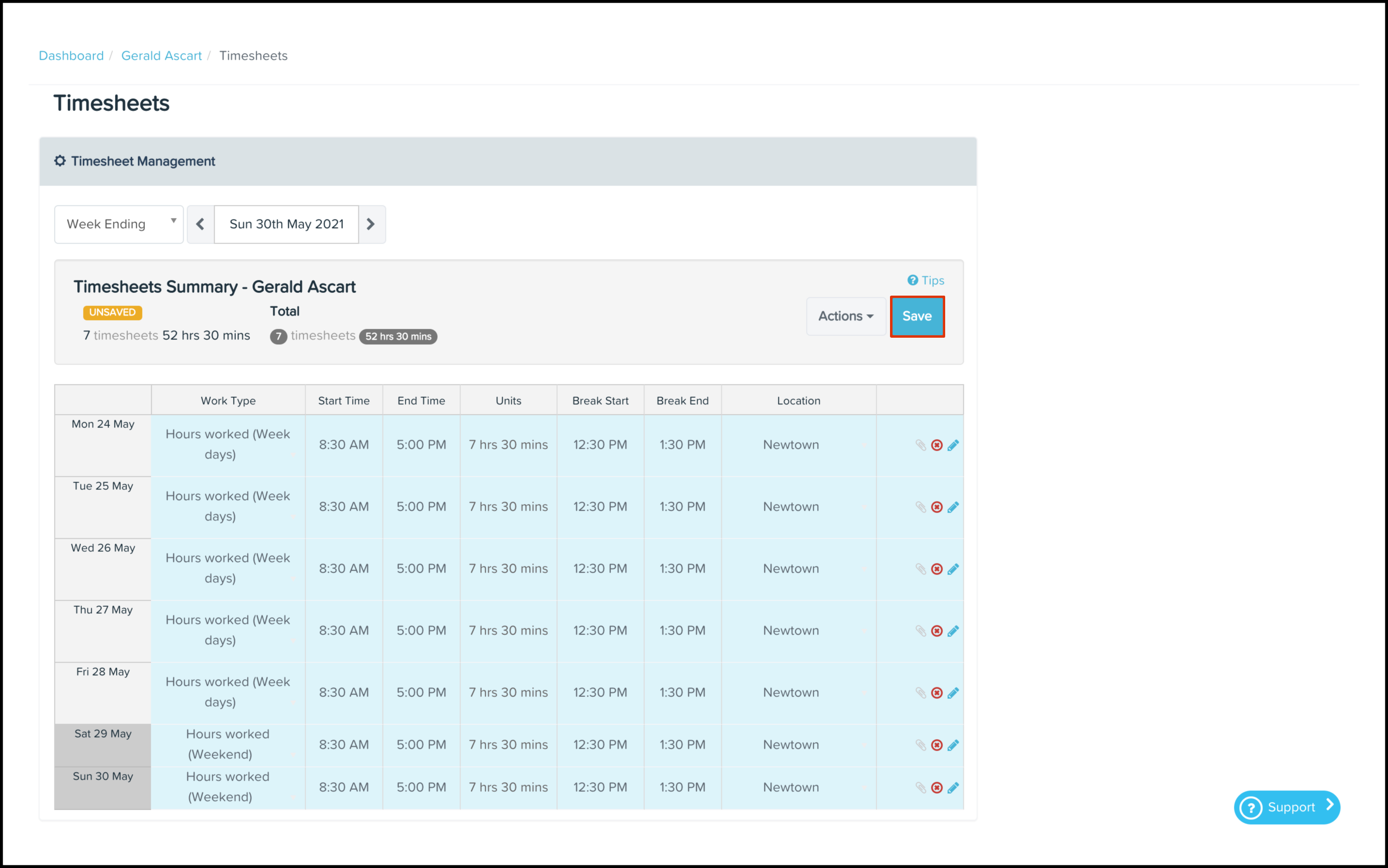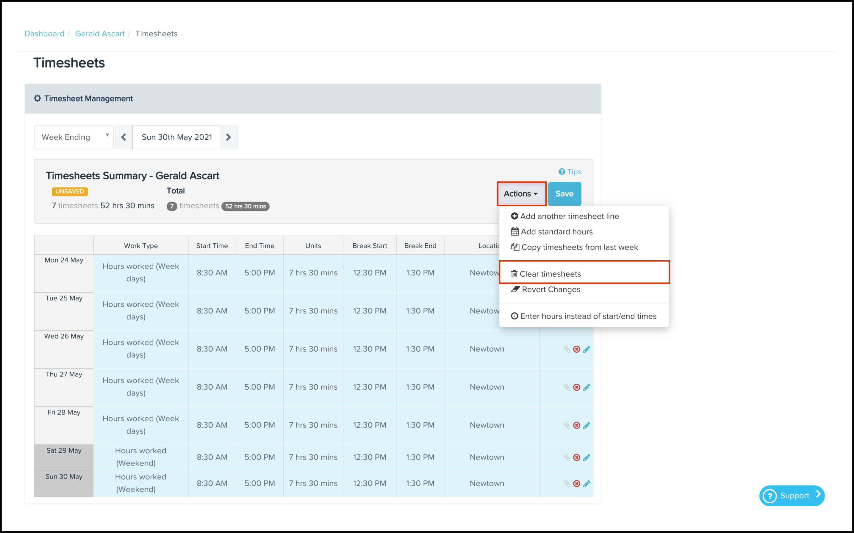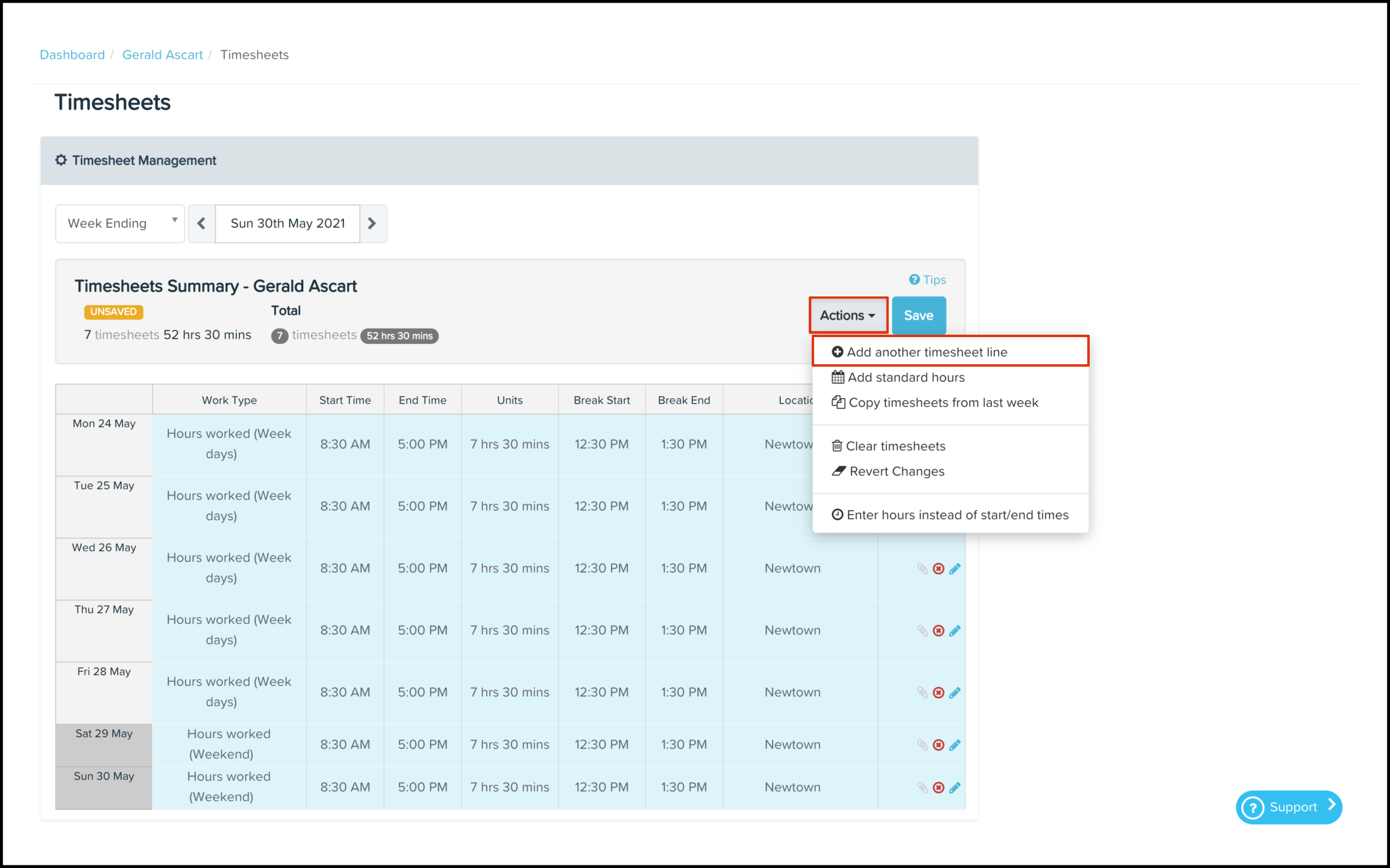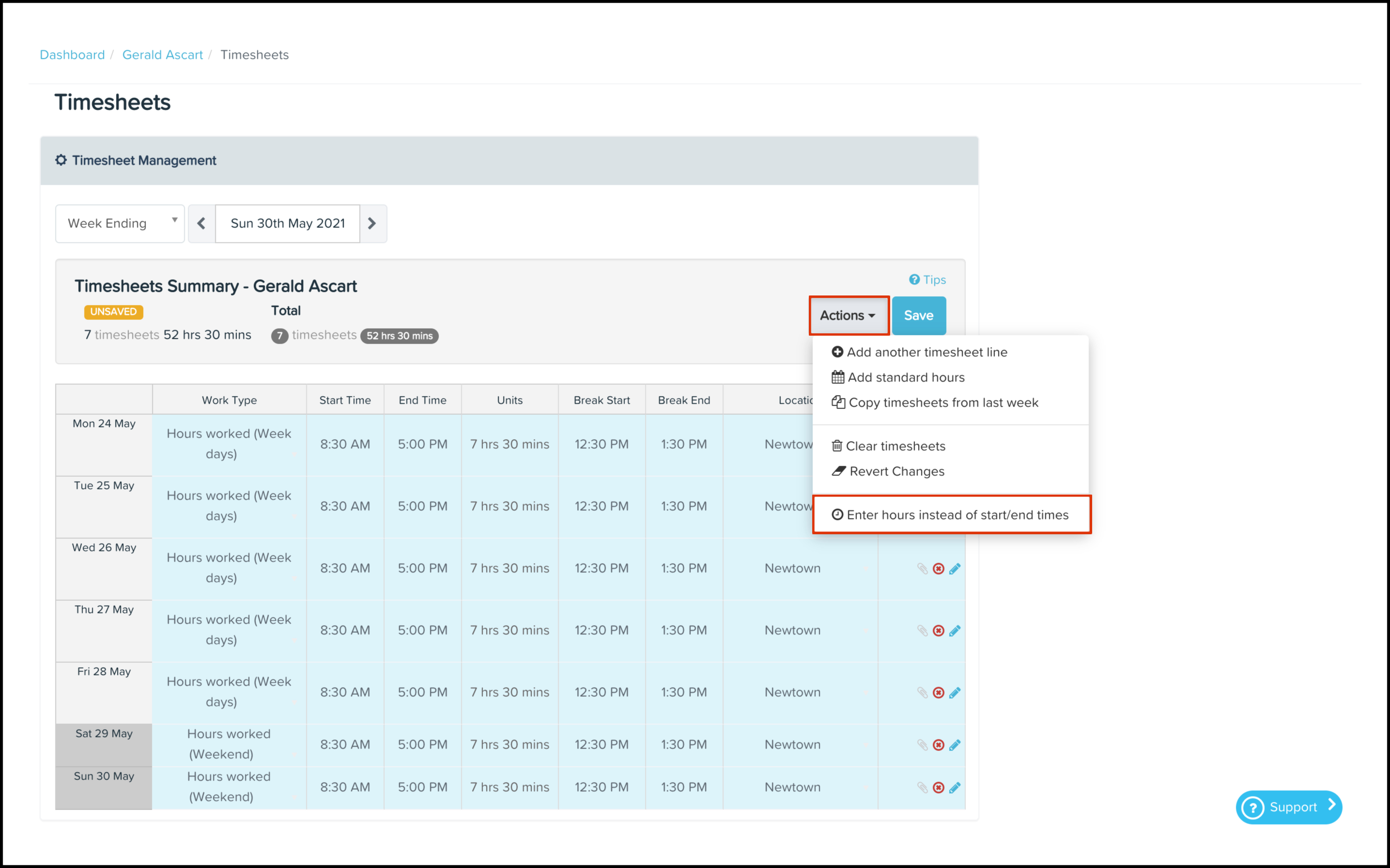 Changing timesheets