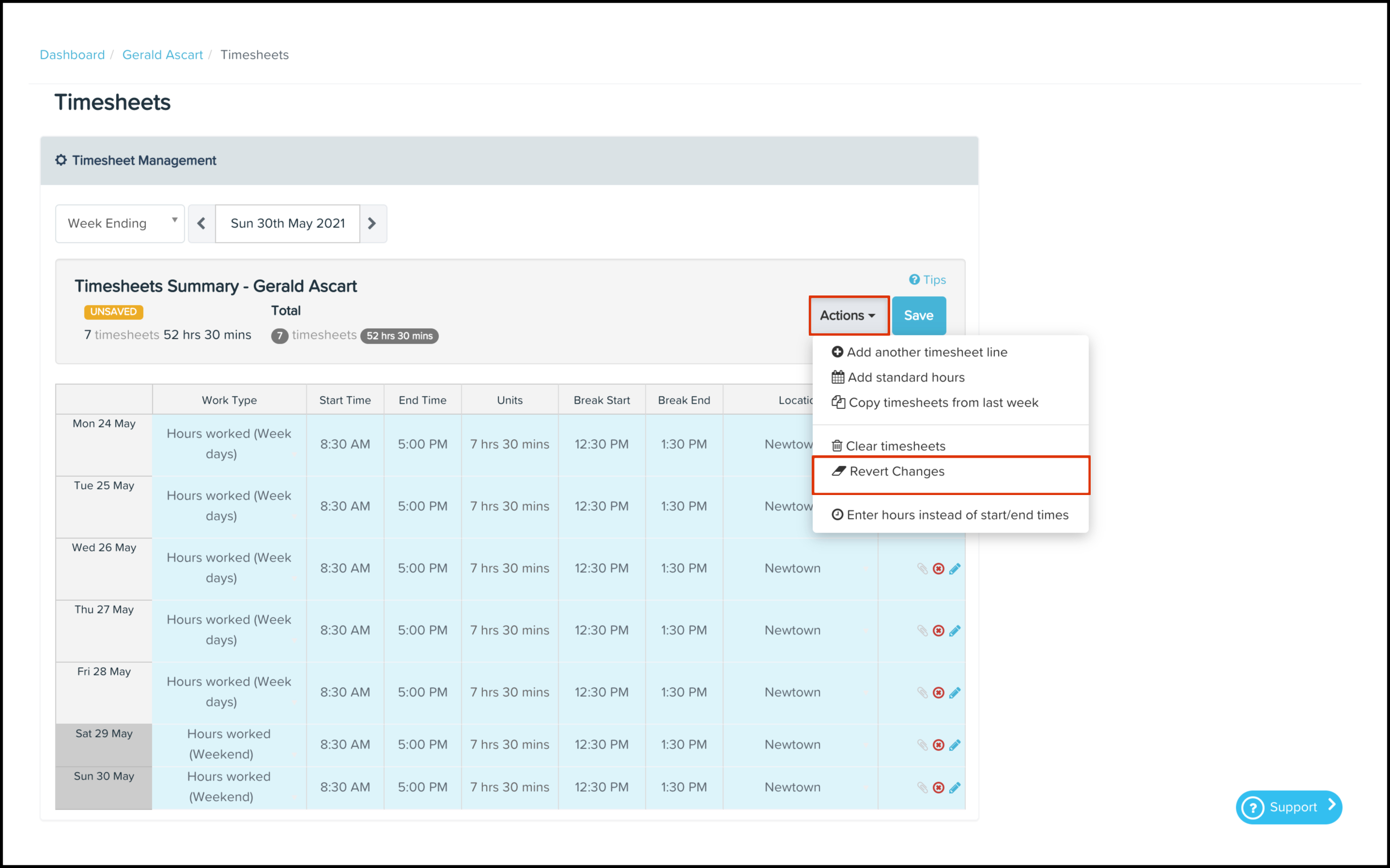 Reverting timesheet changes