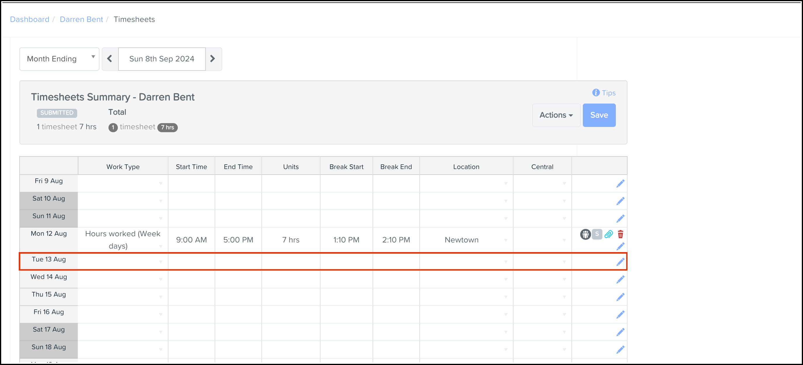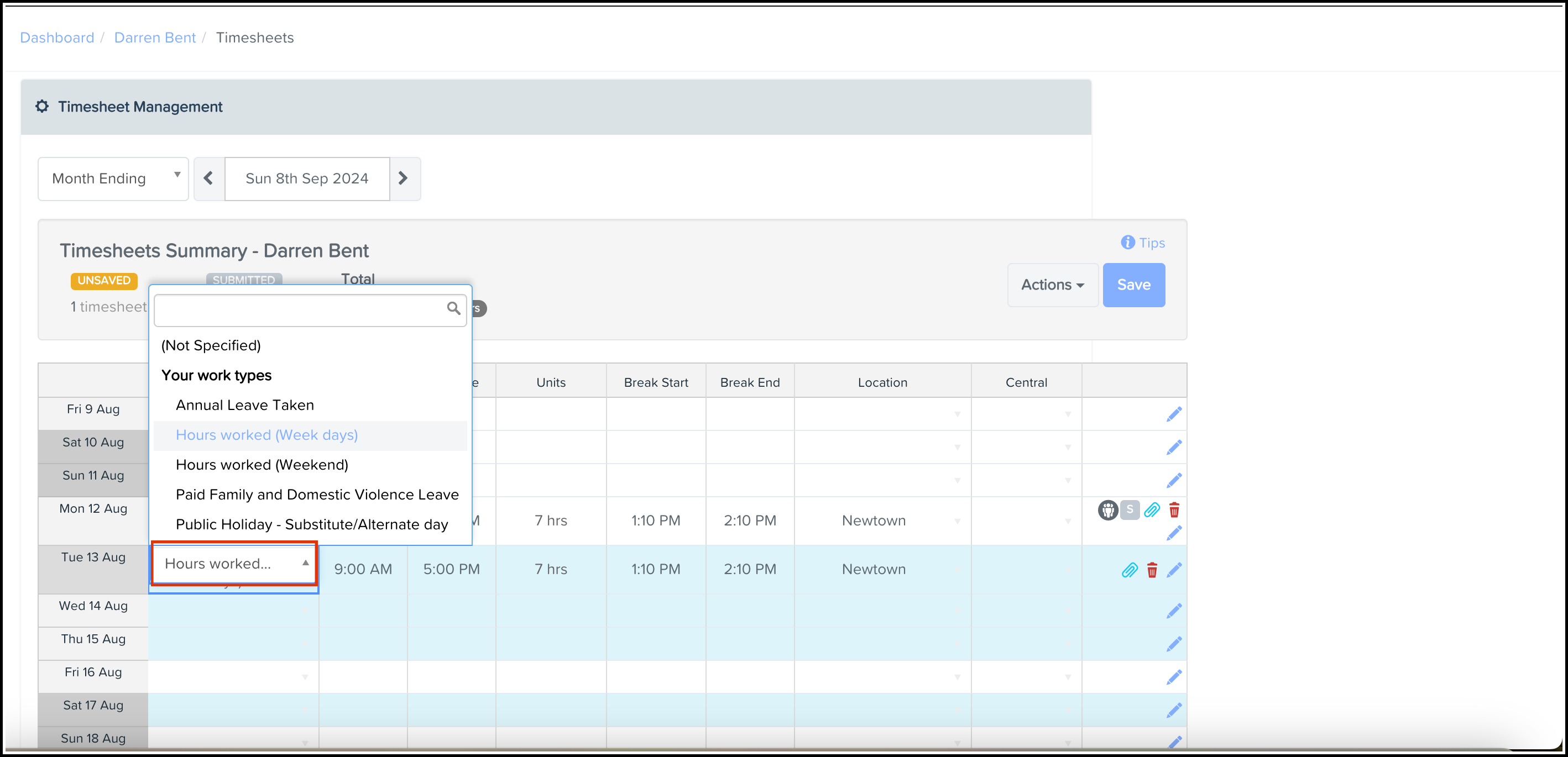 Submitting a timesheet