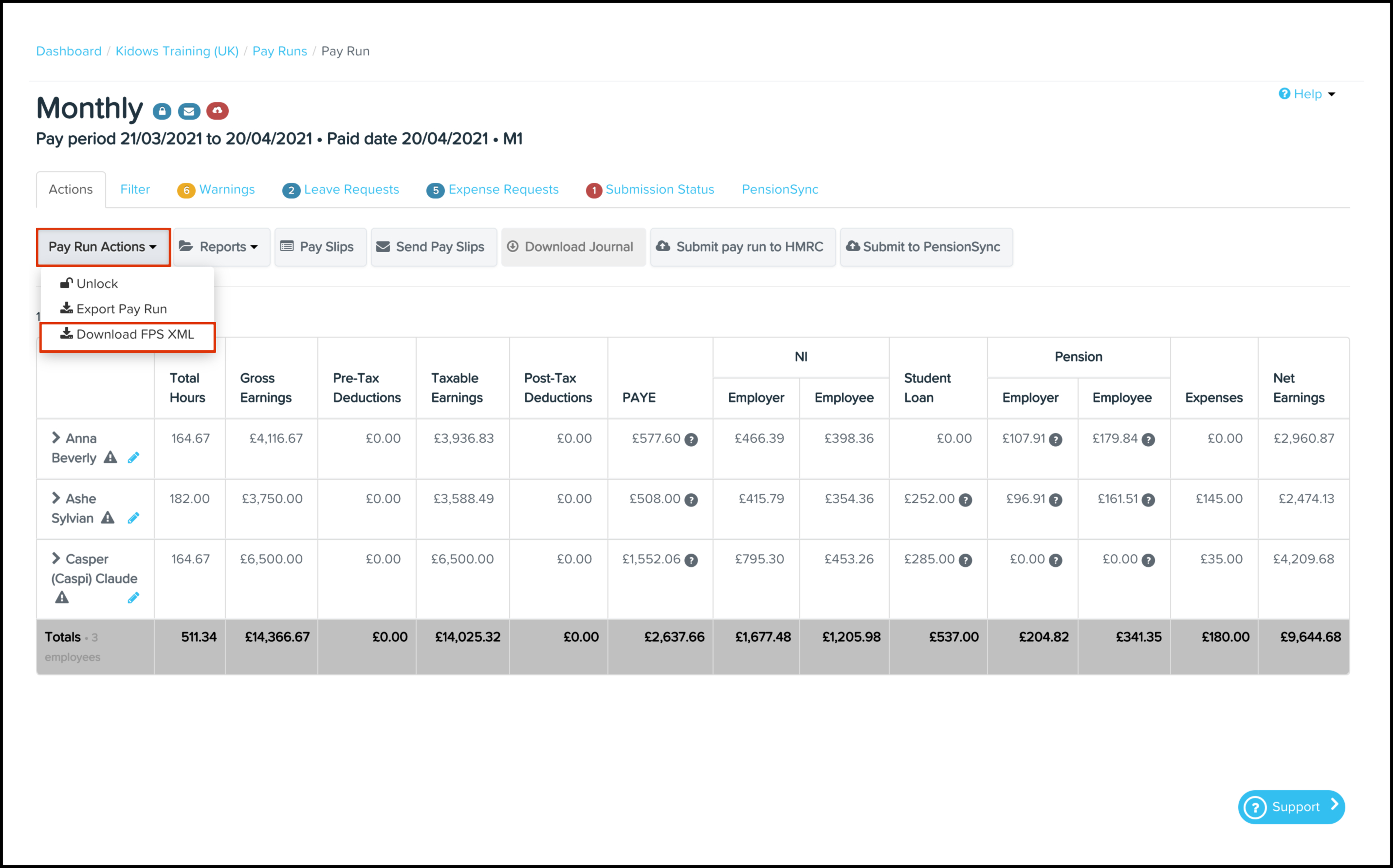 You can use the Download FPS XML feature to download a full payment summary from one o your organisations' finalised pay runs.