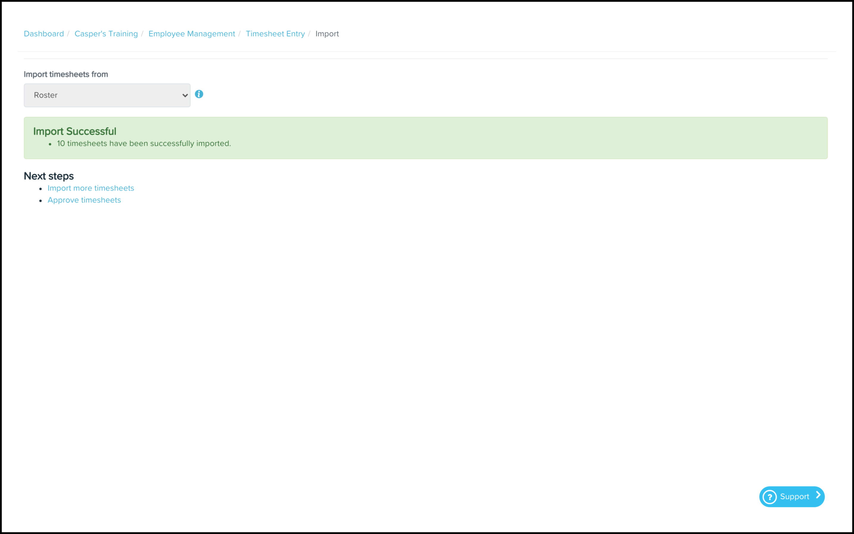 The Approve Timesheets option allows you to choose whether the platform automatically approves the timesheets being imported or whether they need to go through your organisation's timesheet approval workflow.