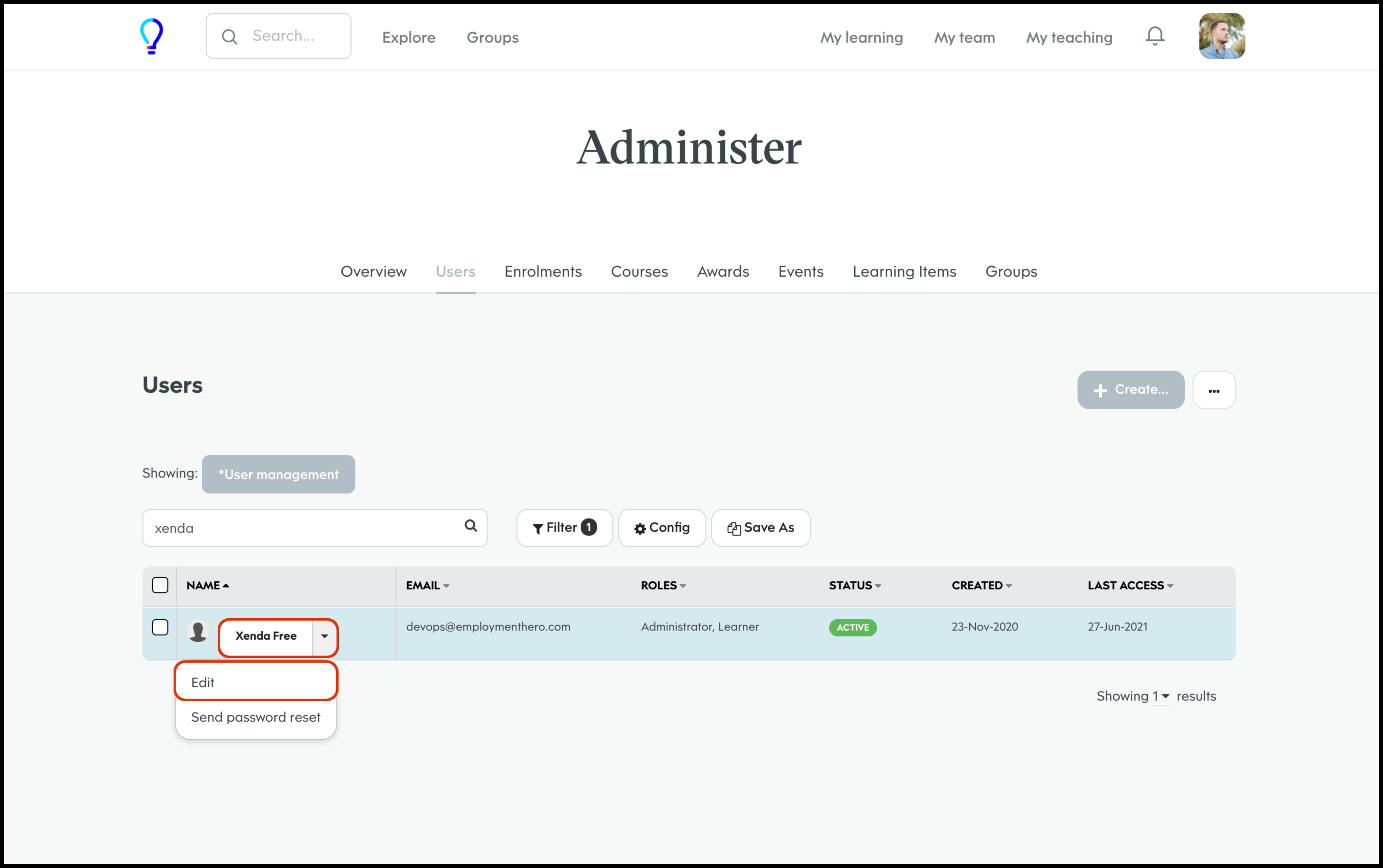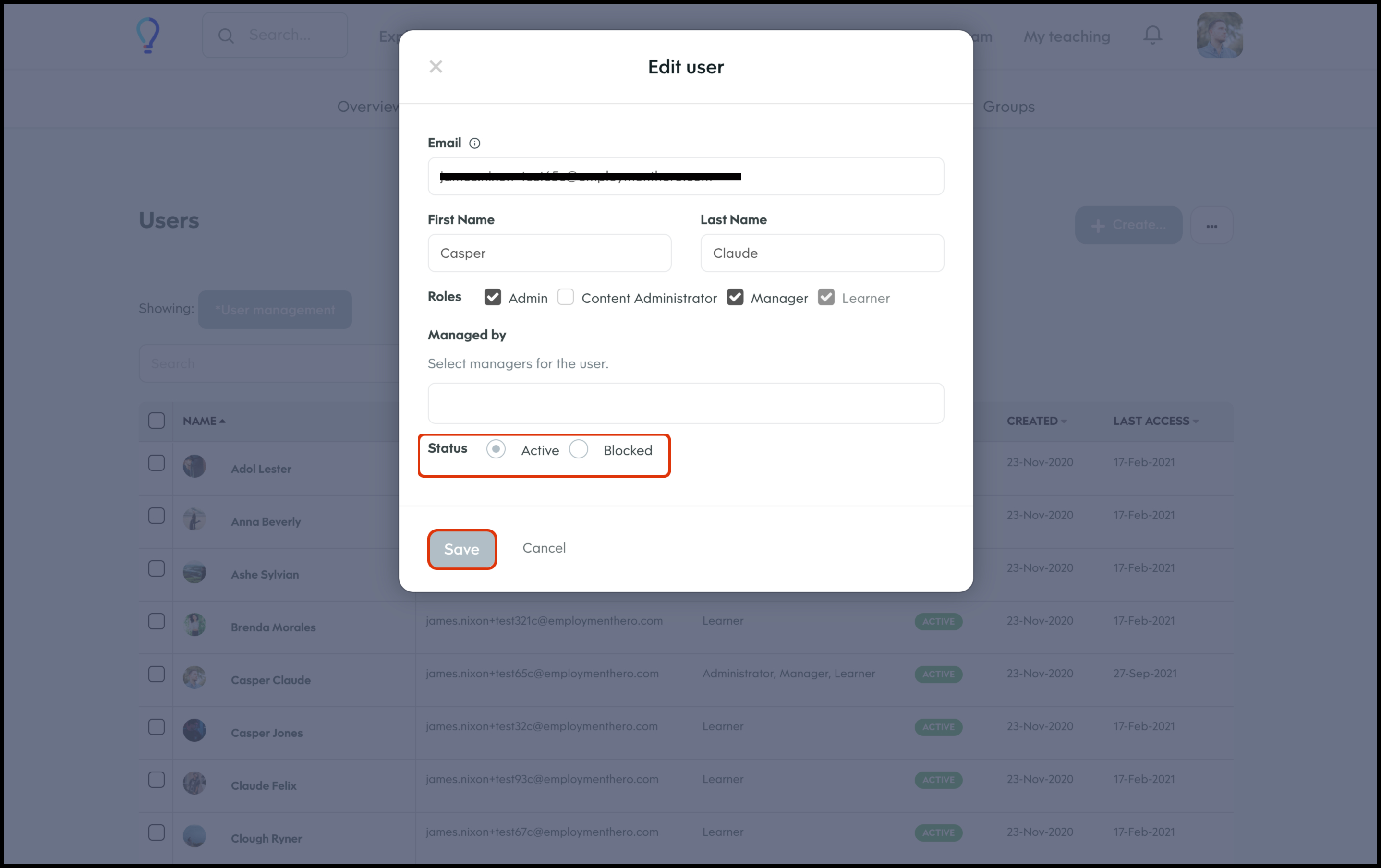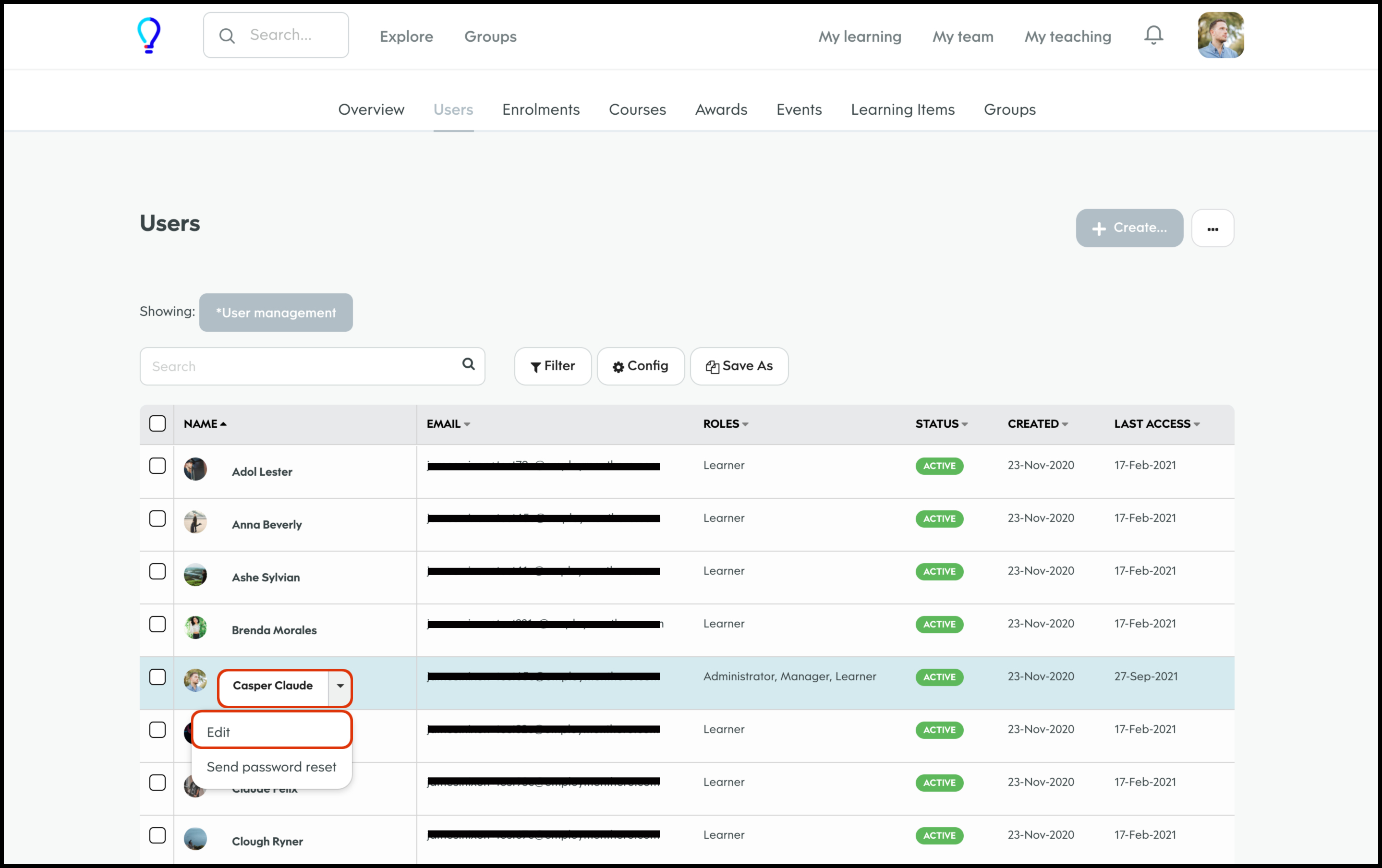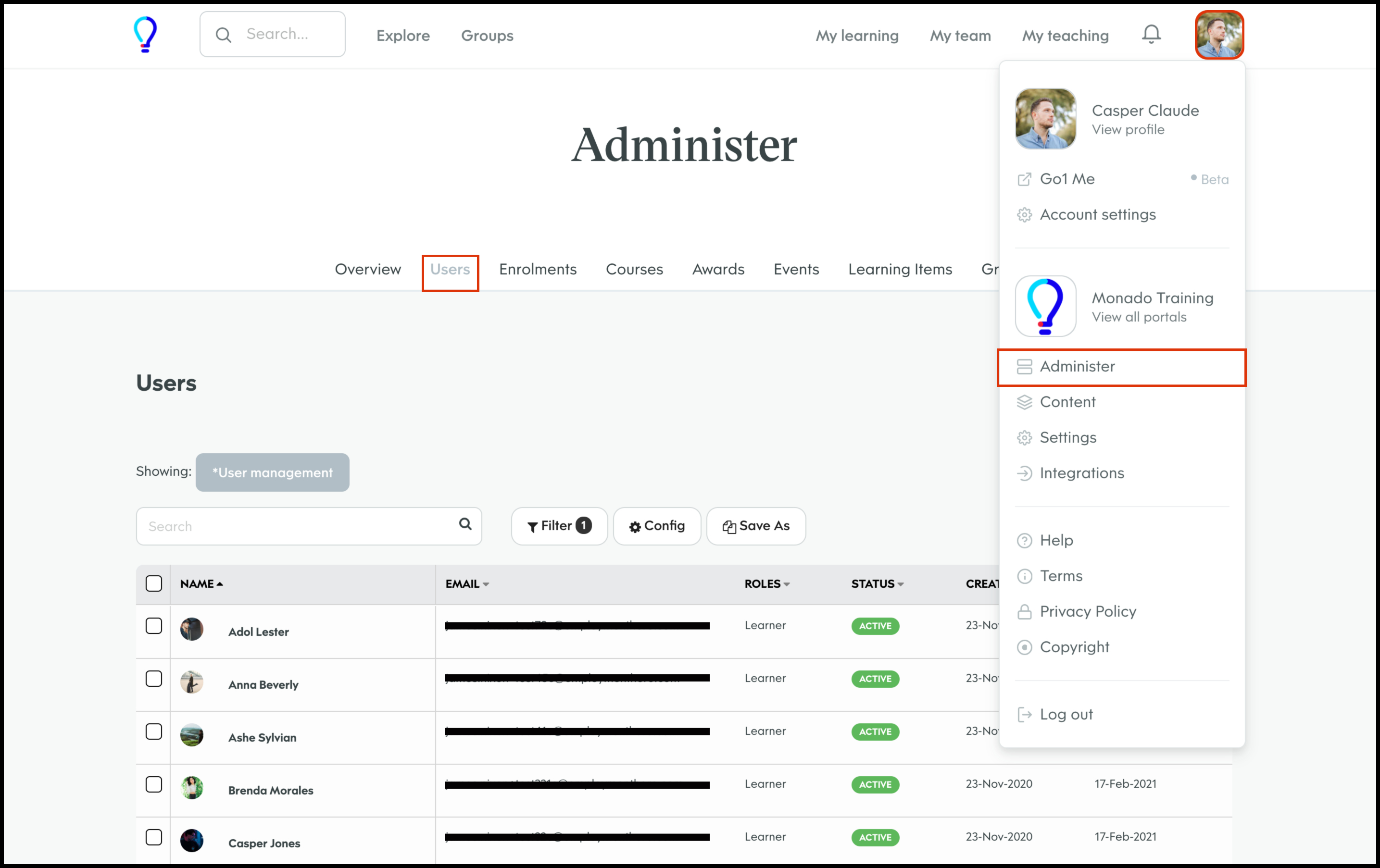 You can check your organisation has set the main admin email as enabled via the User Management feature within your learning platform. The steps on how to undertake this task are: