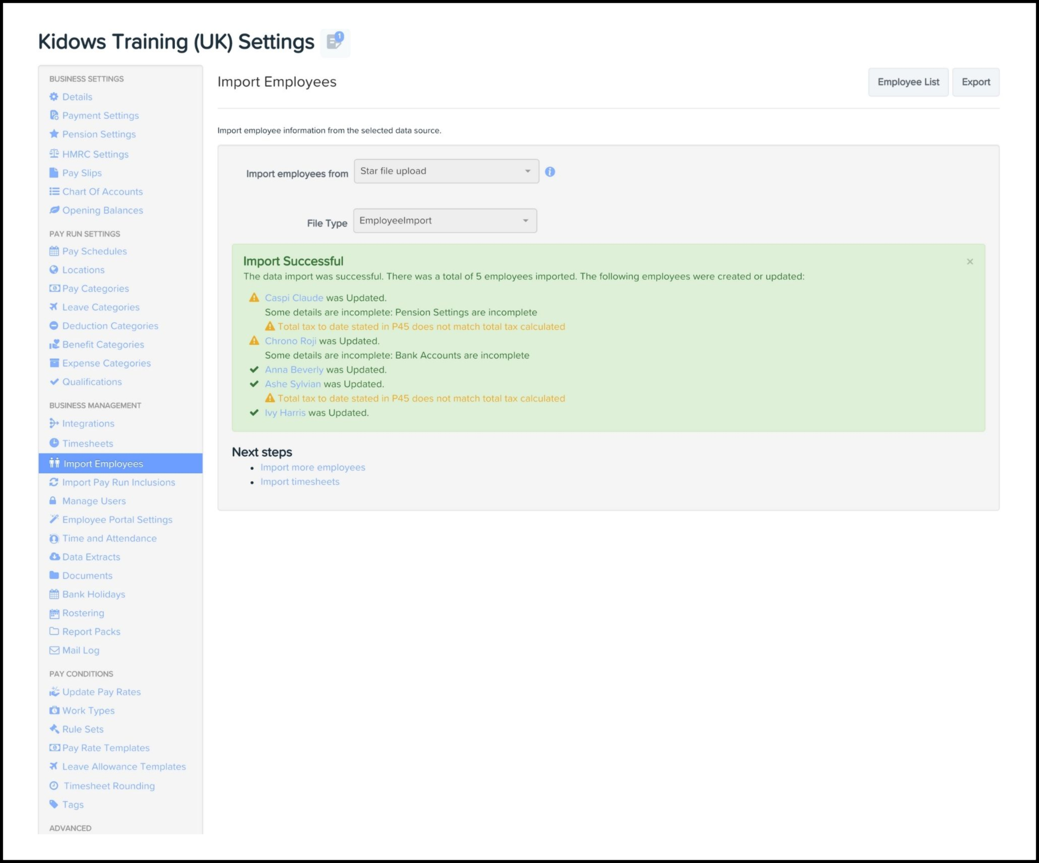 - Click the Import Employees button.