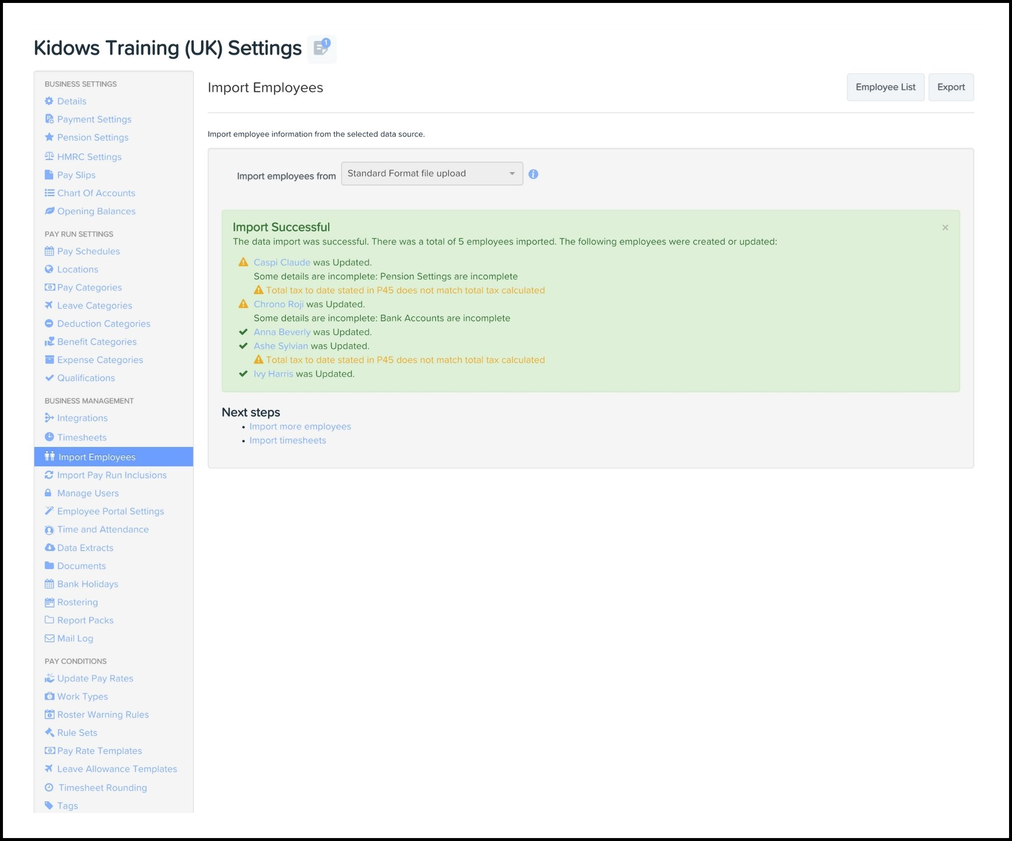 - Click the Import Employees button.