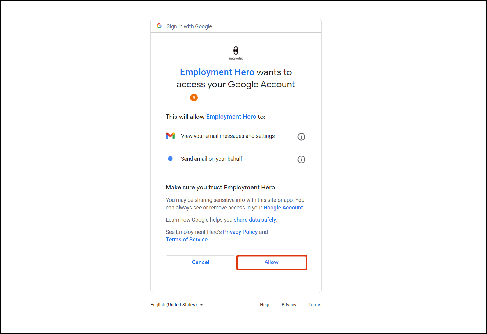 - Click the Allow button.