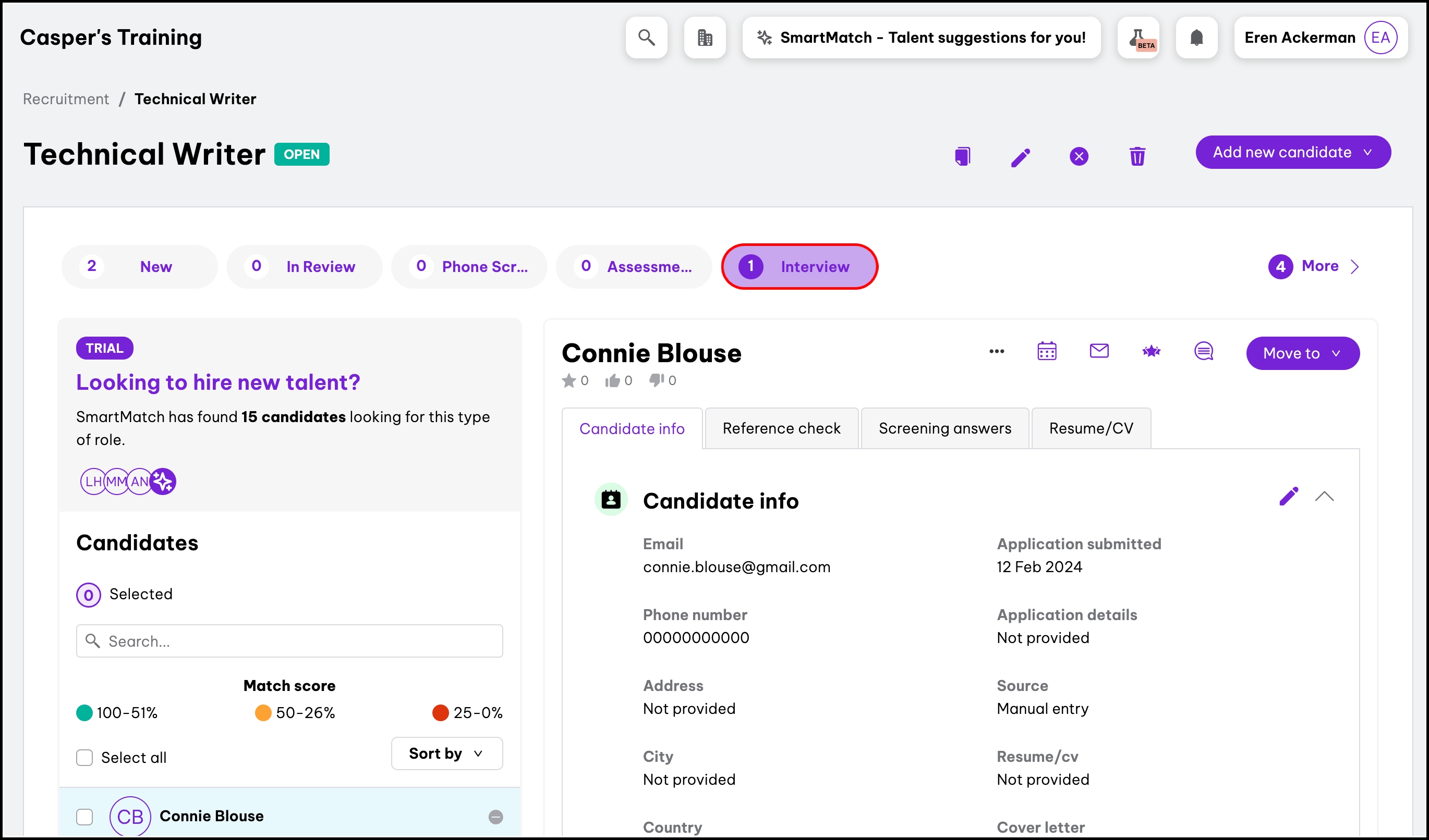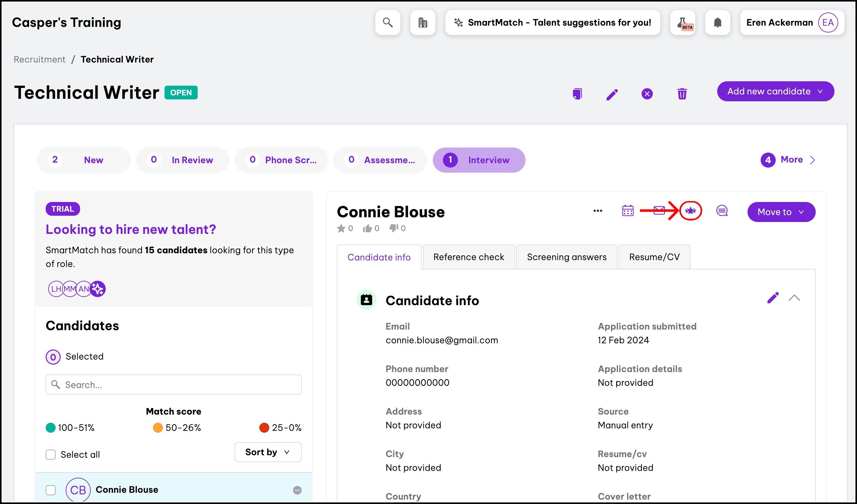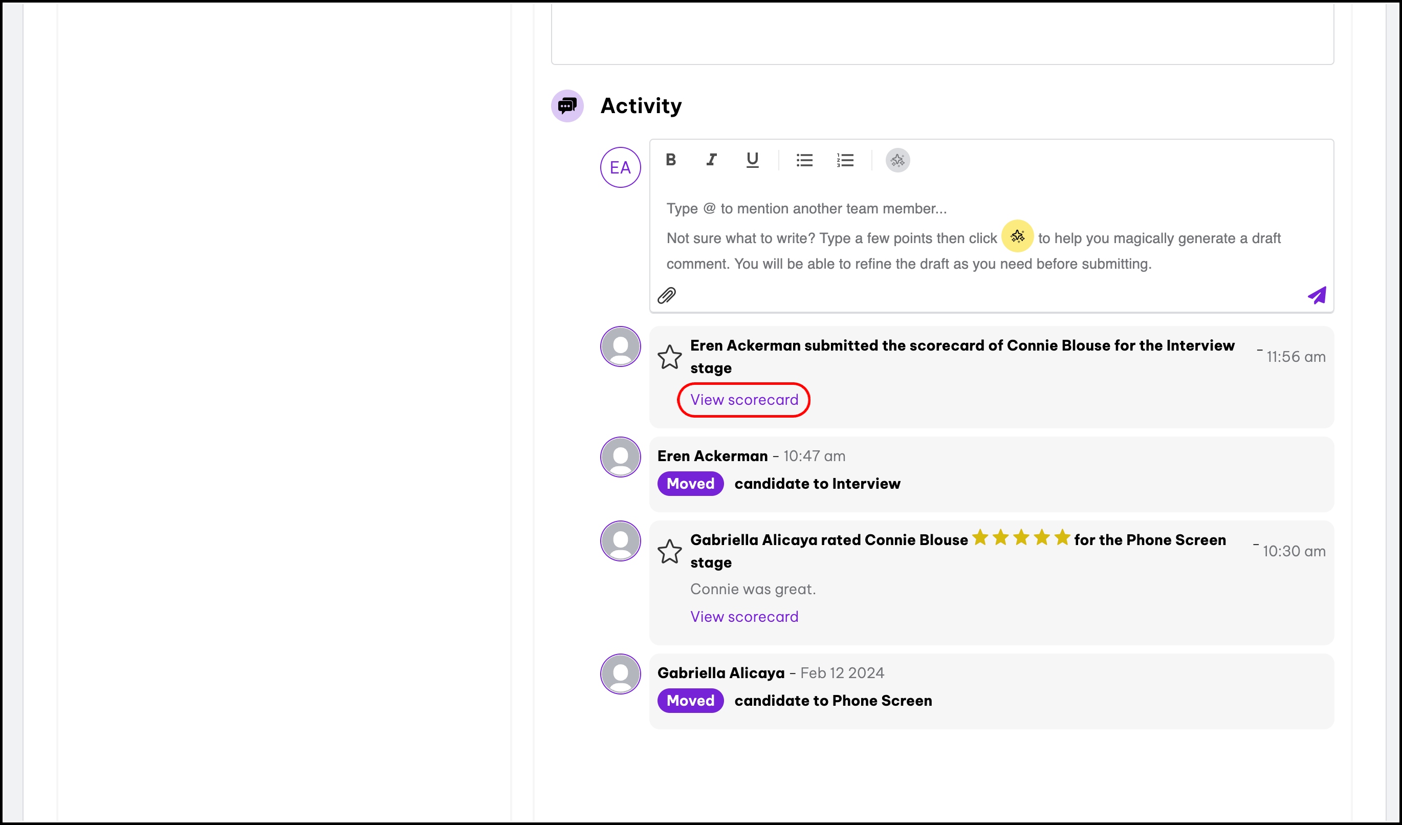 You can now see the candidate evaluation scorecard for this hiring phase.