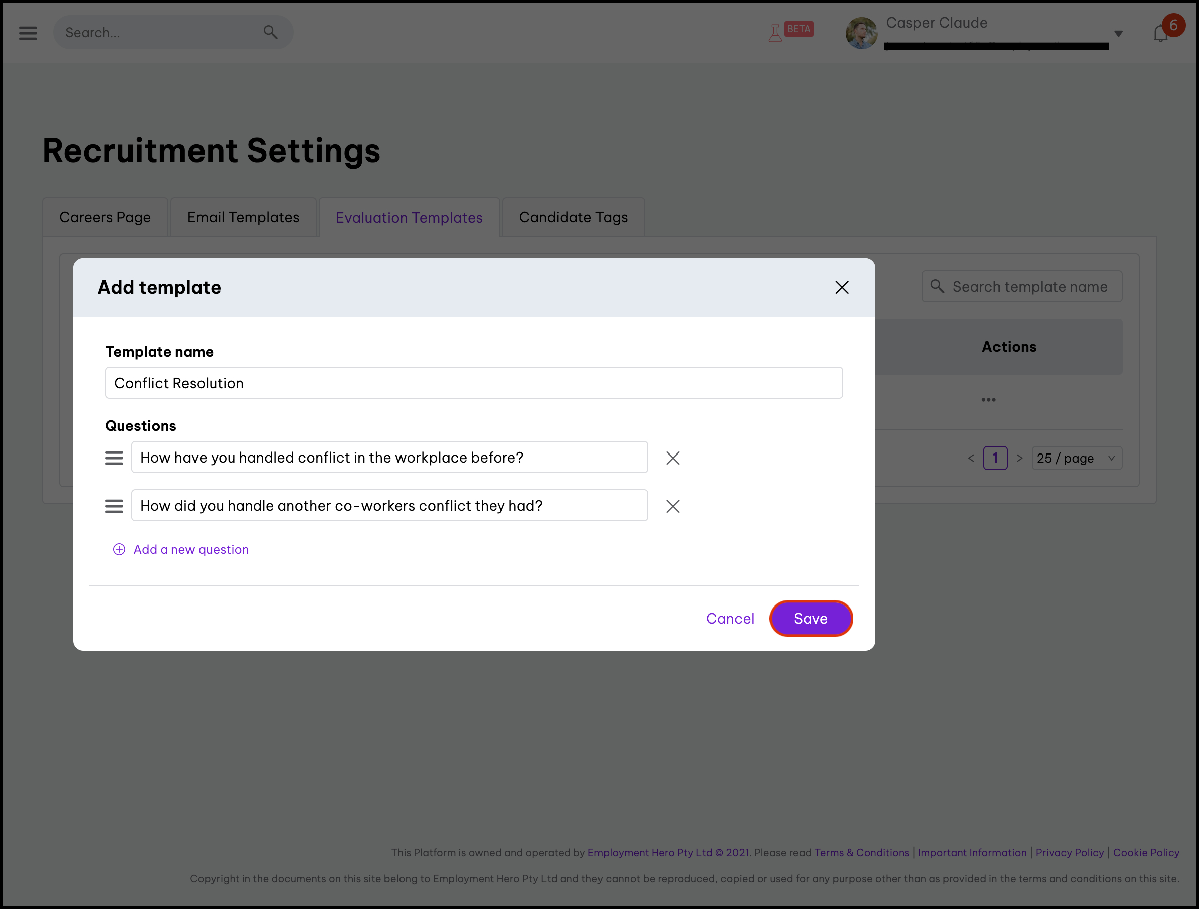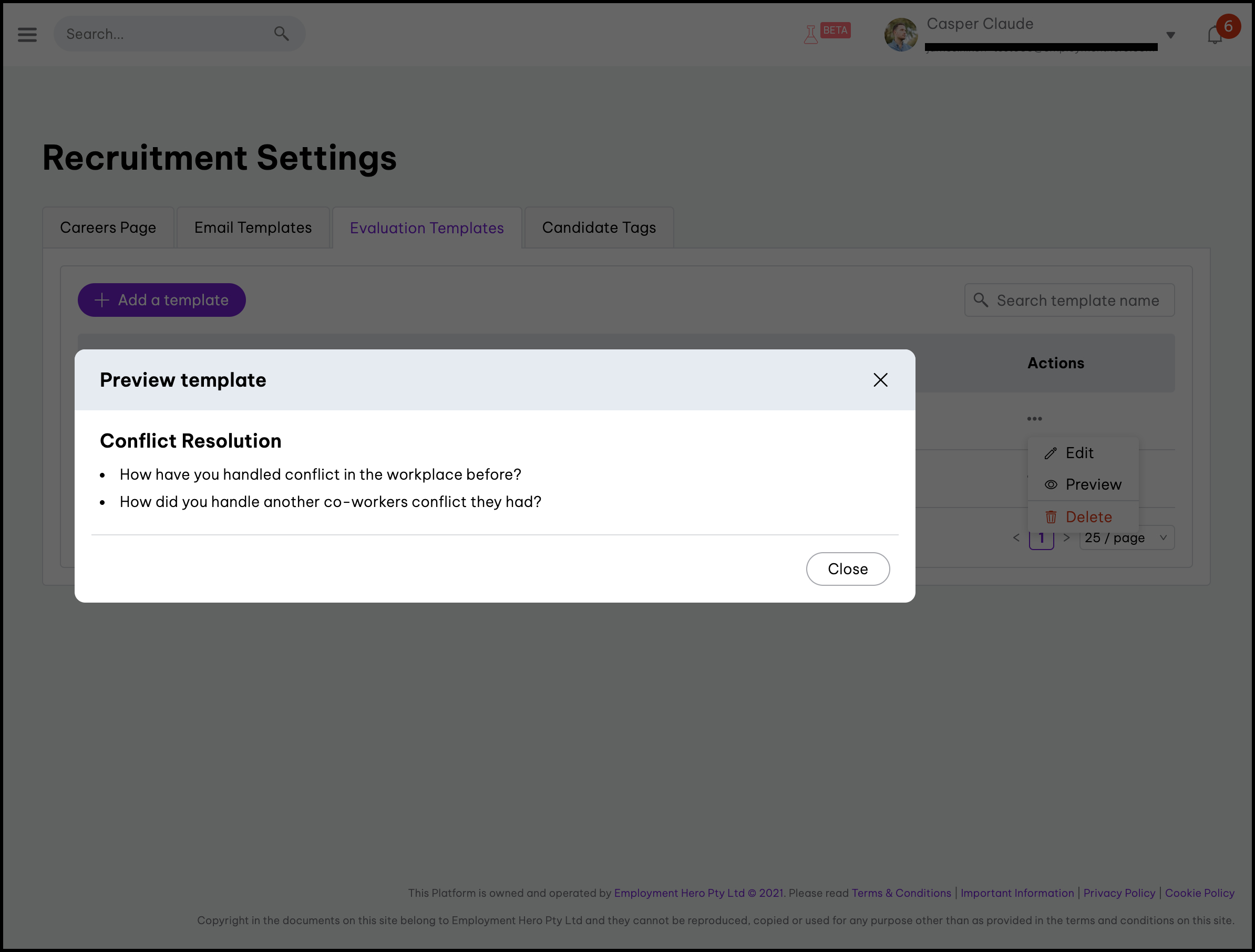 The Evaluation Templates feature enables you to specify important details, such as the template name and the questions you wish to include. Additionally, this feature allows you to update information as needed, ensuring that your evaluations remain relevant and effective. You also have the option to delete any templates that are no longer necessary for your current assessment needs.