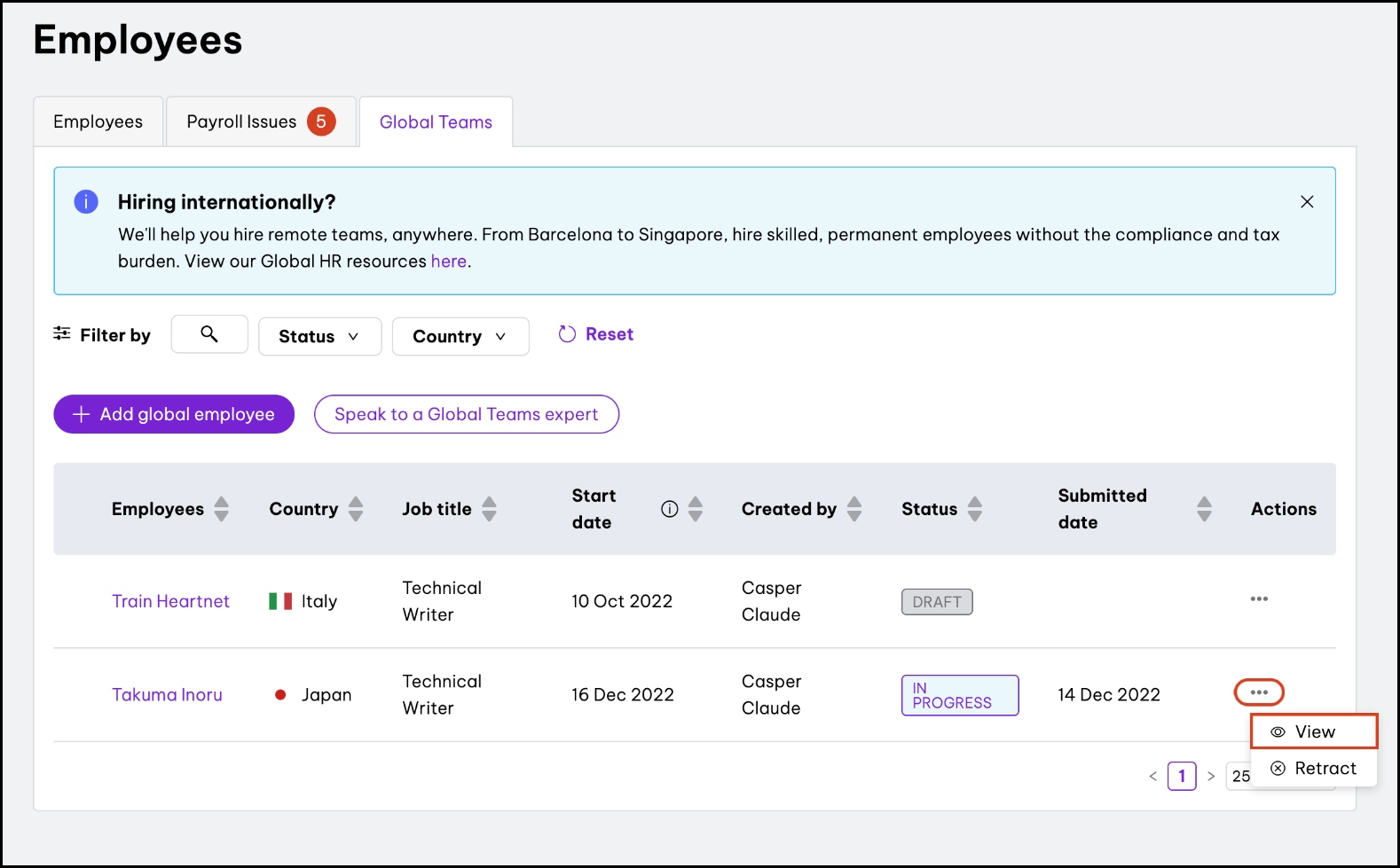 Once we have all the necessary information and we have confirmed that it is compliant with local regulations, we will issue a Global Teams proposal for you to review and sign. The proposal outlines the costs, entitlements, and contractual information regarding the Global Teams service.