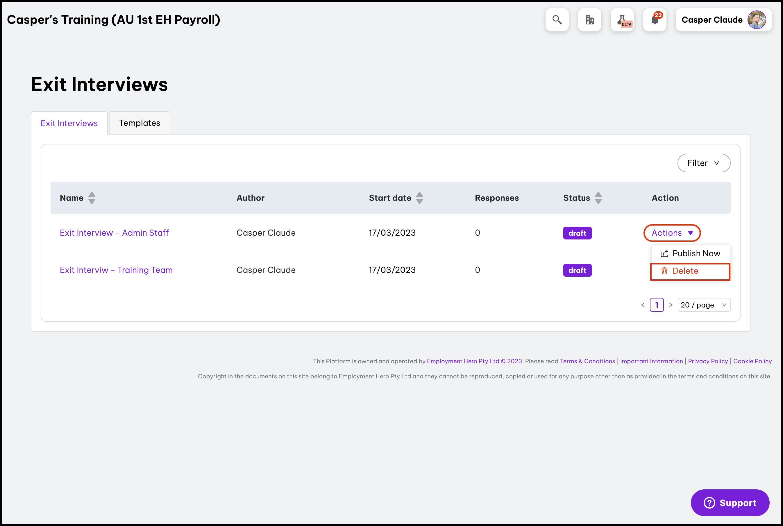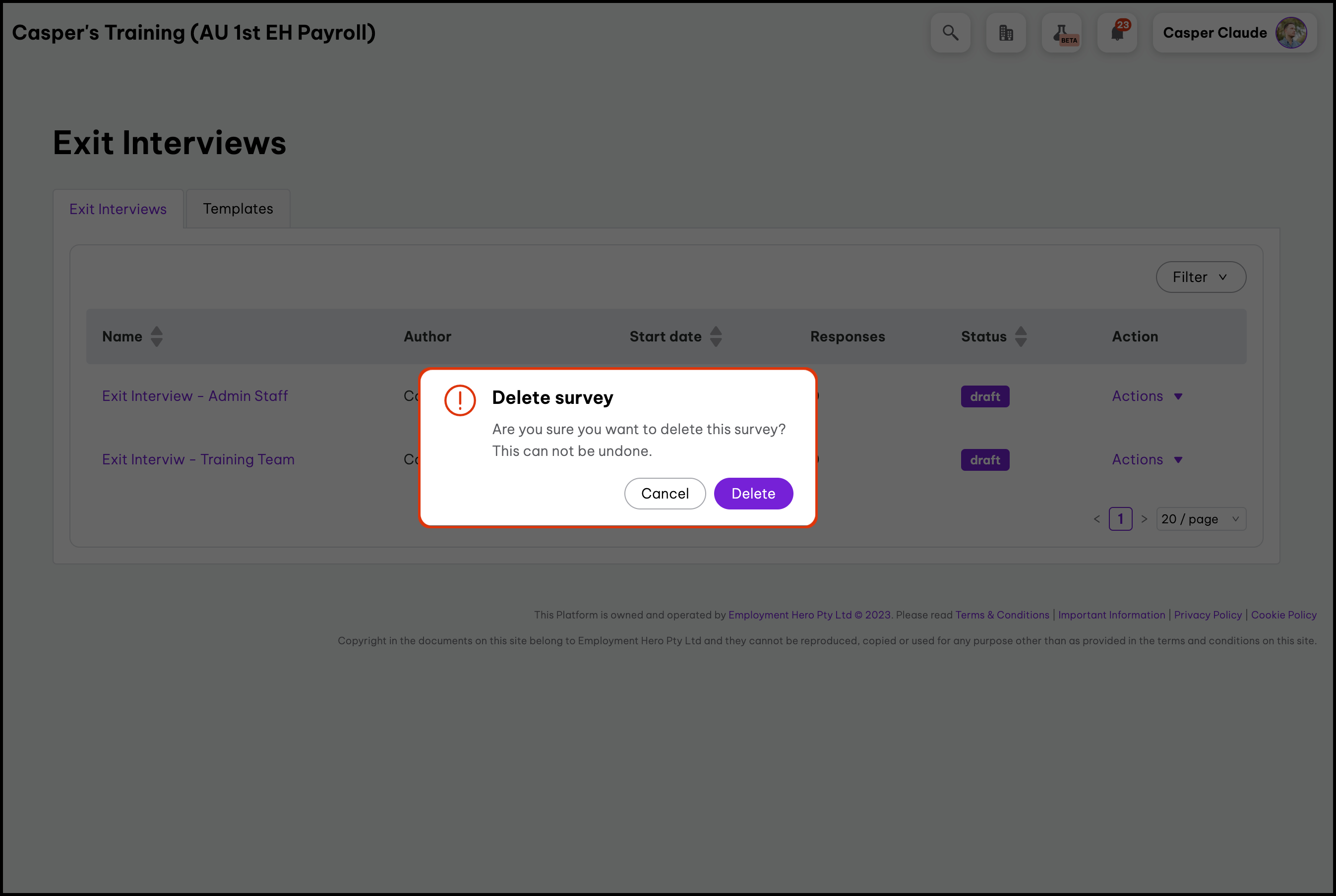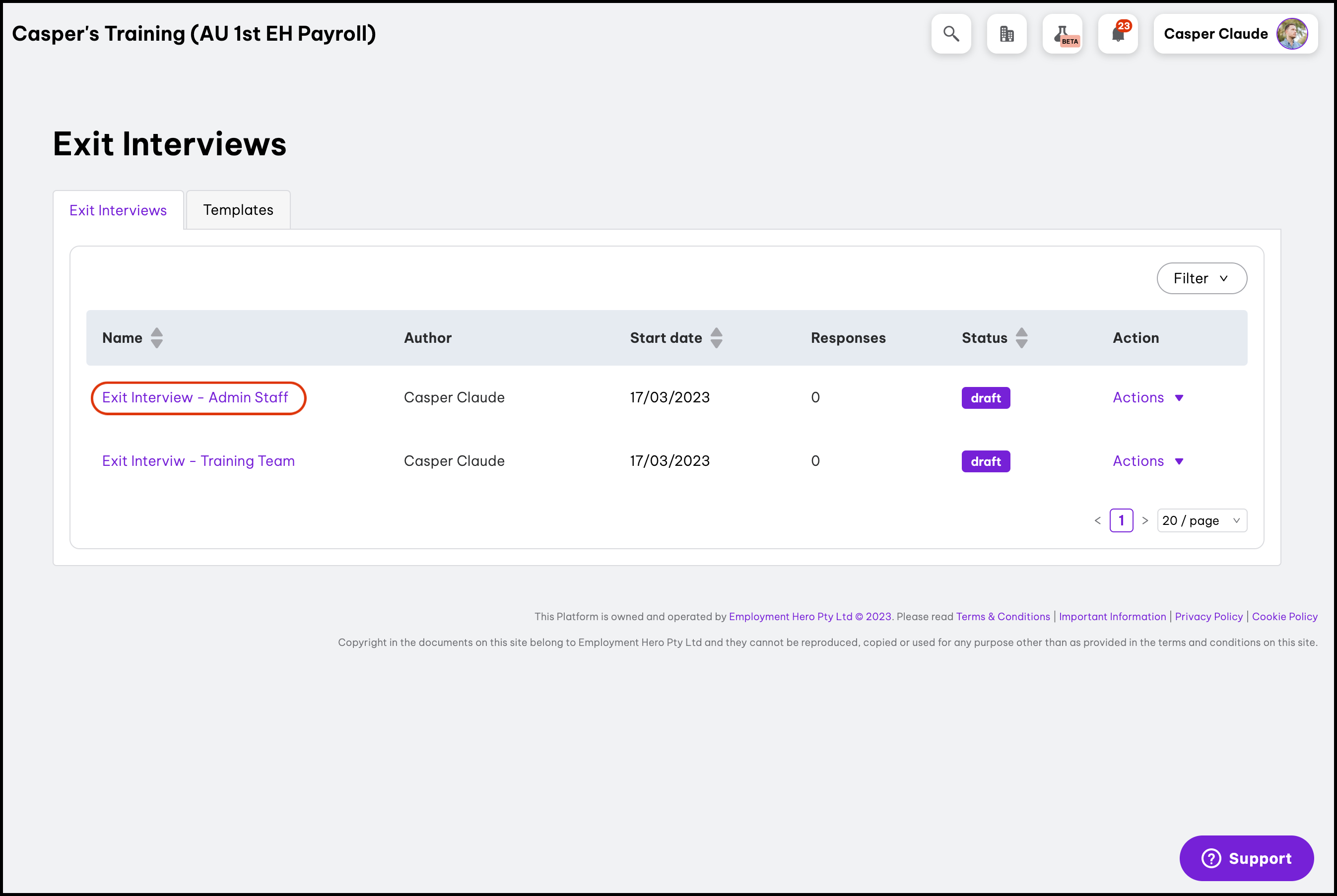 - Click the draft exit interview that needs questions edited.