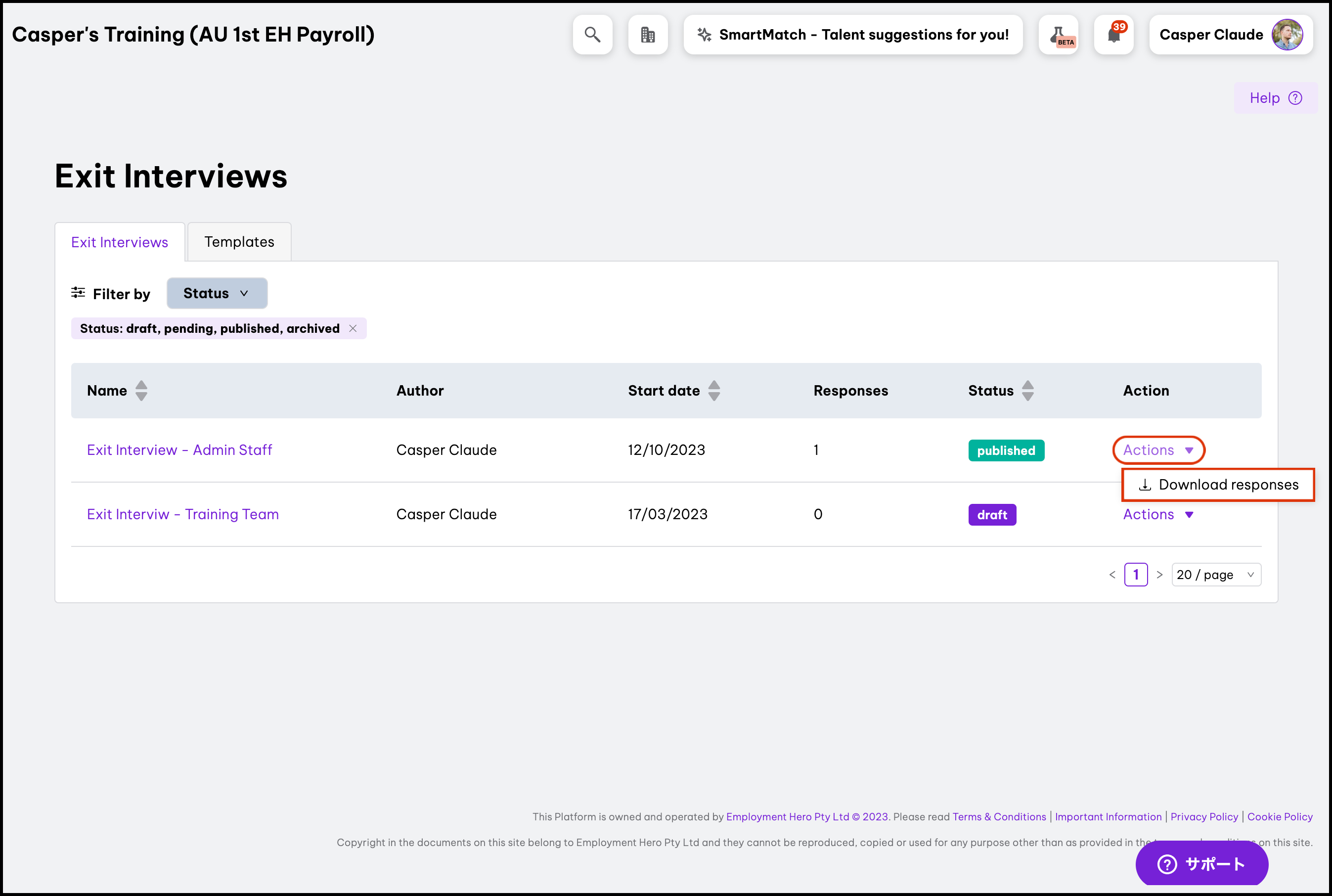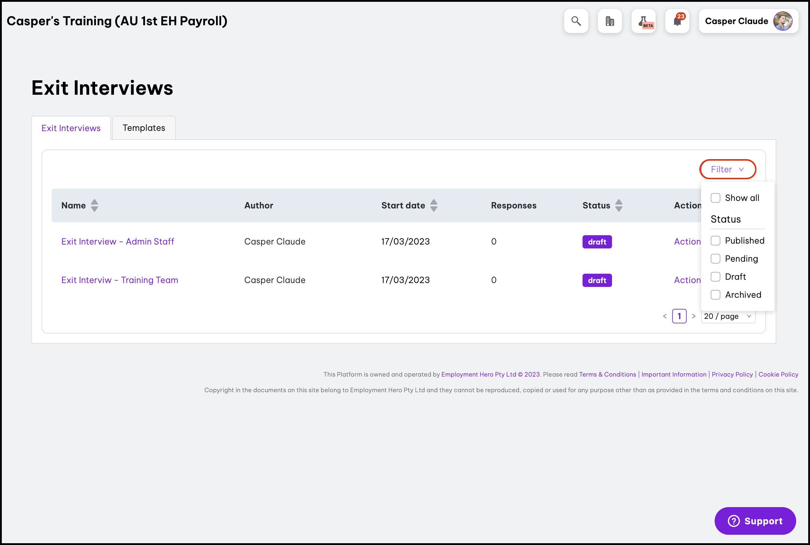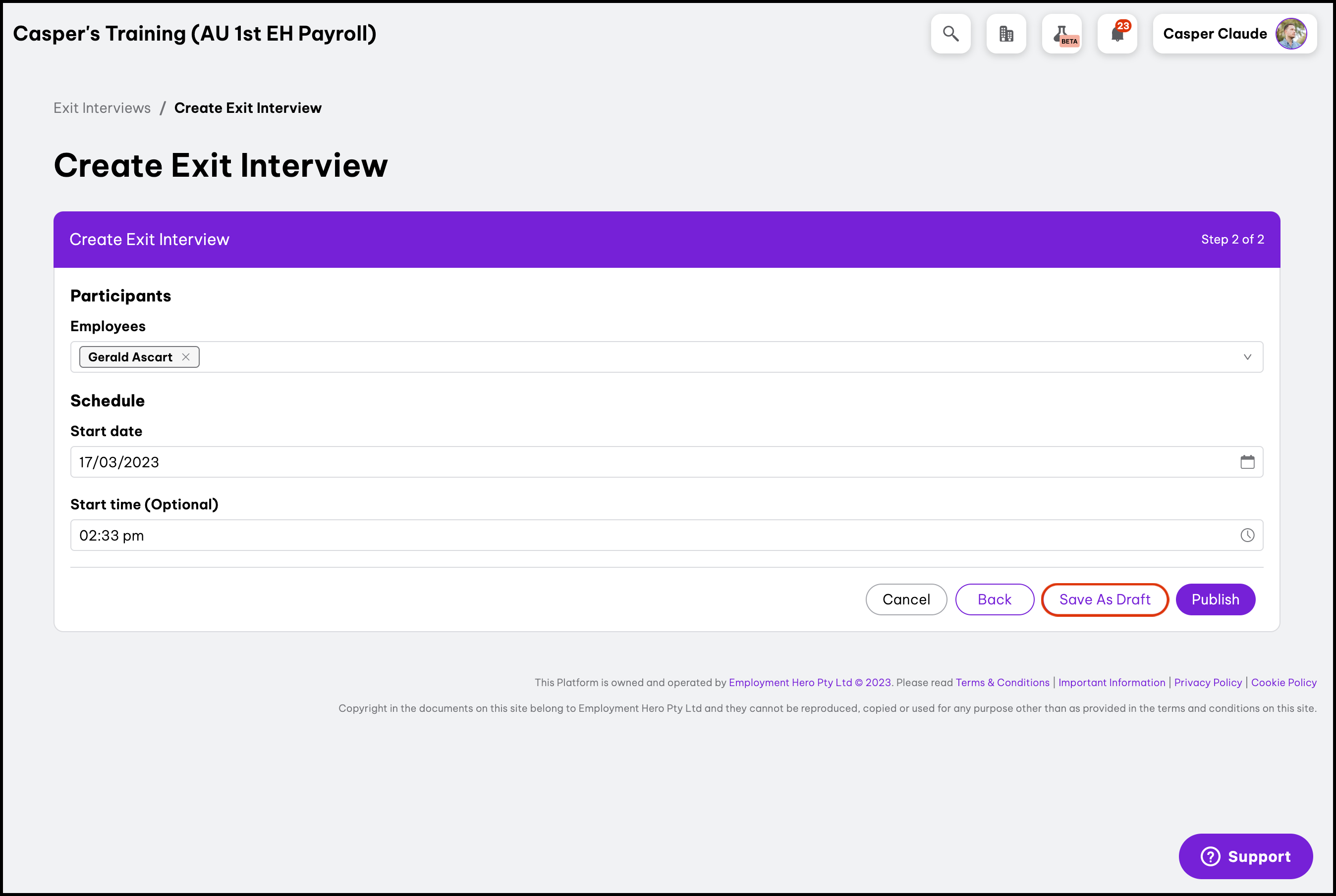 - Click the draft exit interview that needs questions edited.