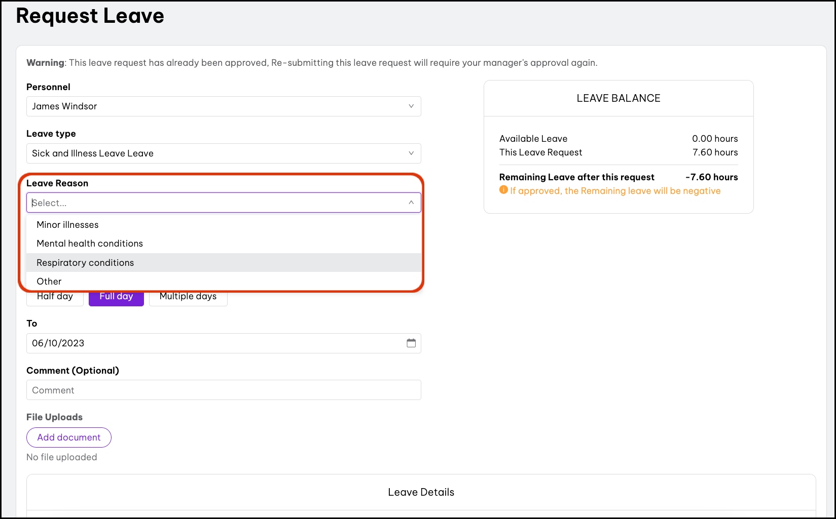 - Seeing leave requests within the employee file This feature allows you to access an employee's leave requests via the employee file.