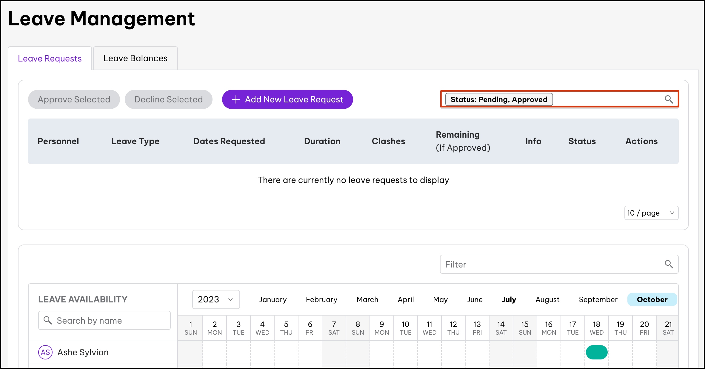 Leave clashes will also show what team the employee is on, which can help decide which leave clashes can be approved or declined.